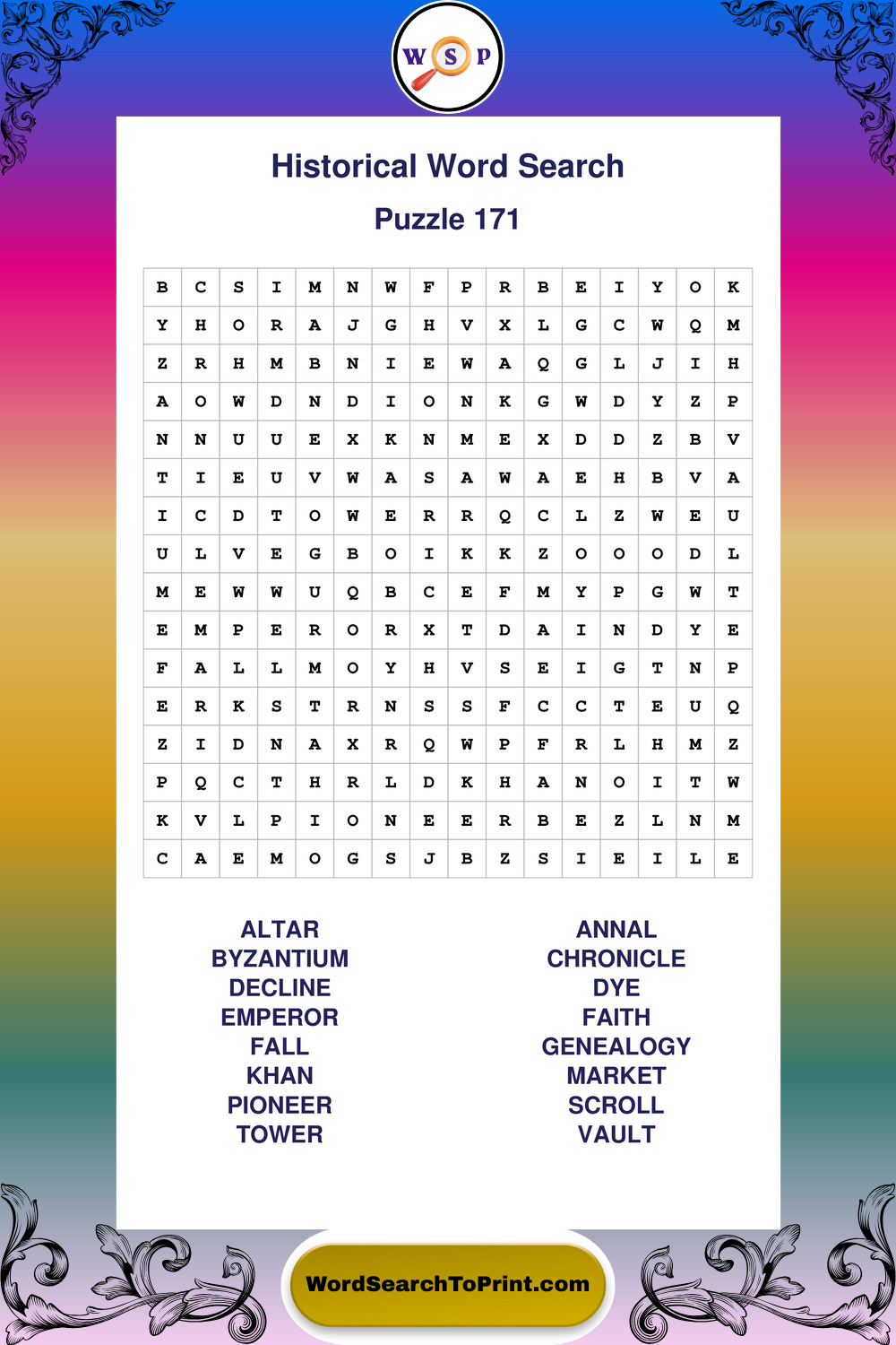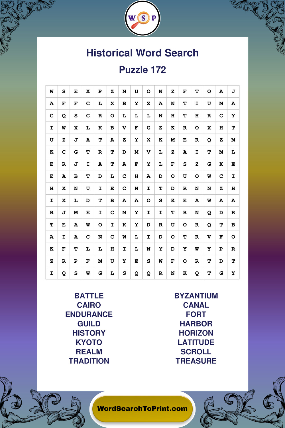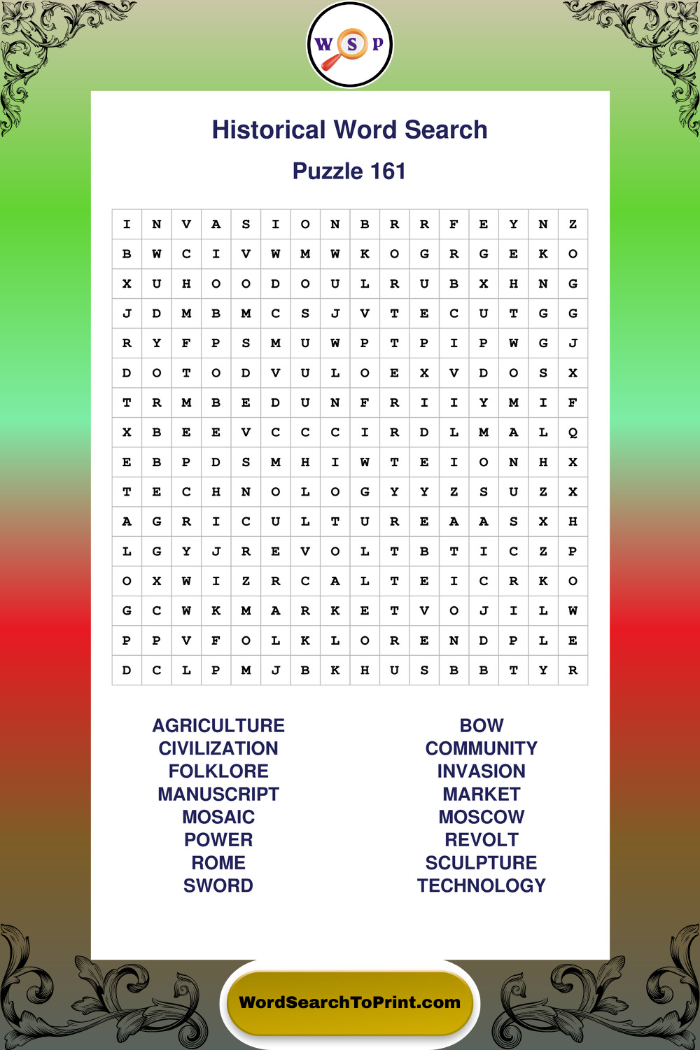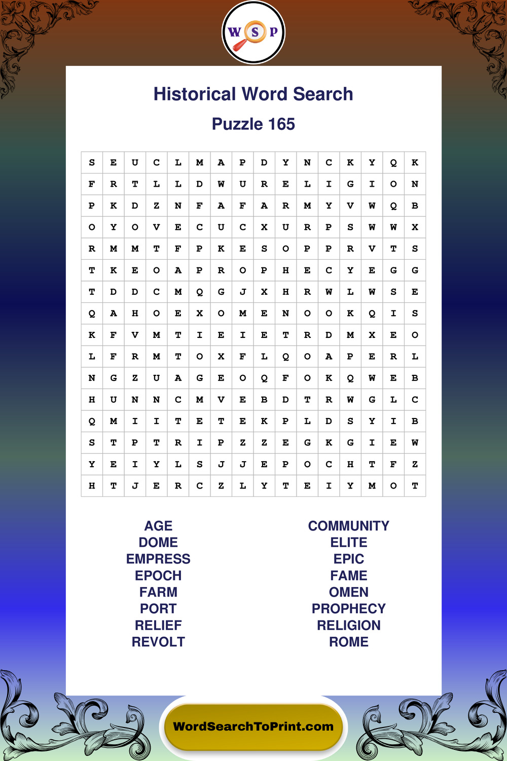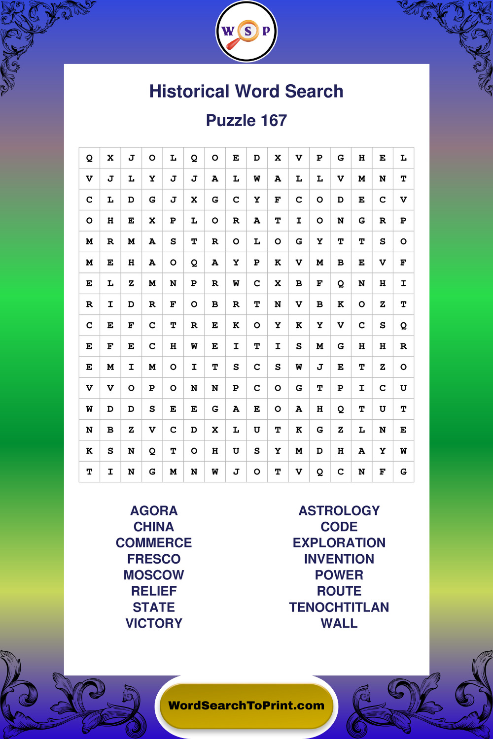 Browse our free large print Historical wordsearches below. All puzzles are printable and include solutions.