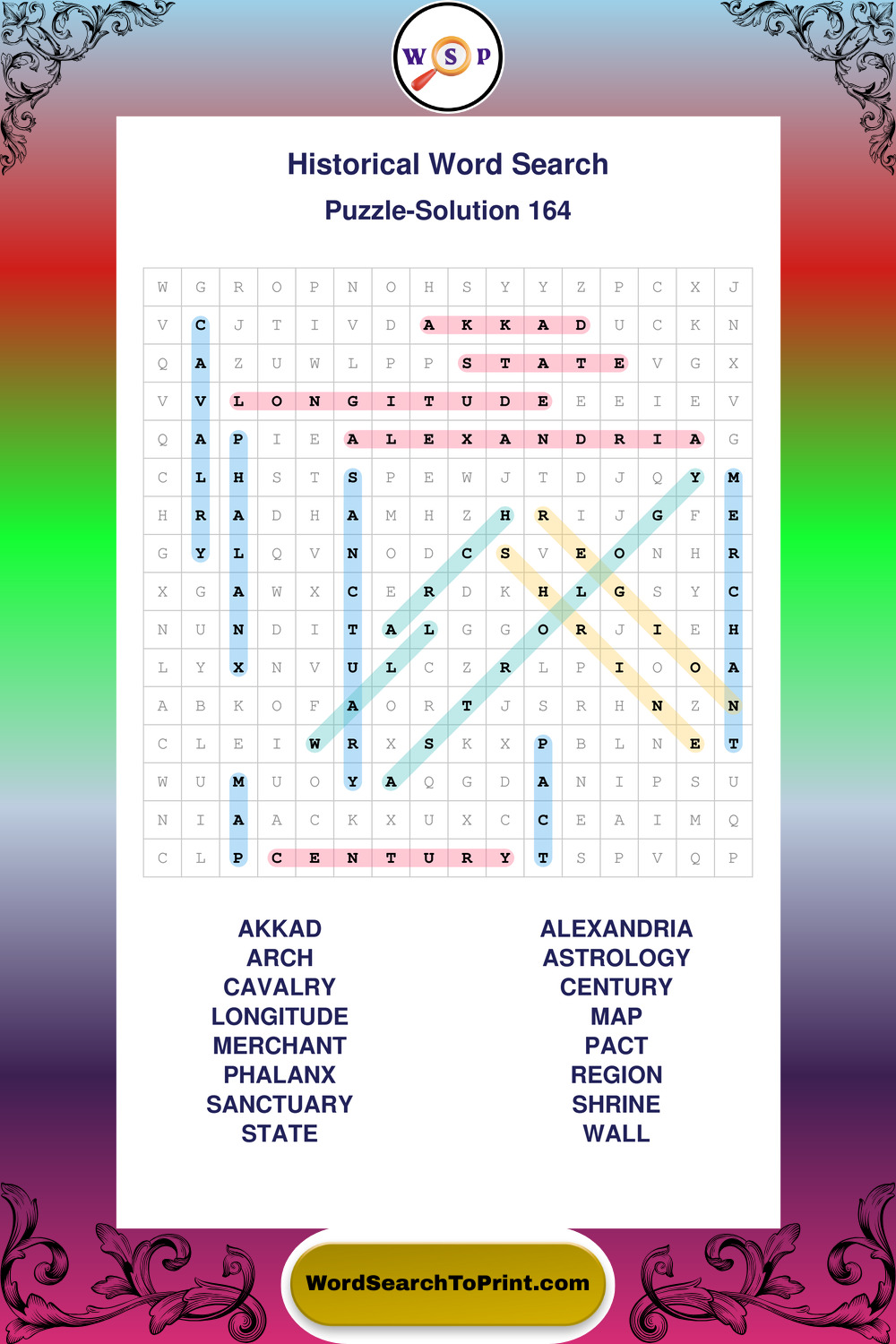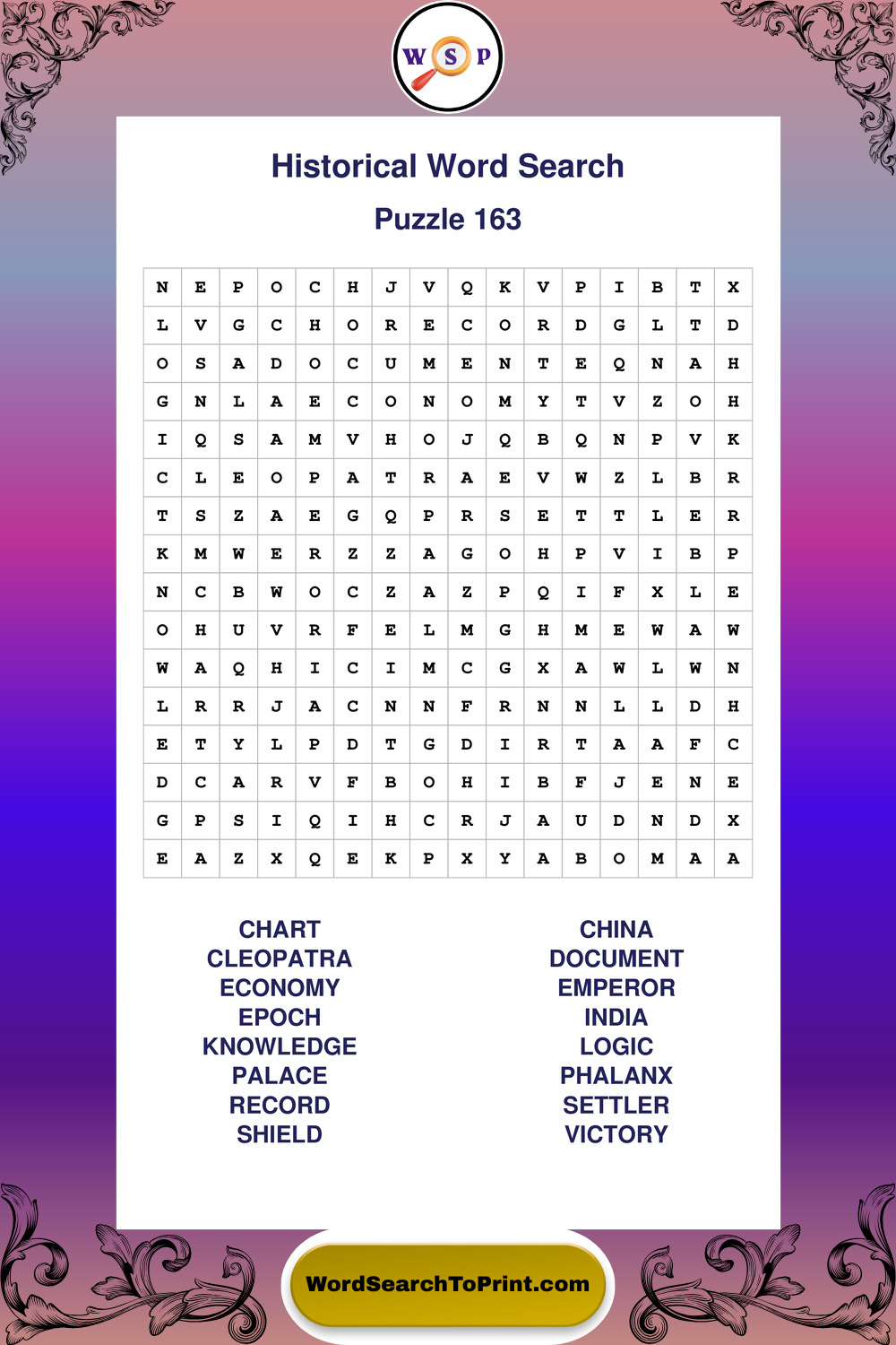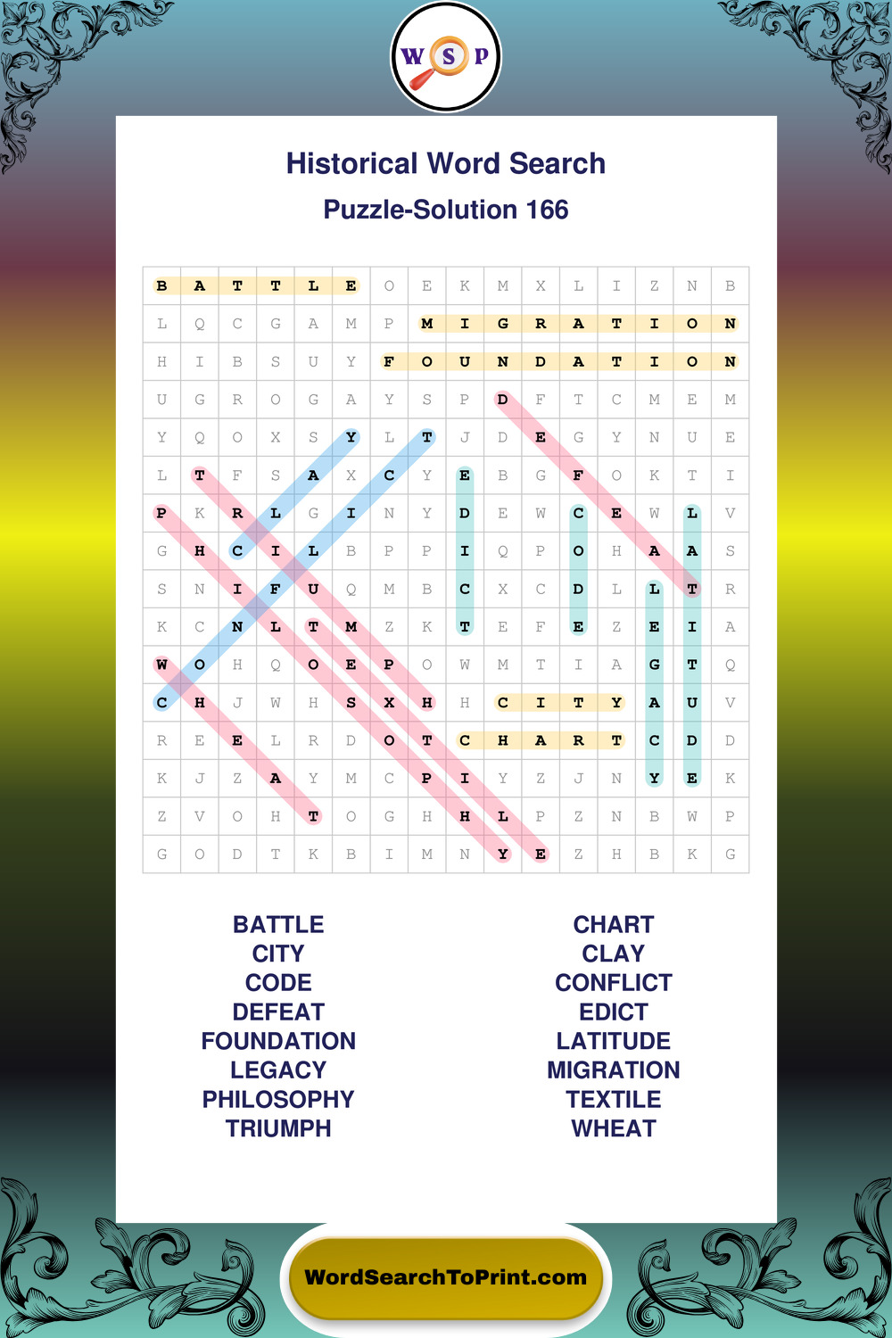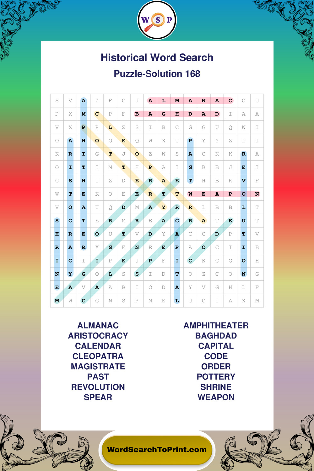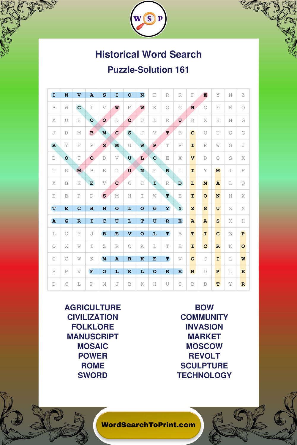 Browse our free large print Historical wordsearches below. All puzzles are printable and include solutions.