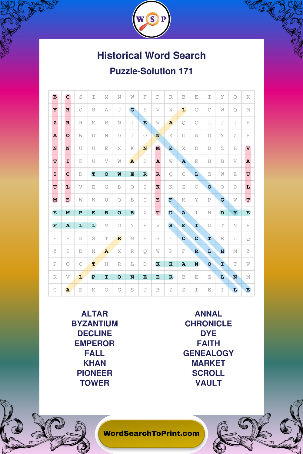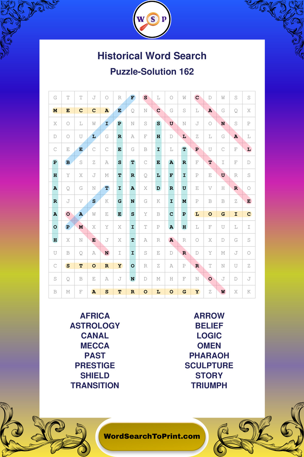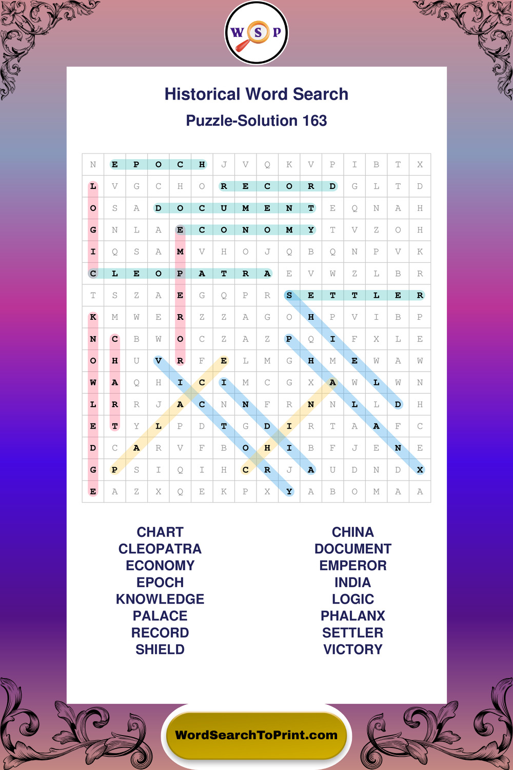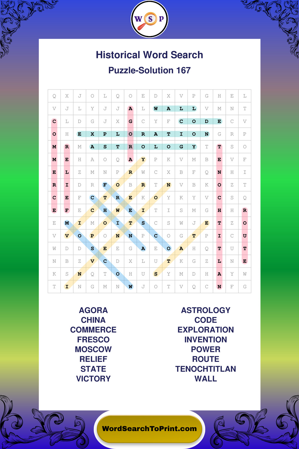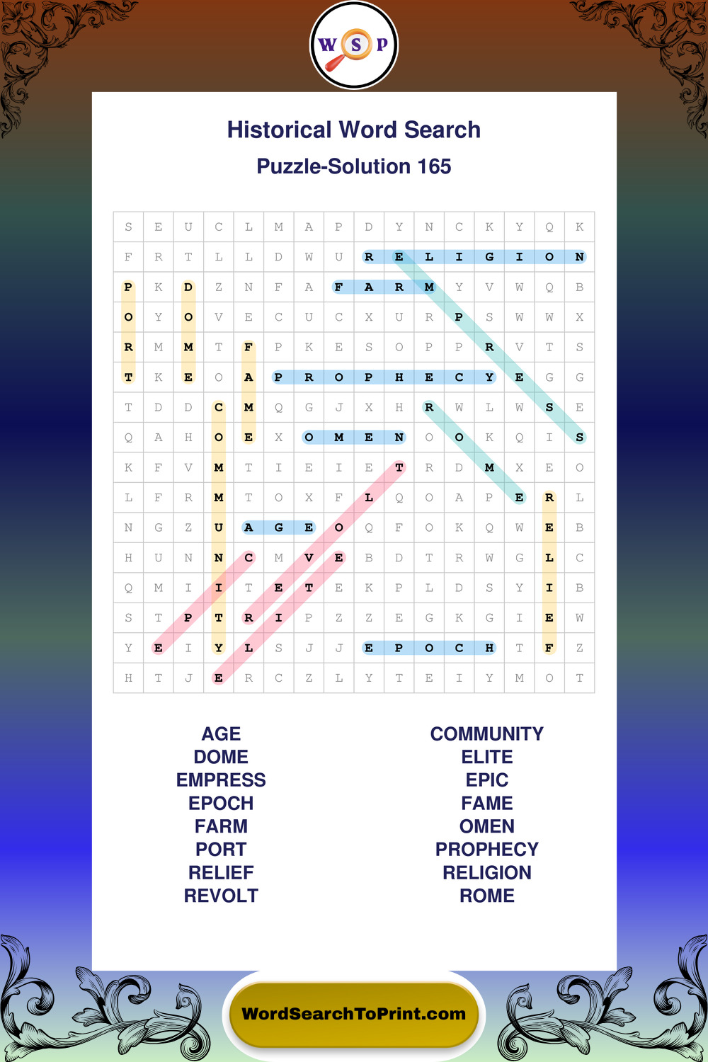 Browse our free large print Historical wordsearches below. All puzzles are printable and include solutions.
