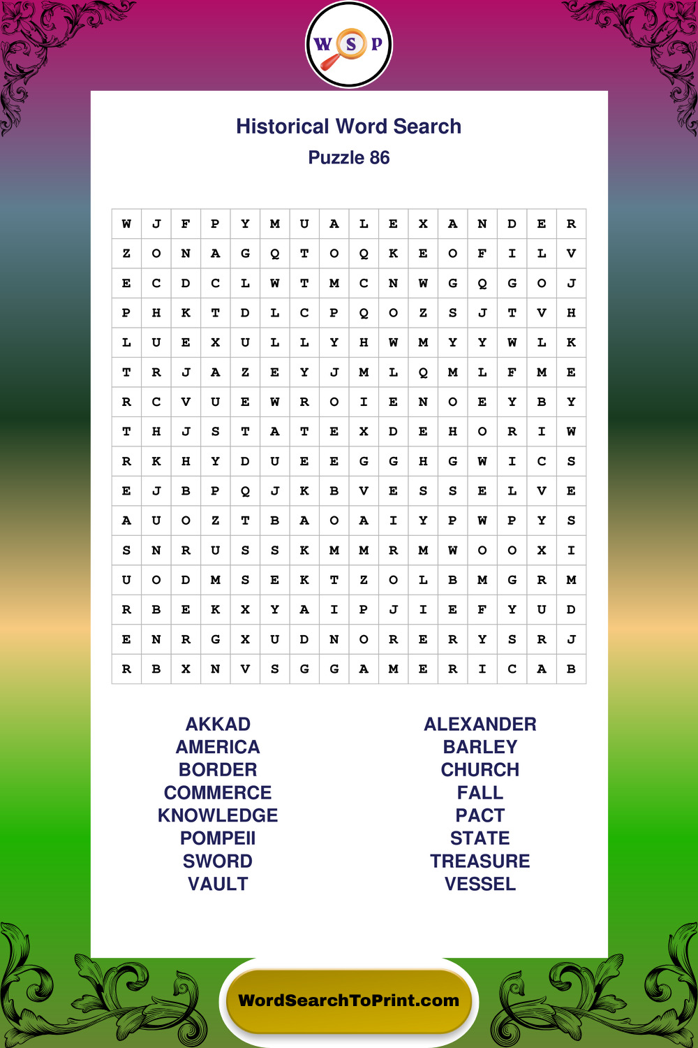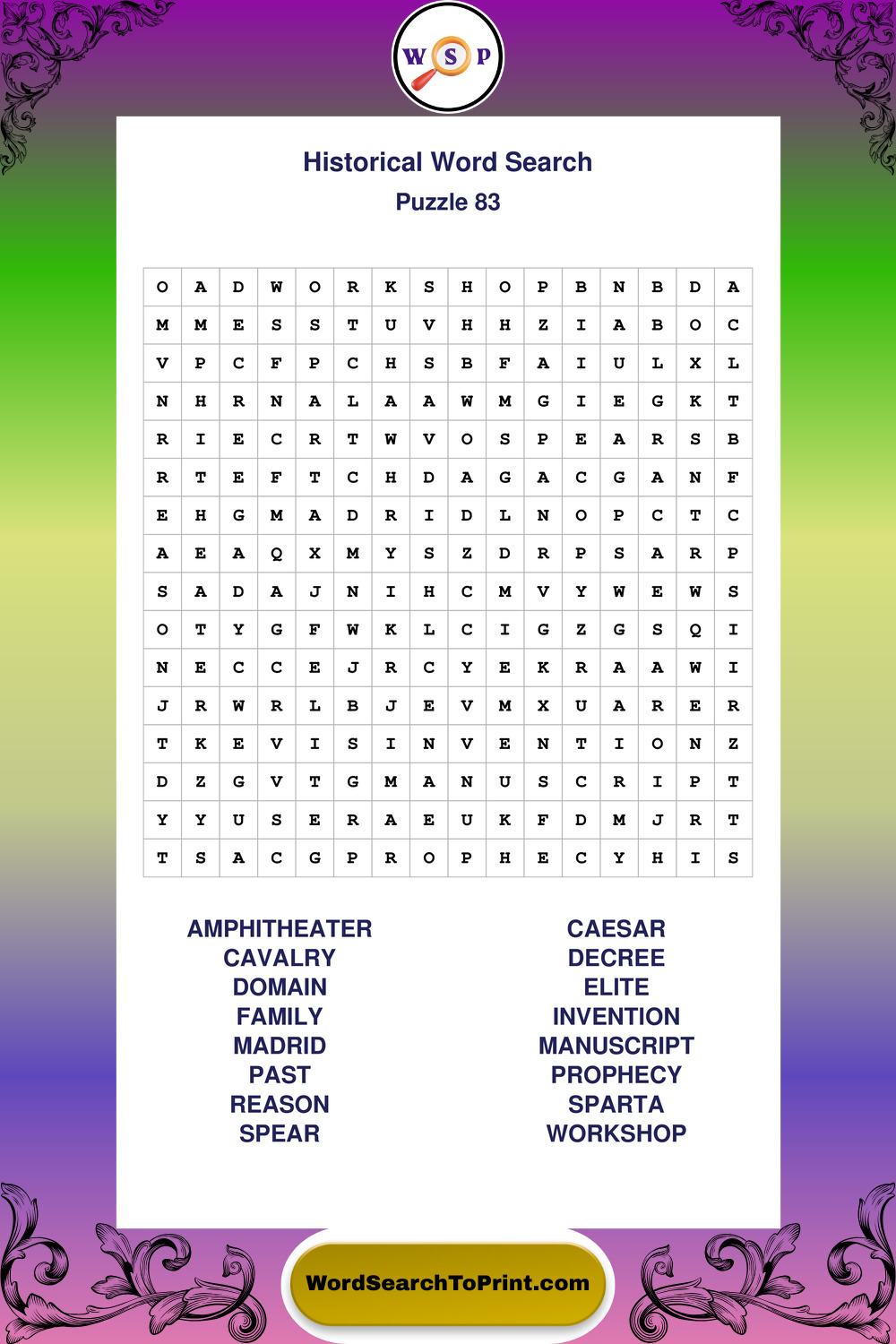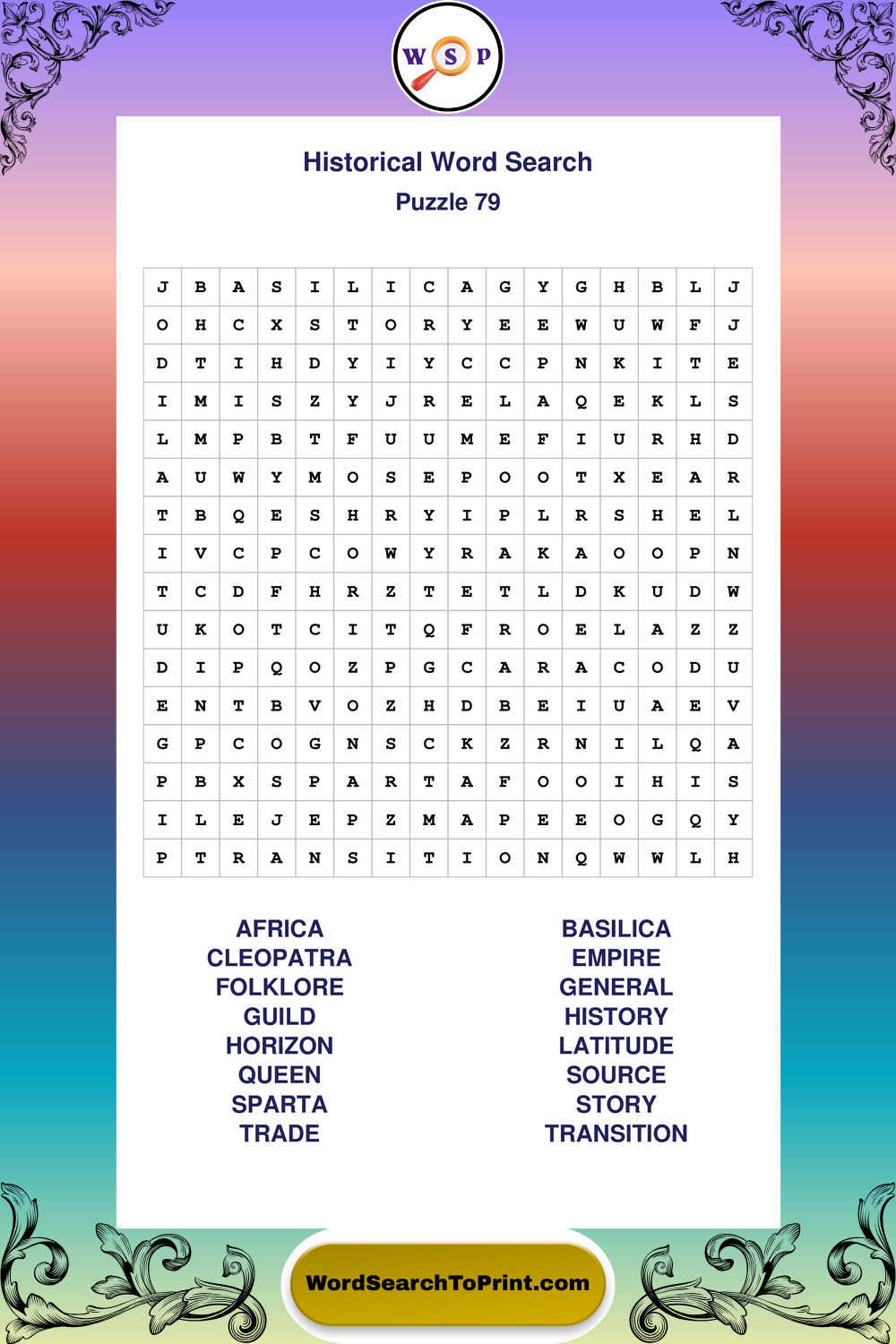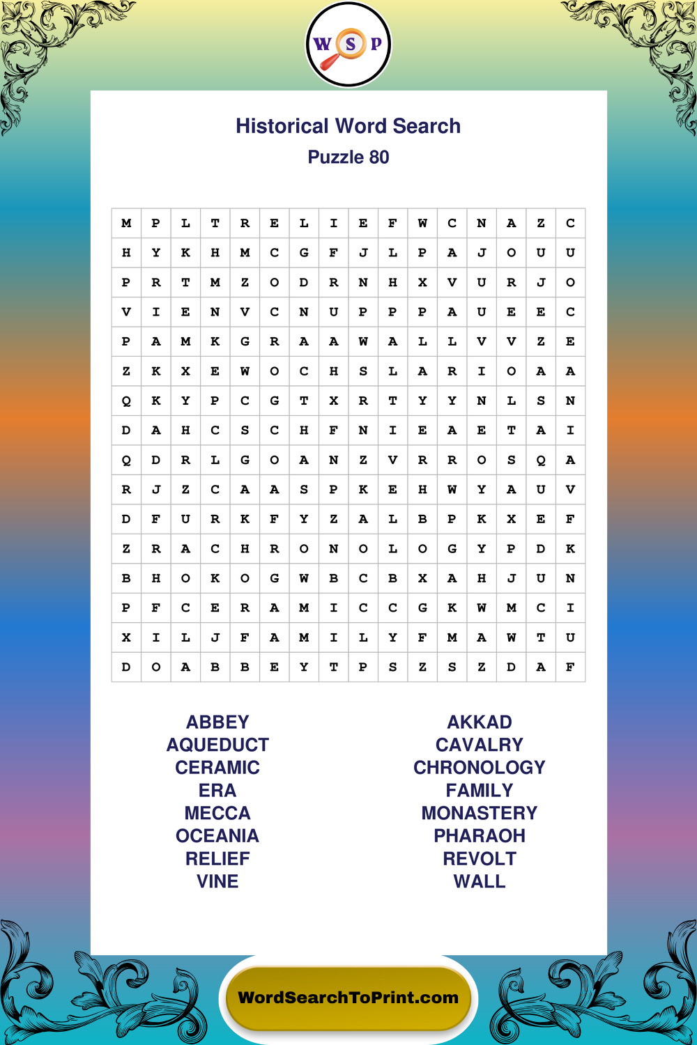 Browse our free large print Historical wordsearches below. All puzzles are printable and include solutions.