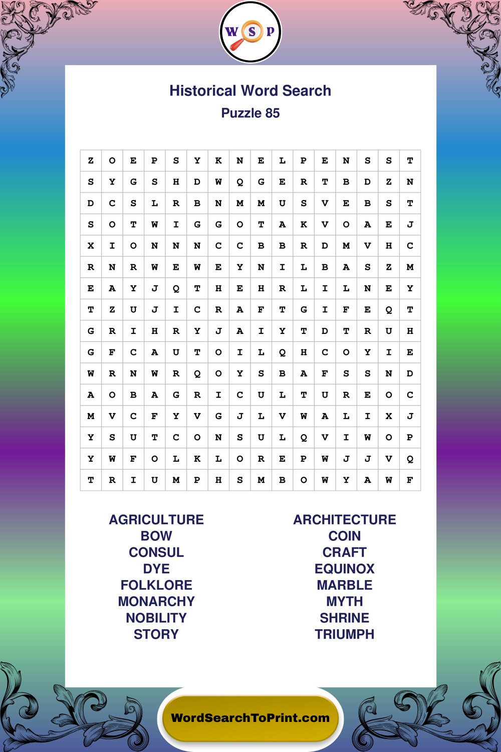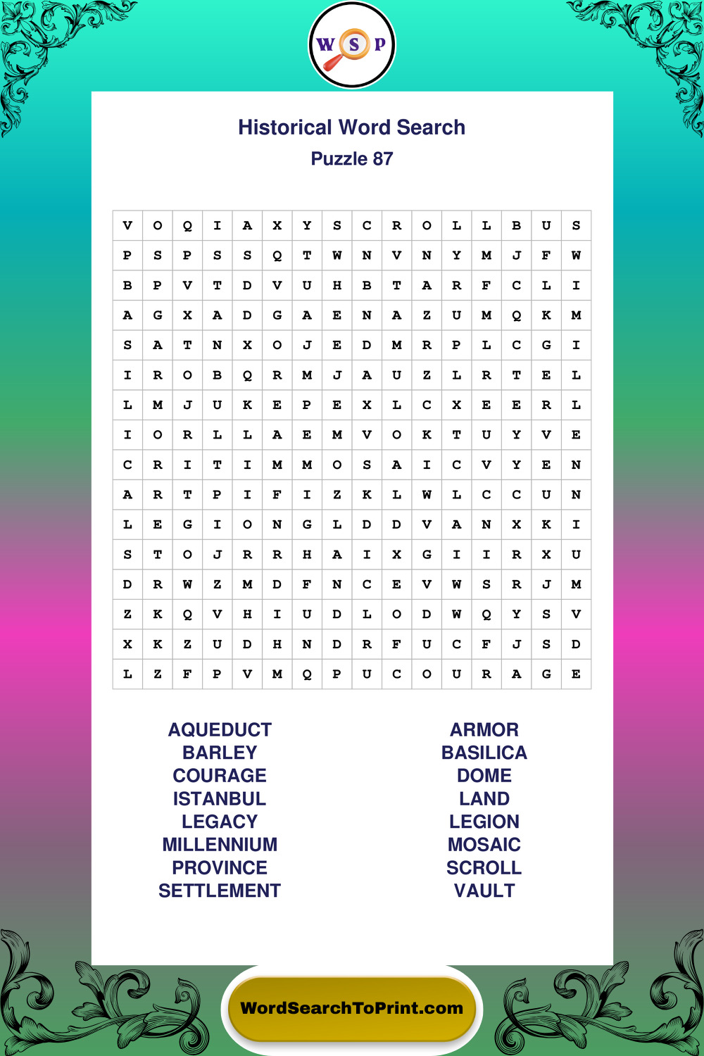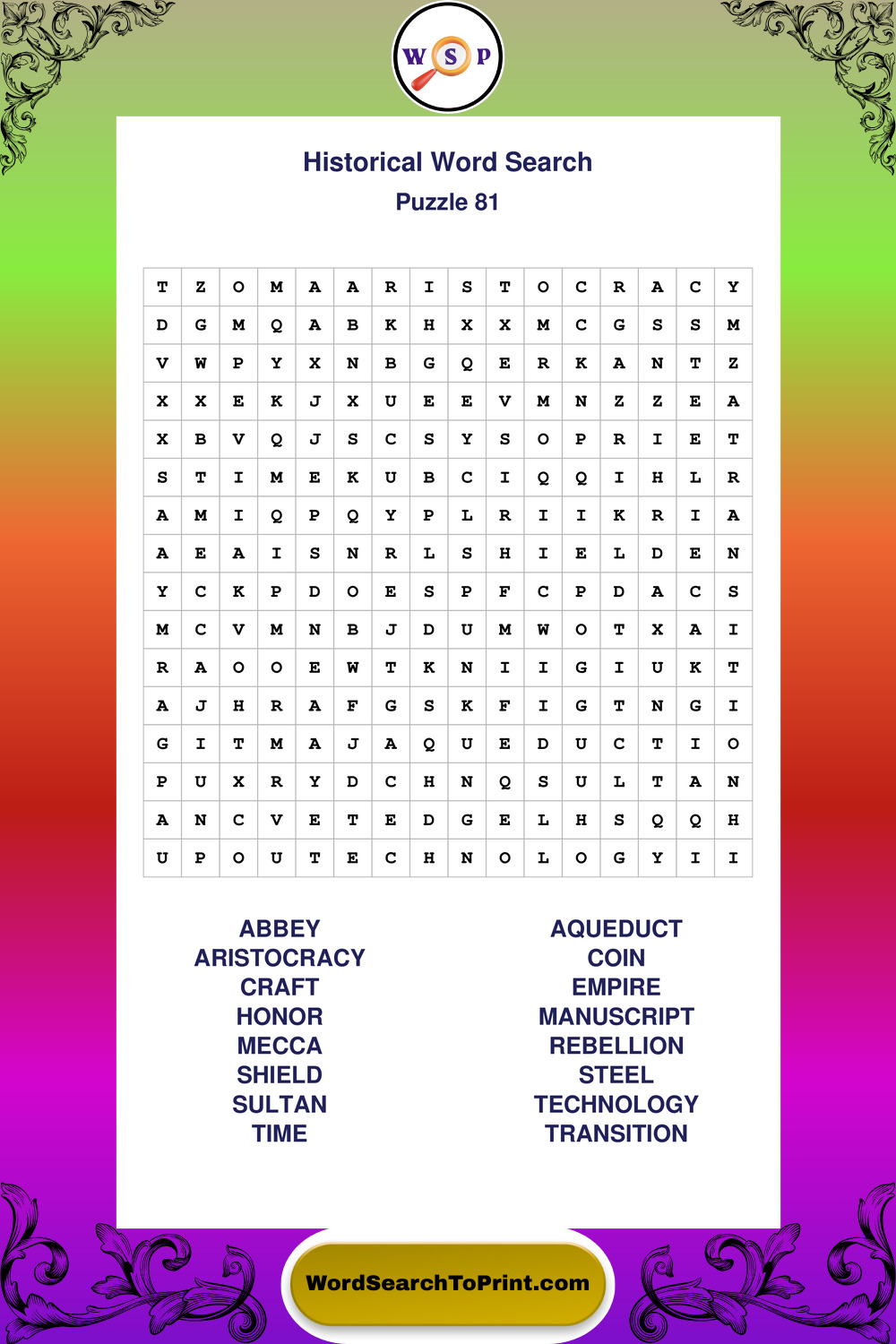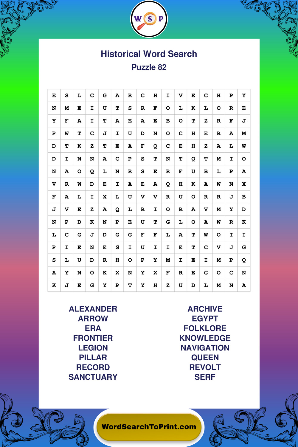 Browse our free large print Historical wordsearches below. All puzzles are printable and include solutions.