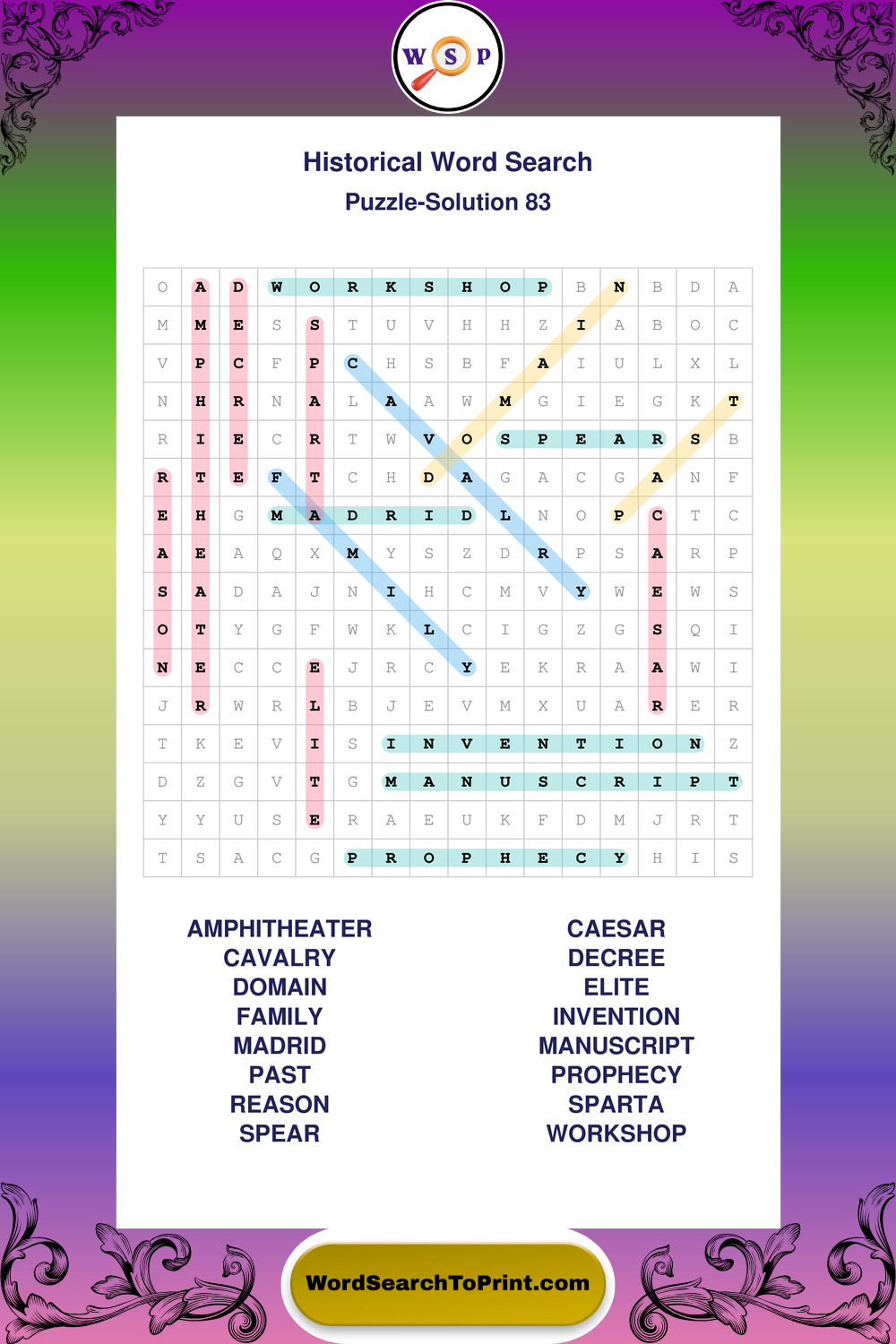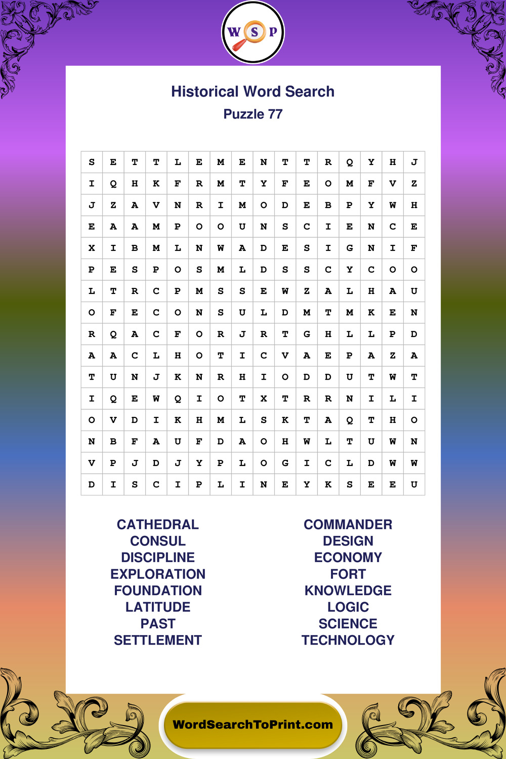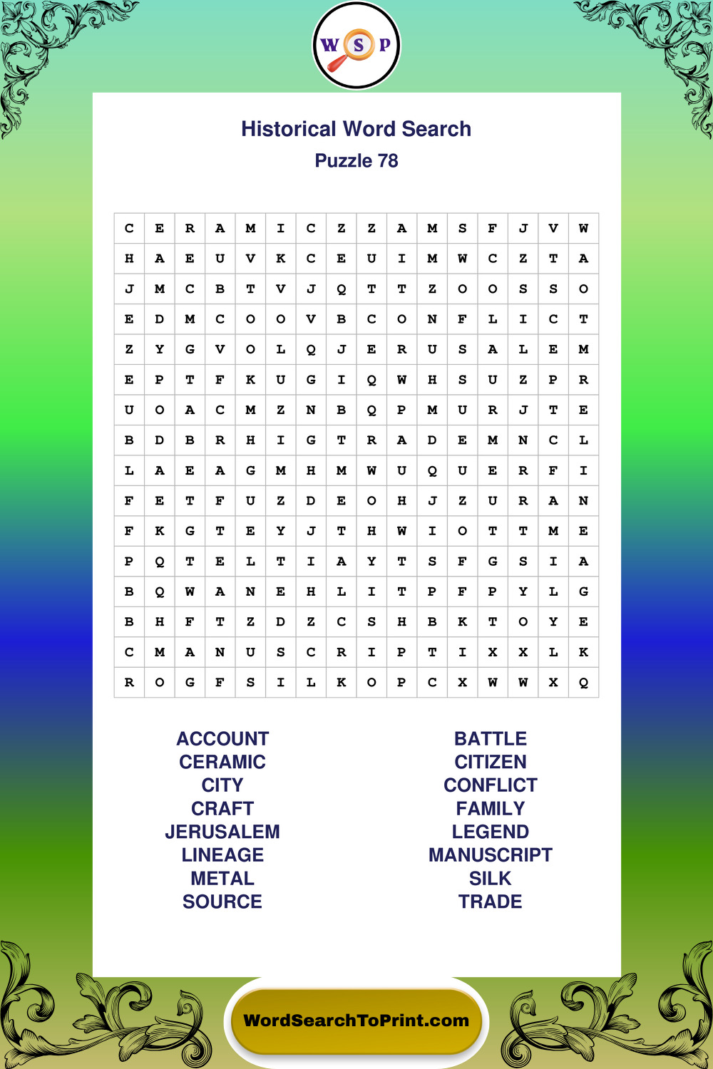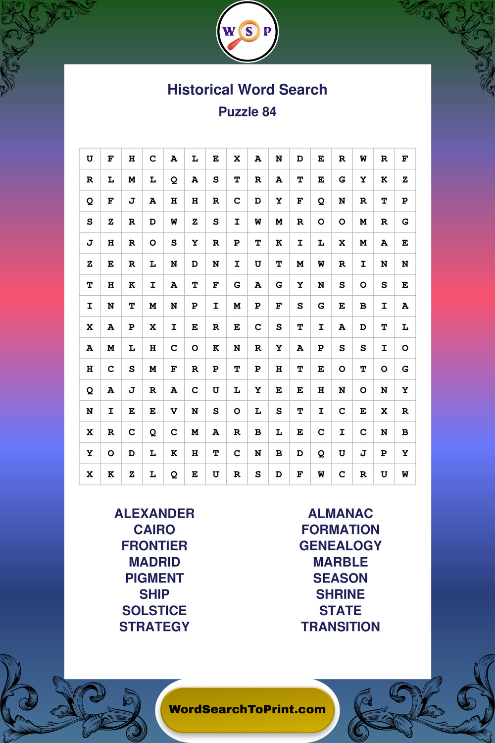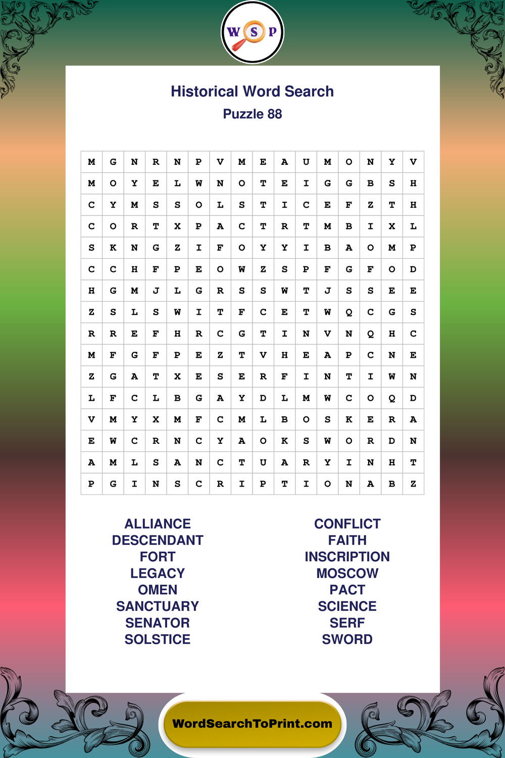 Browse our free large print Historical wordsearches below. All puzzles are printable and include solutions.