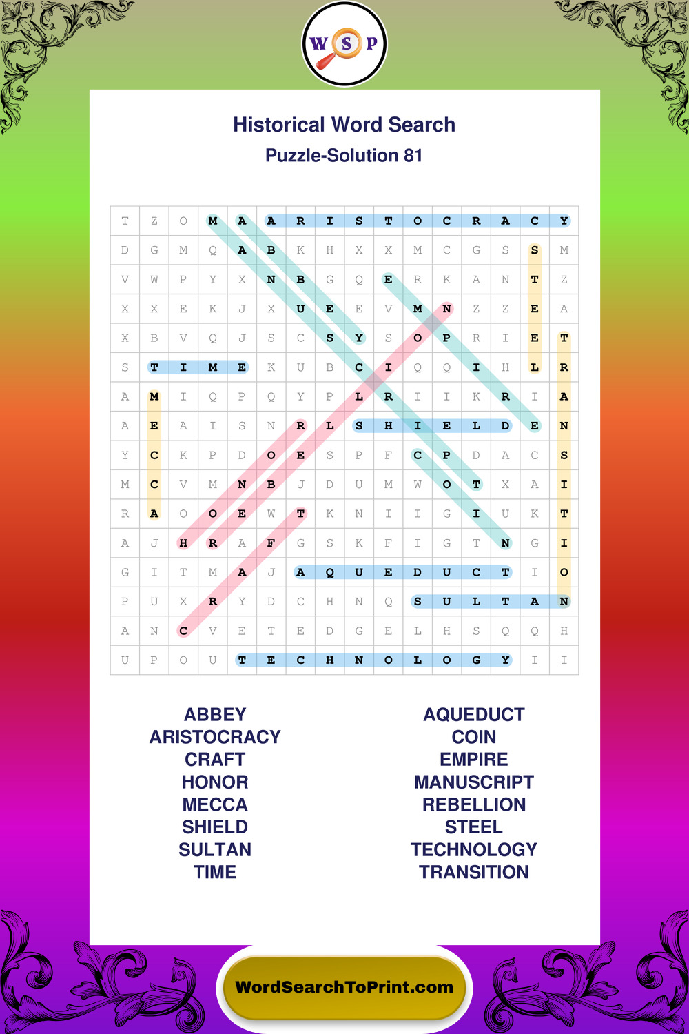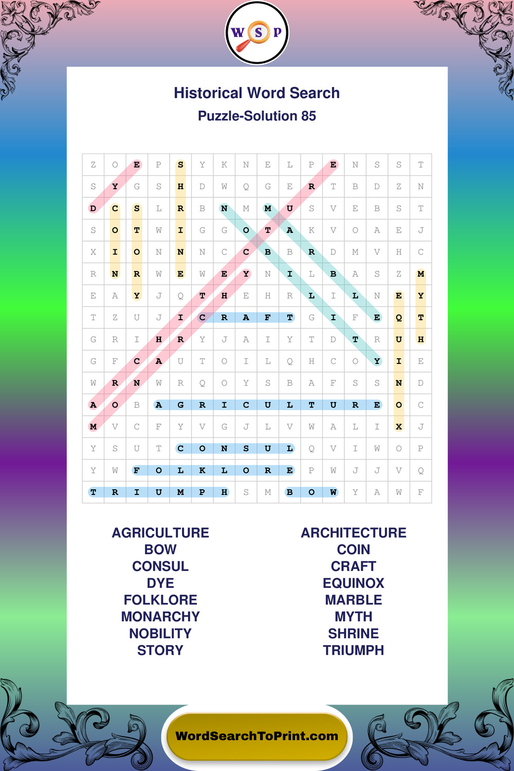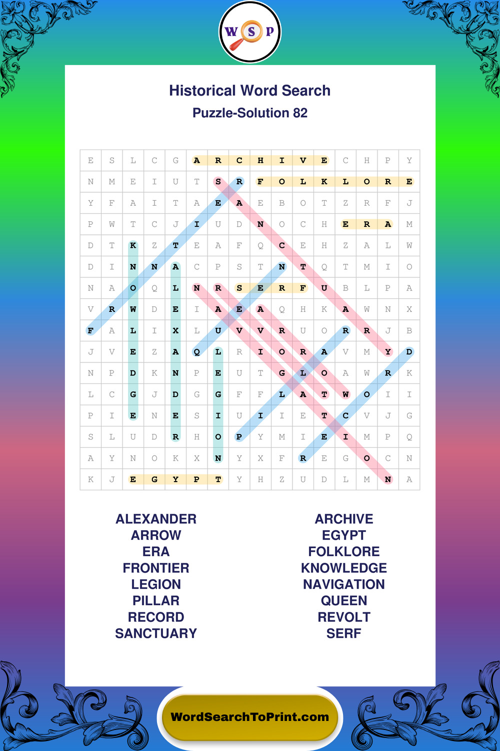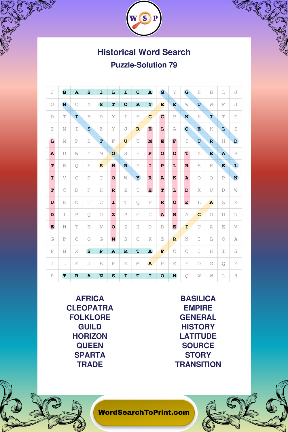 Browse our free large print Historical wordsearches below. All puzzles are printable and include solutions.