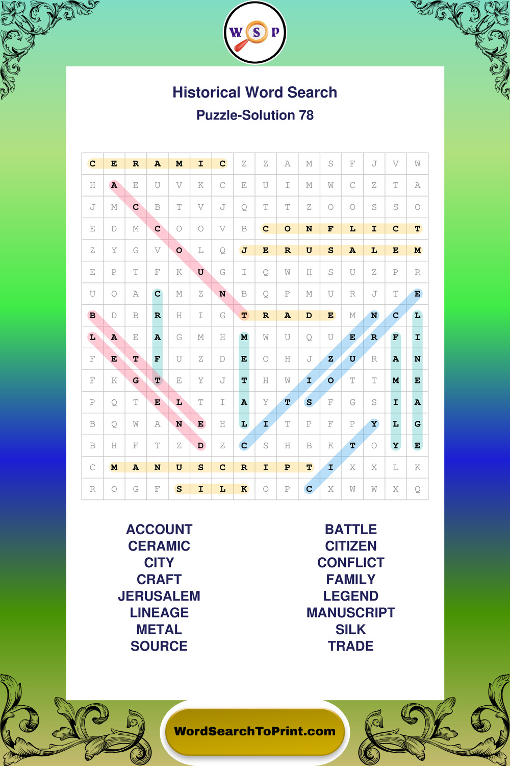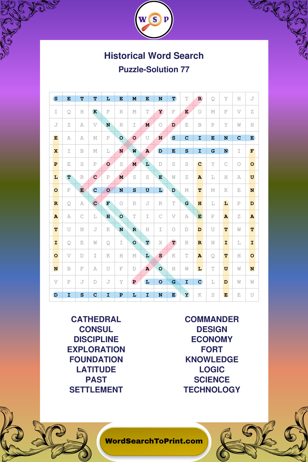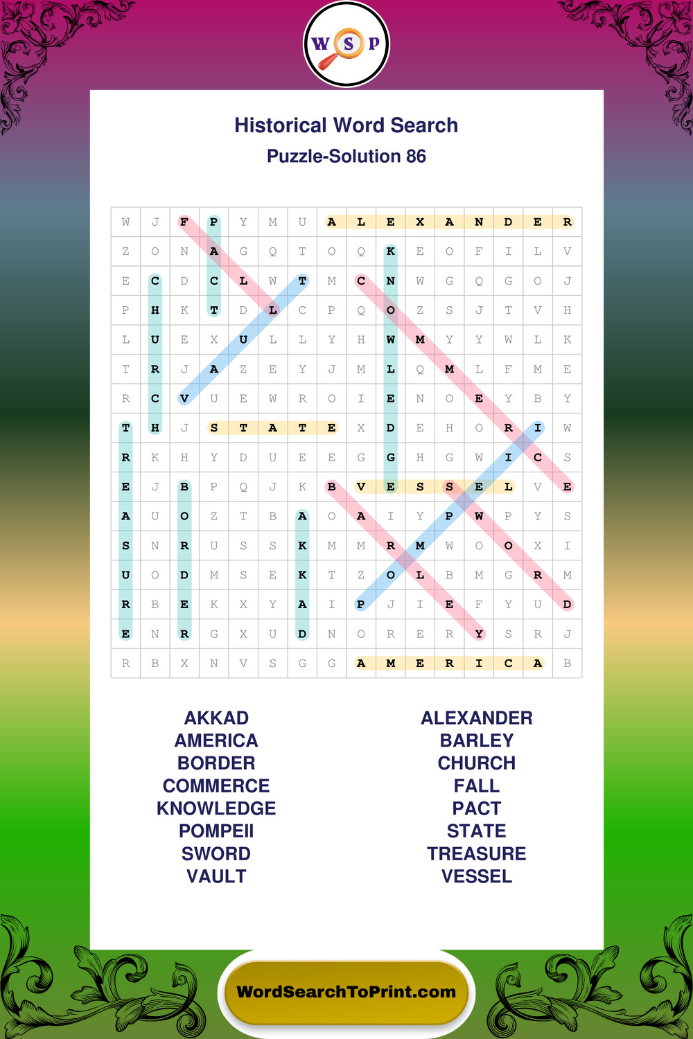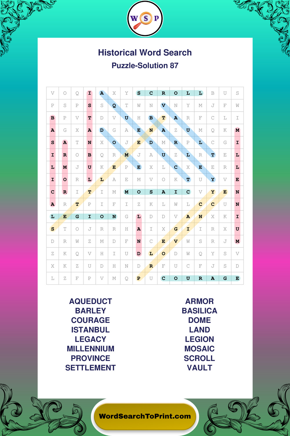 Browse our free large print Historical wordsearches below. All puzzles are printable and include solutions.
