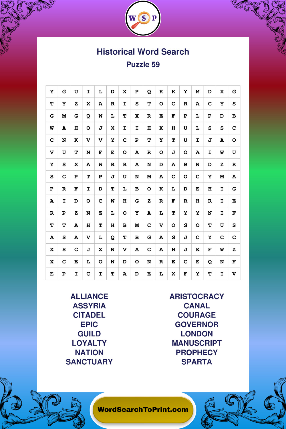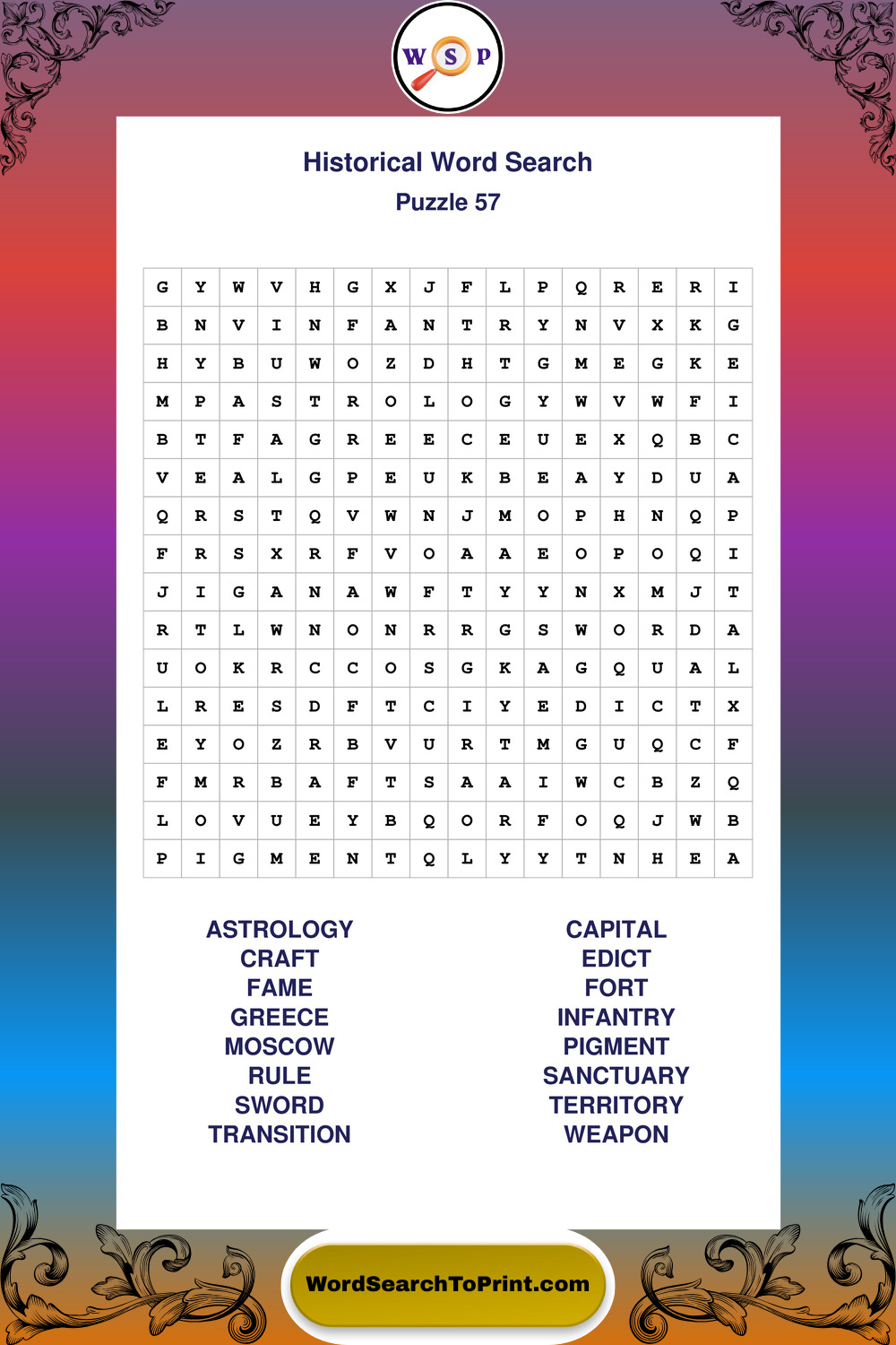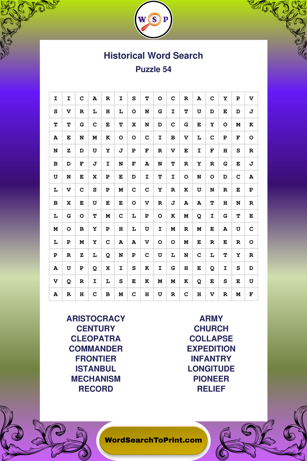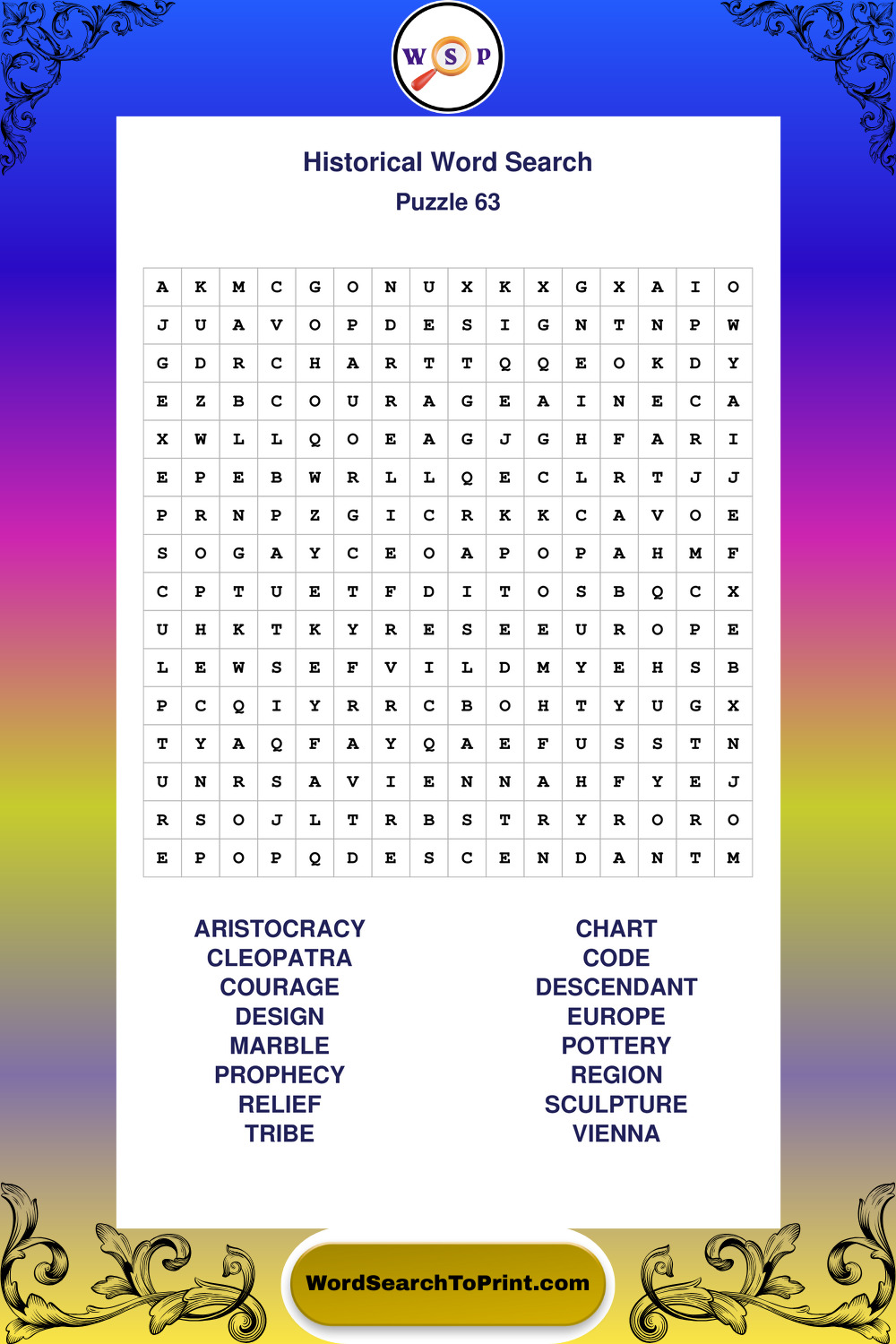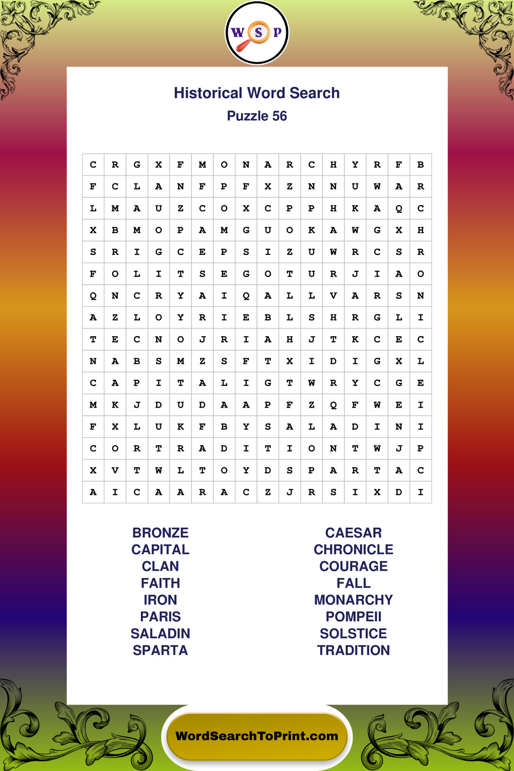 Browse our free large print Historical wordsearches below. All puzzles are printable and include solutions.