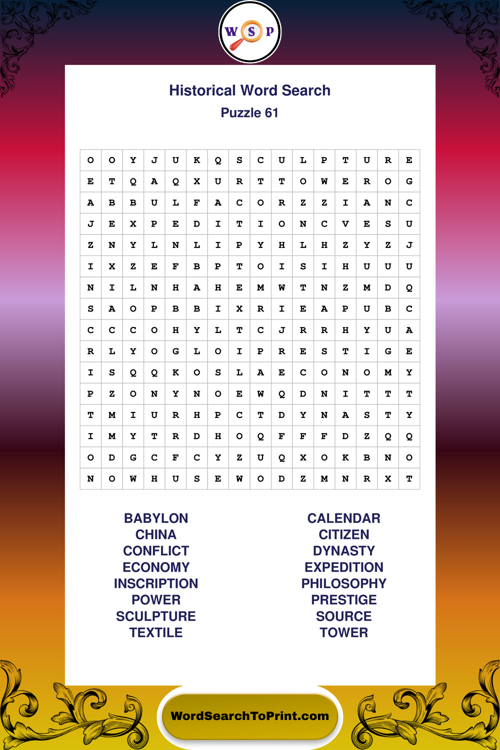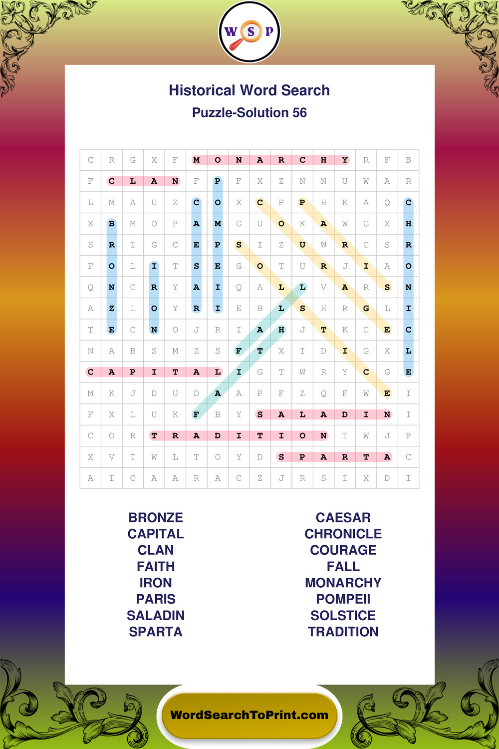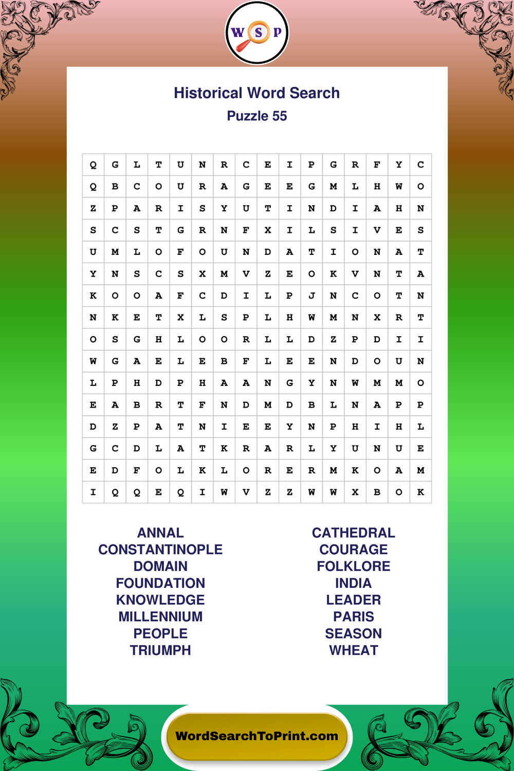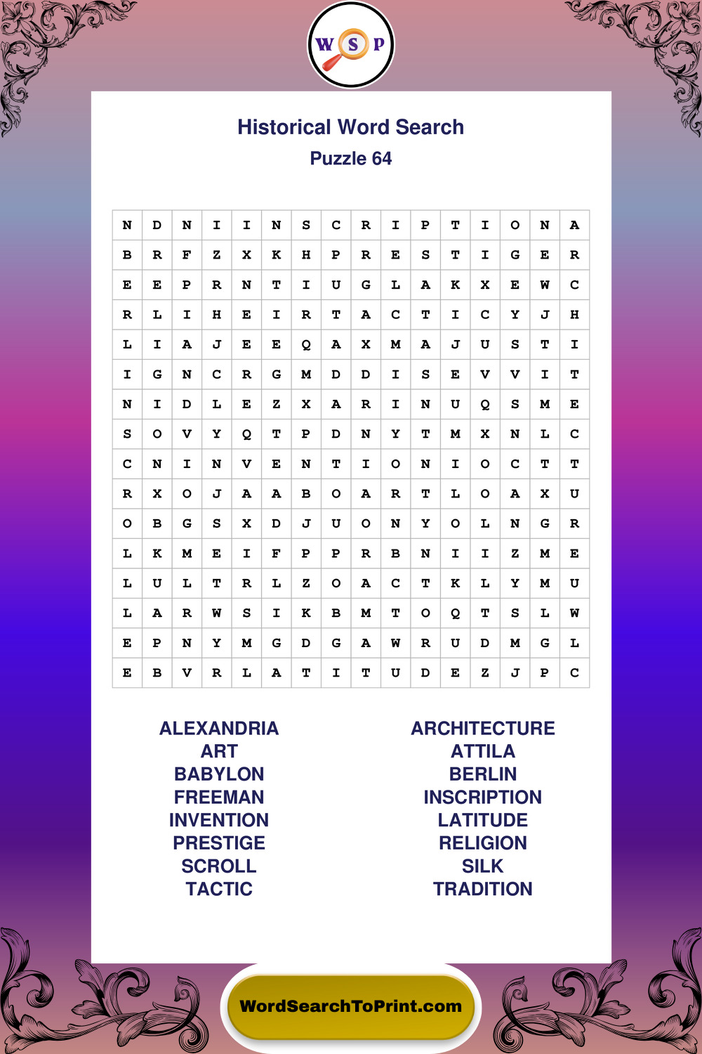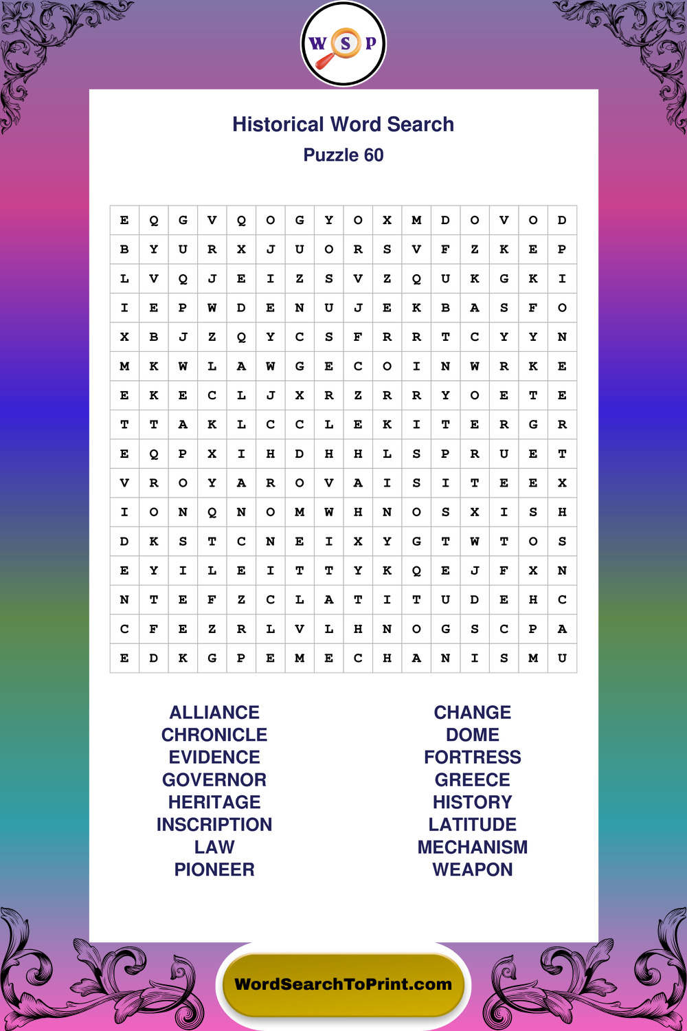Browse our free large print Historical wordsearches below. All puzzles are printable and include solutions.