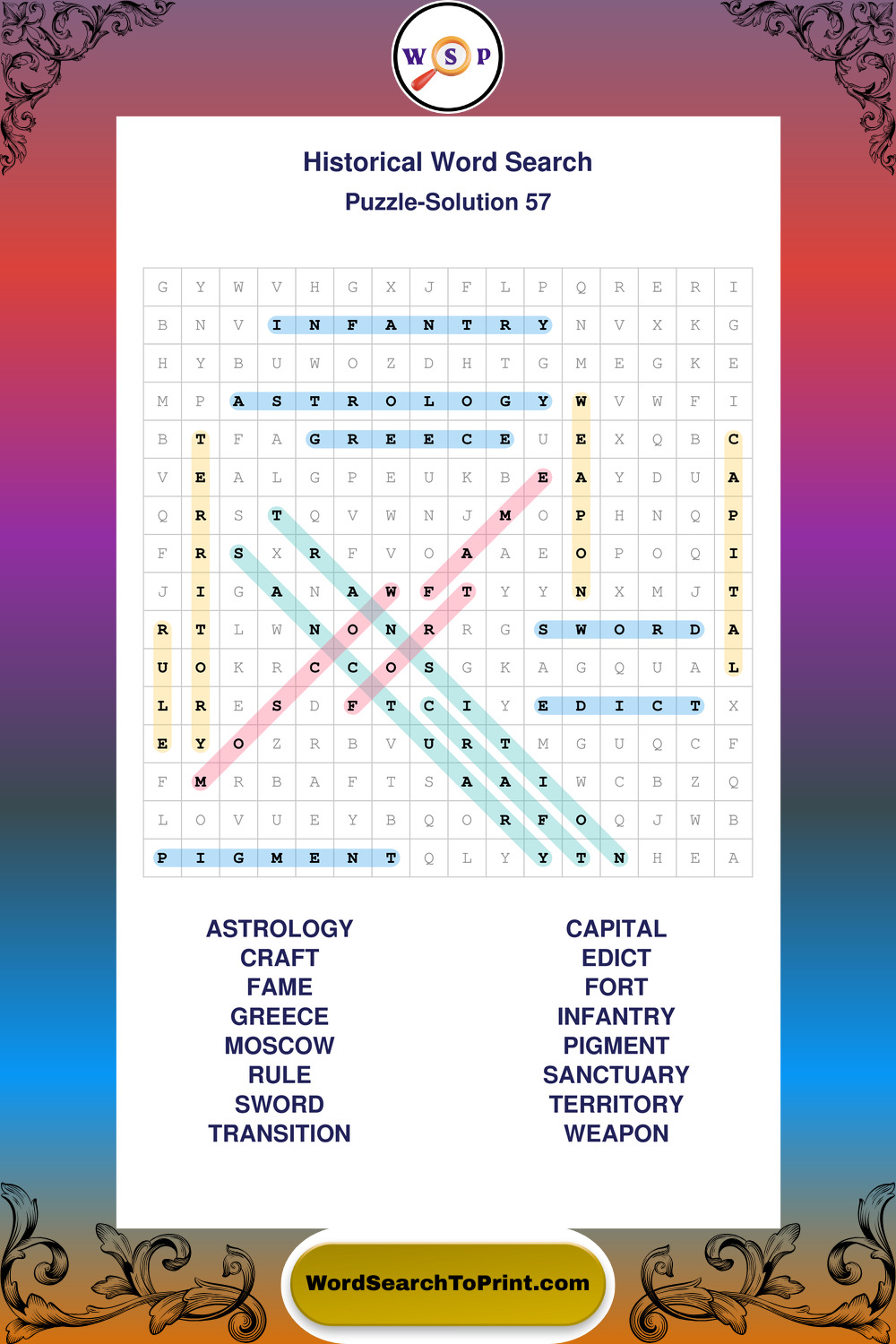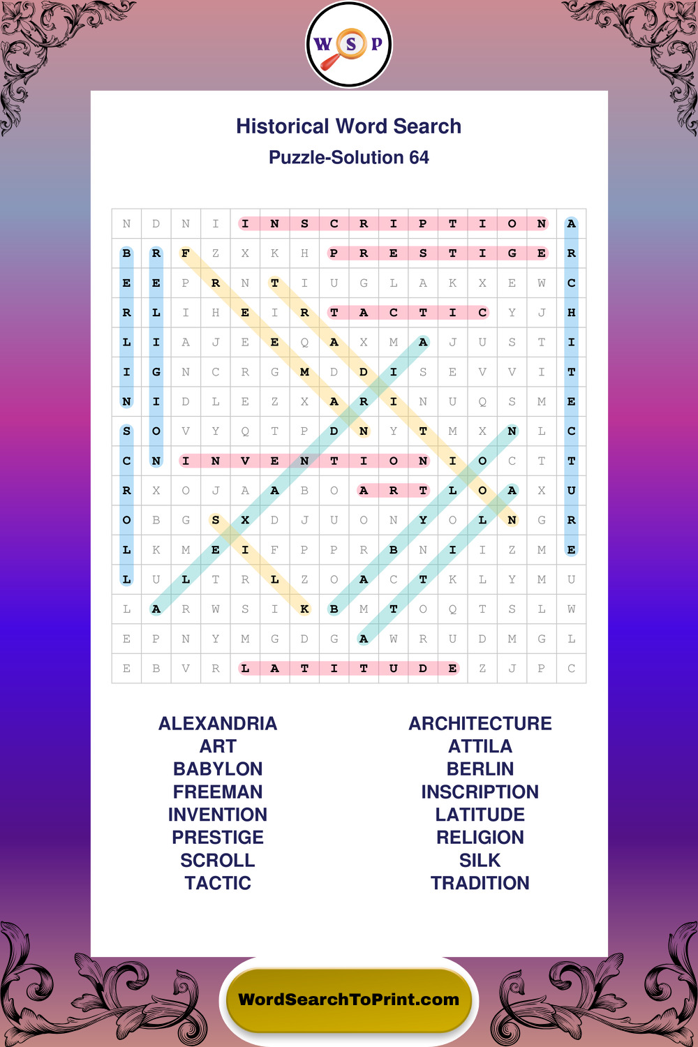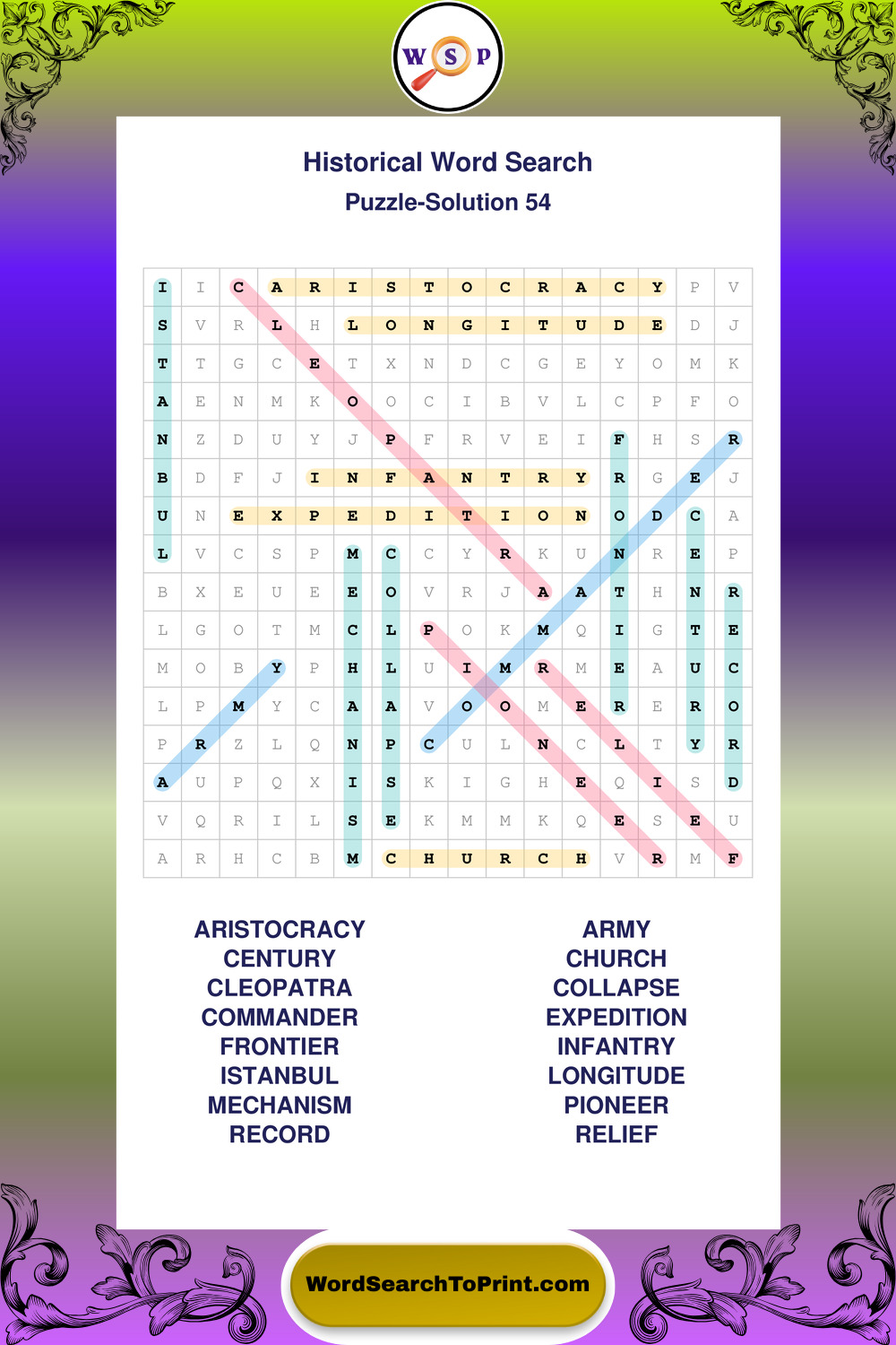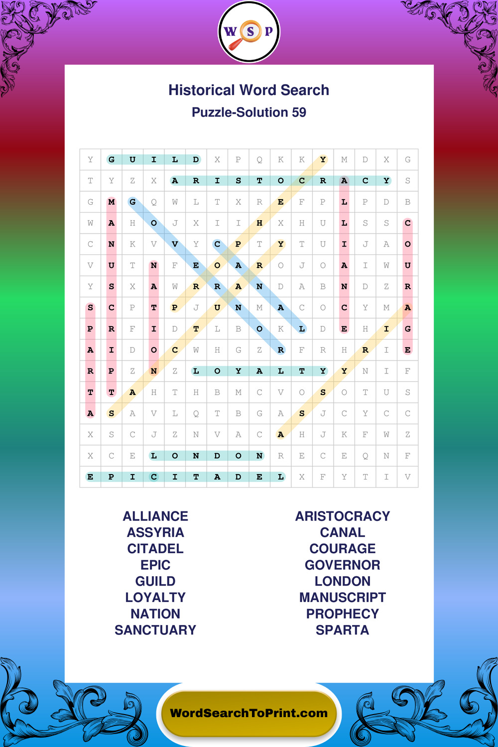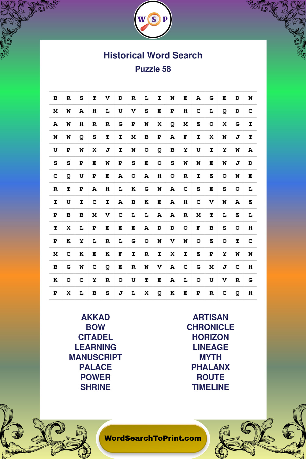 Browse our free large print Historical wordsearches below. All puzzles are printable and include solutions.