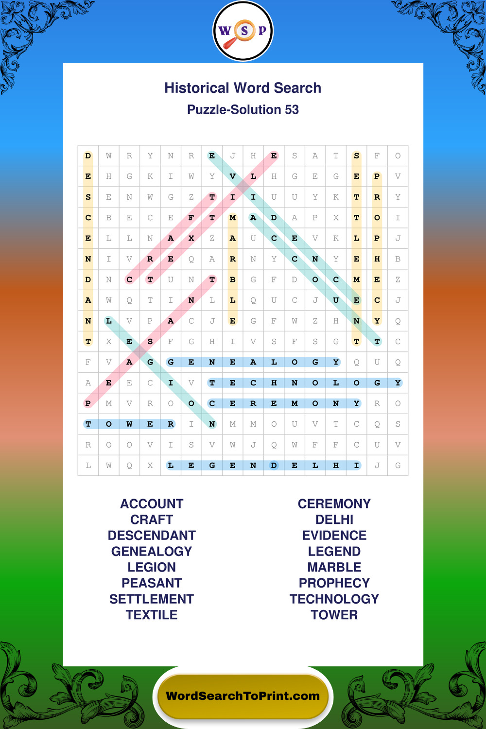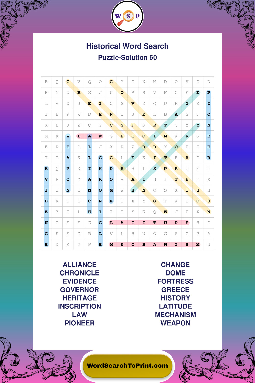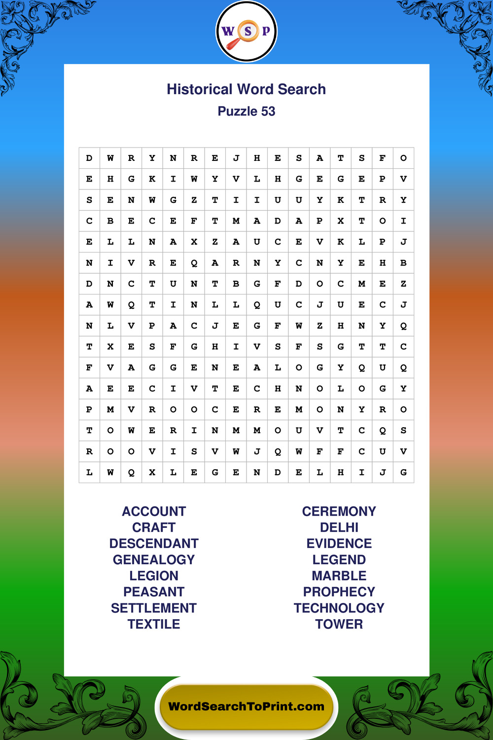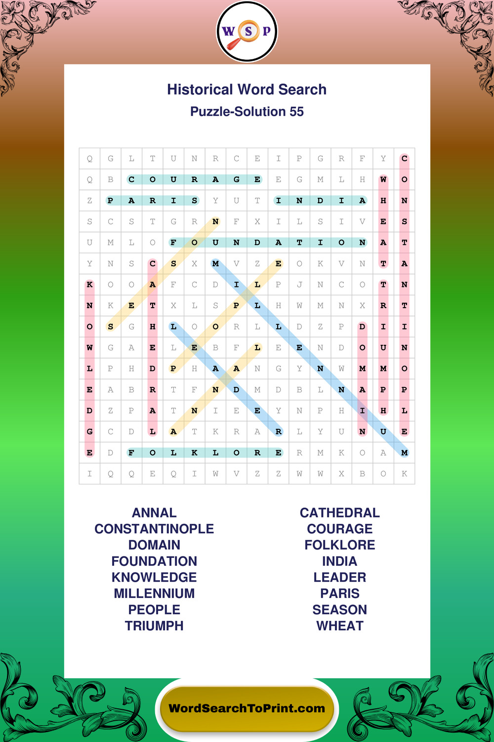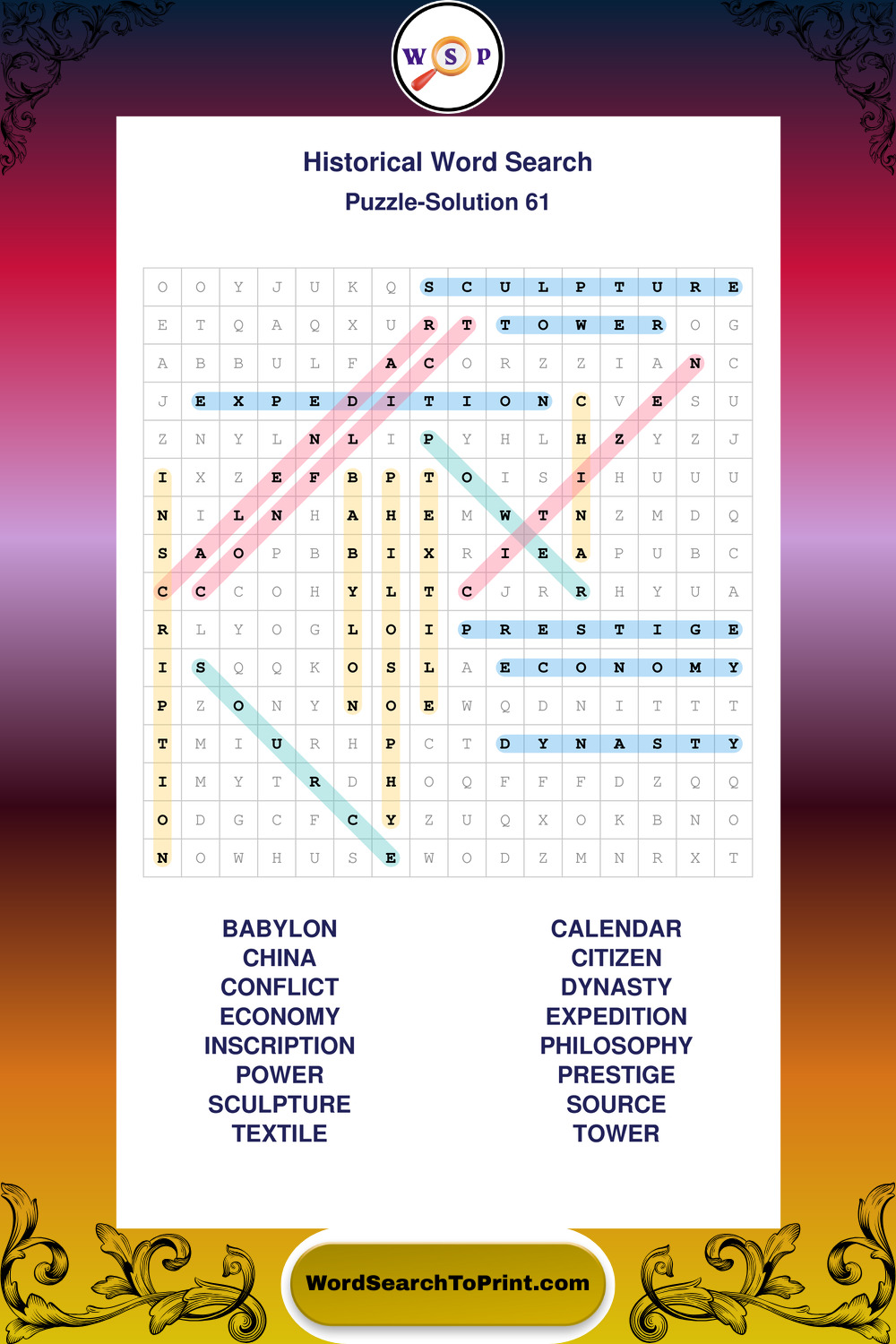 Browse our free large print Historical wordsearches below. All puzzles are printable and include solutions.