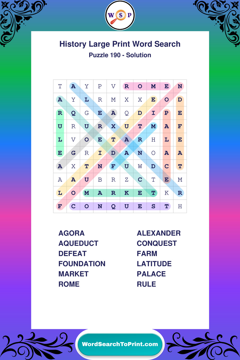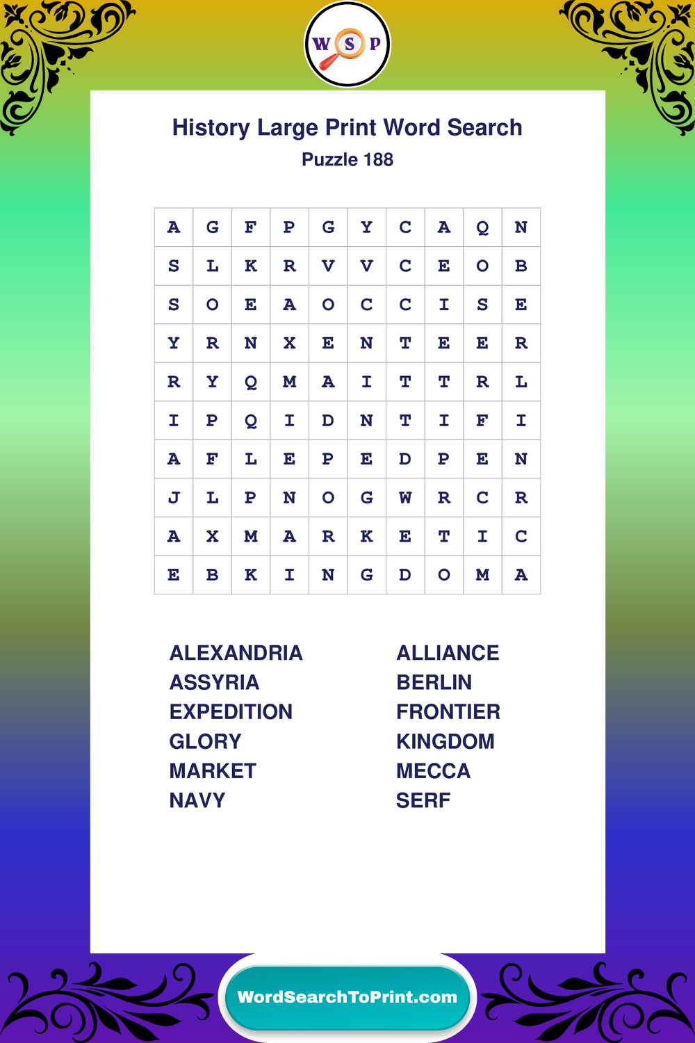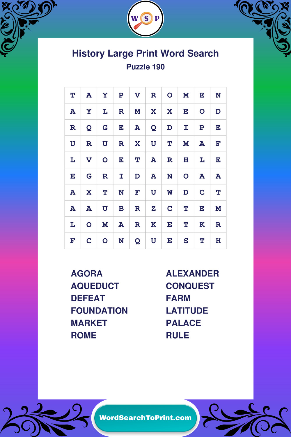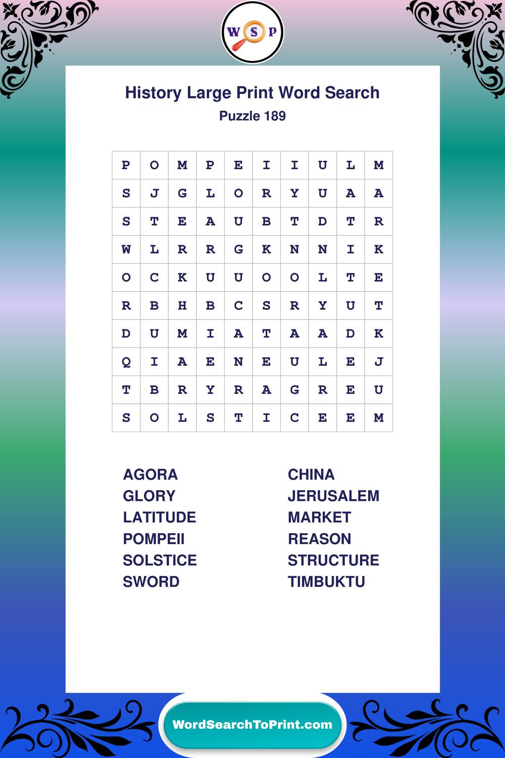 Dive into world History with clear, accessible Large Print History Wordsearches. A fun way to explore the past through relaxing, educational puzzles.