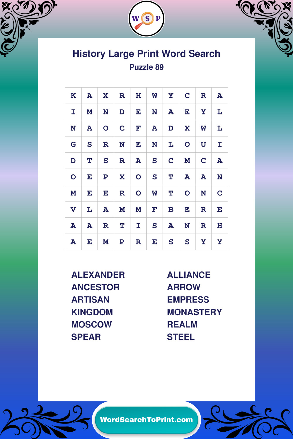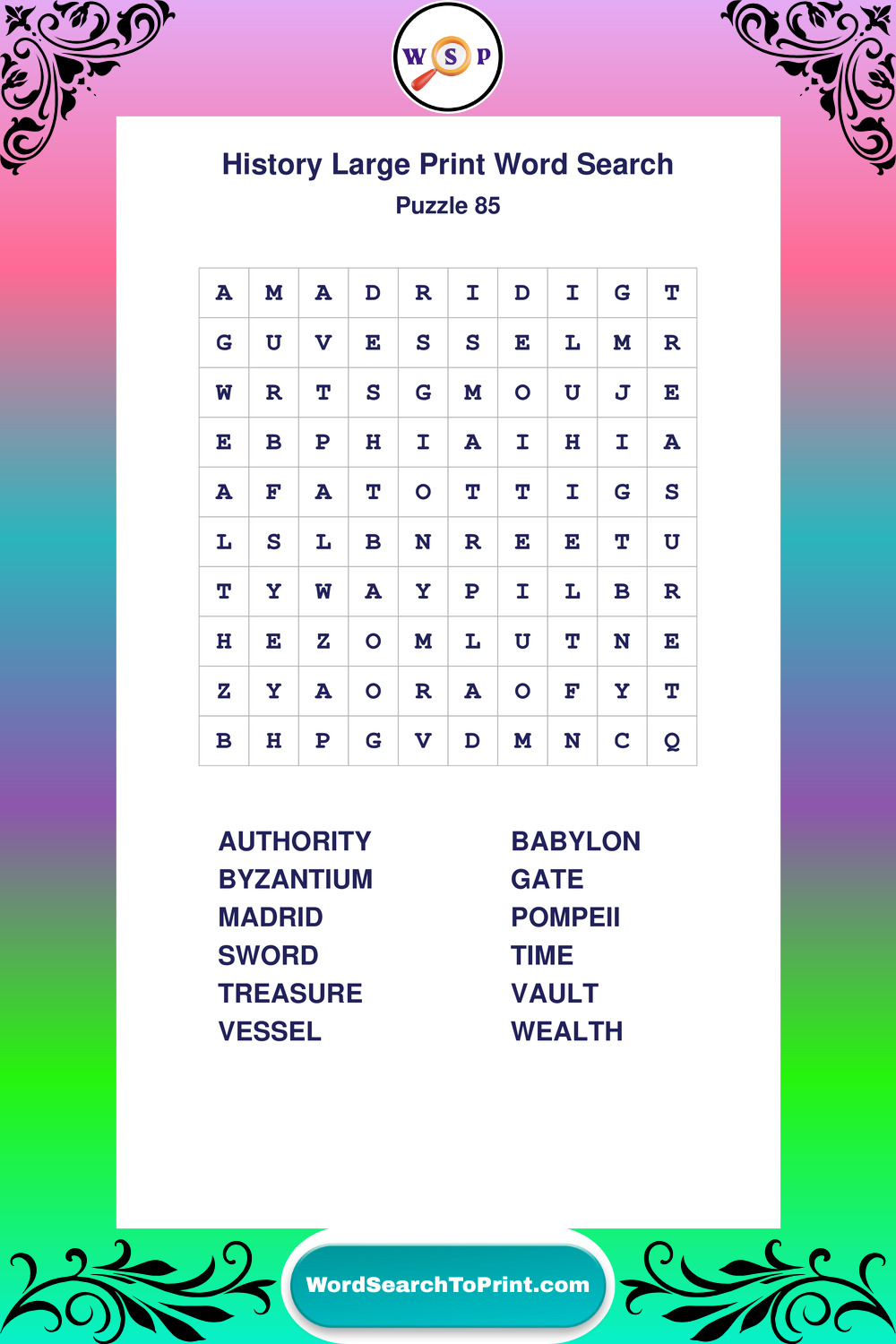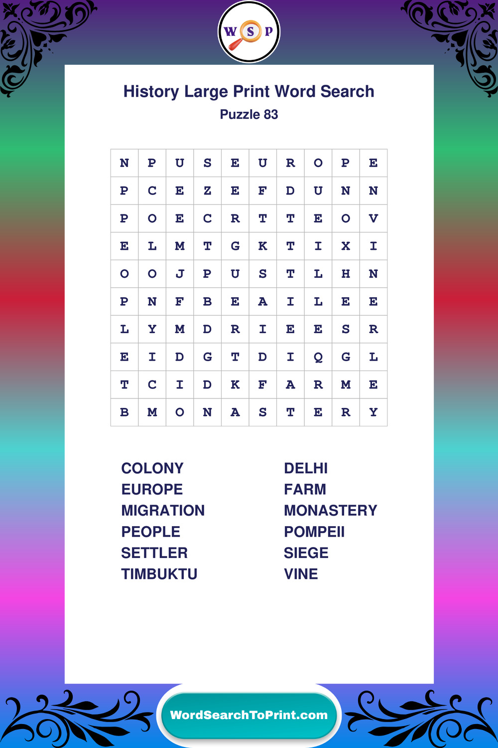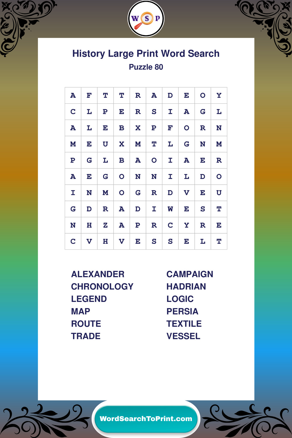 Dive into world History with clear, accessible Large Print History Wordsearches. A fun way to explore the past through relaxing, educational puzzles.