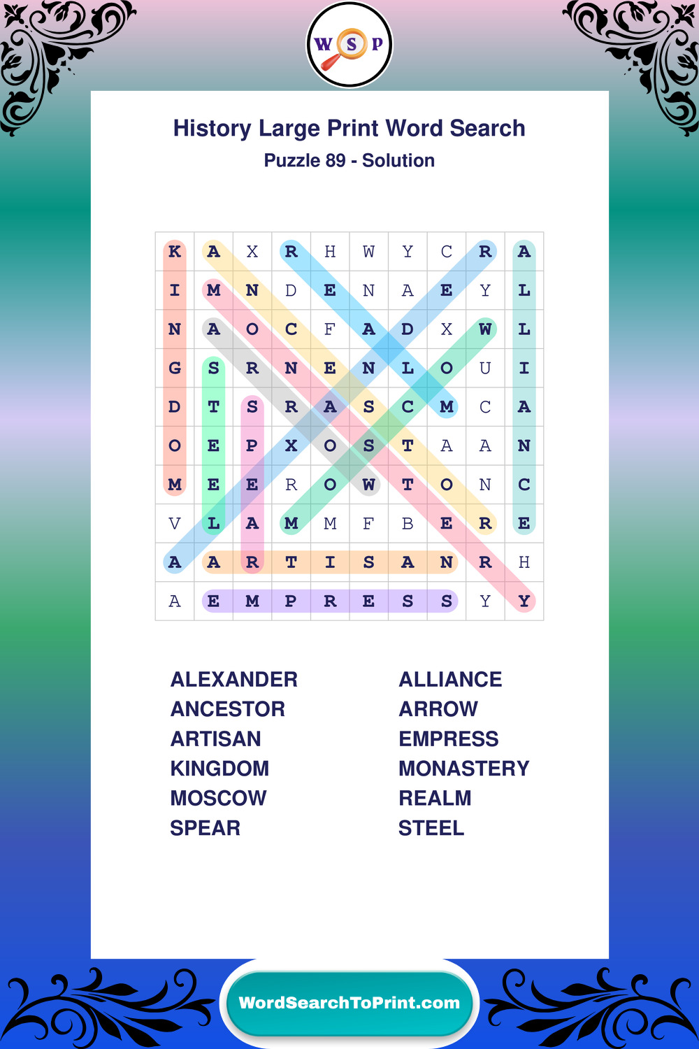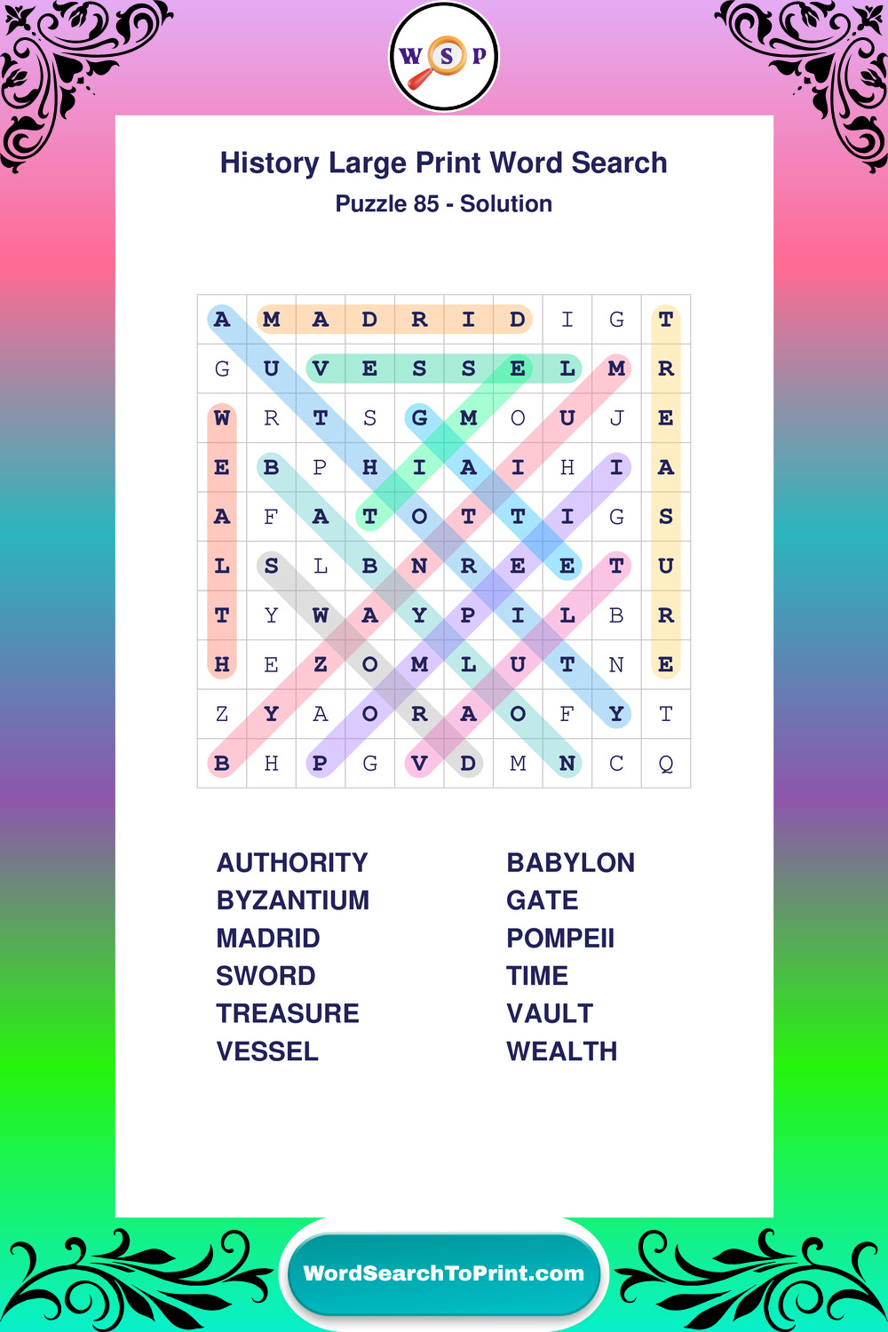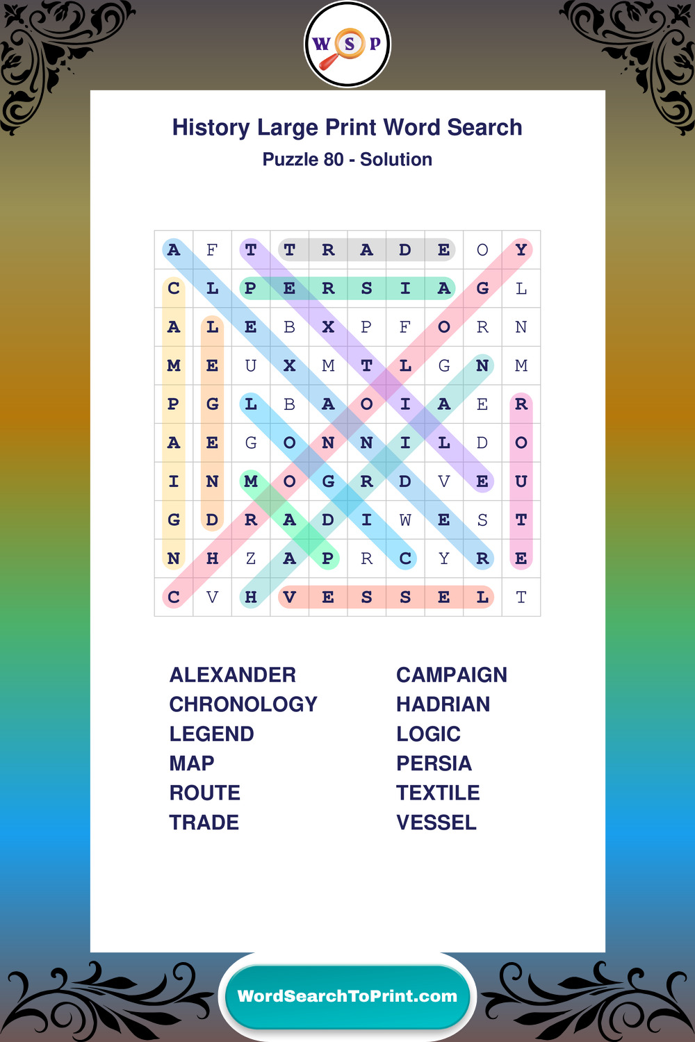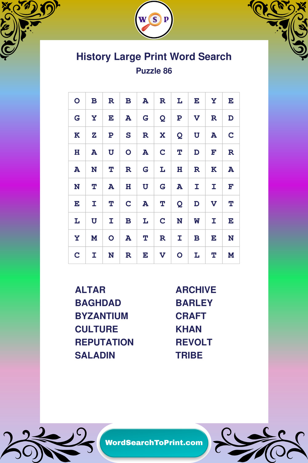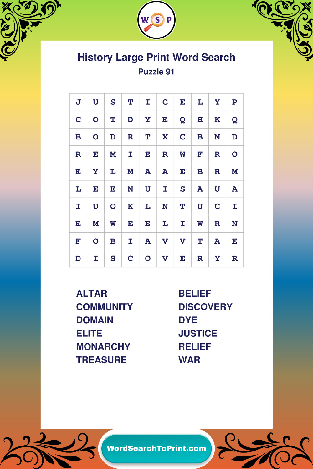 Dive into world History with clear, accessible Large Print History Wordsearches. A fun way to explore the past through relaxing, educational puzzles.