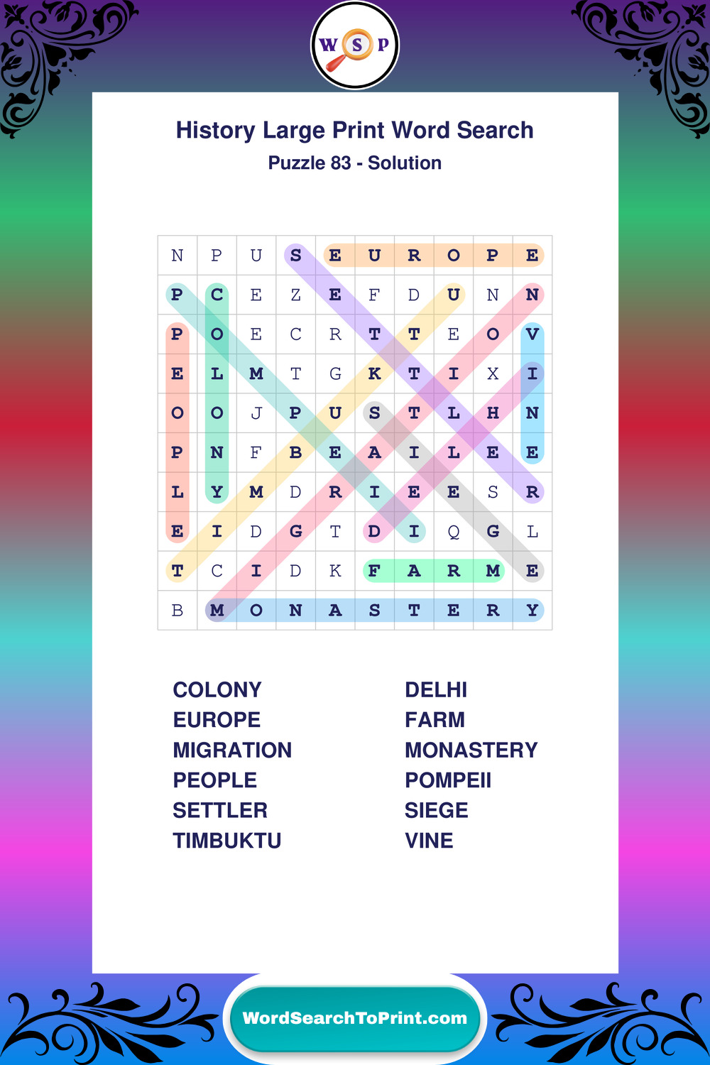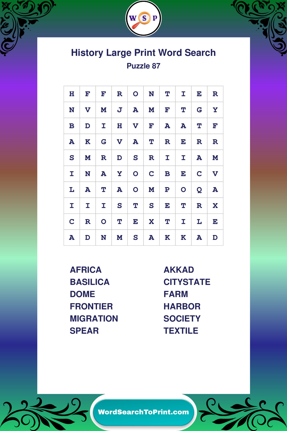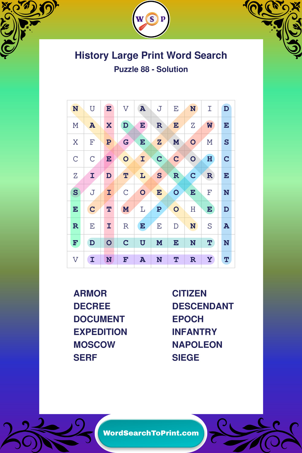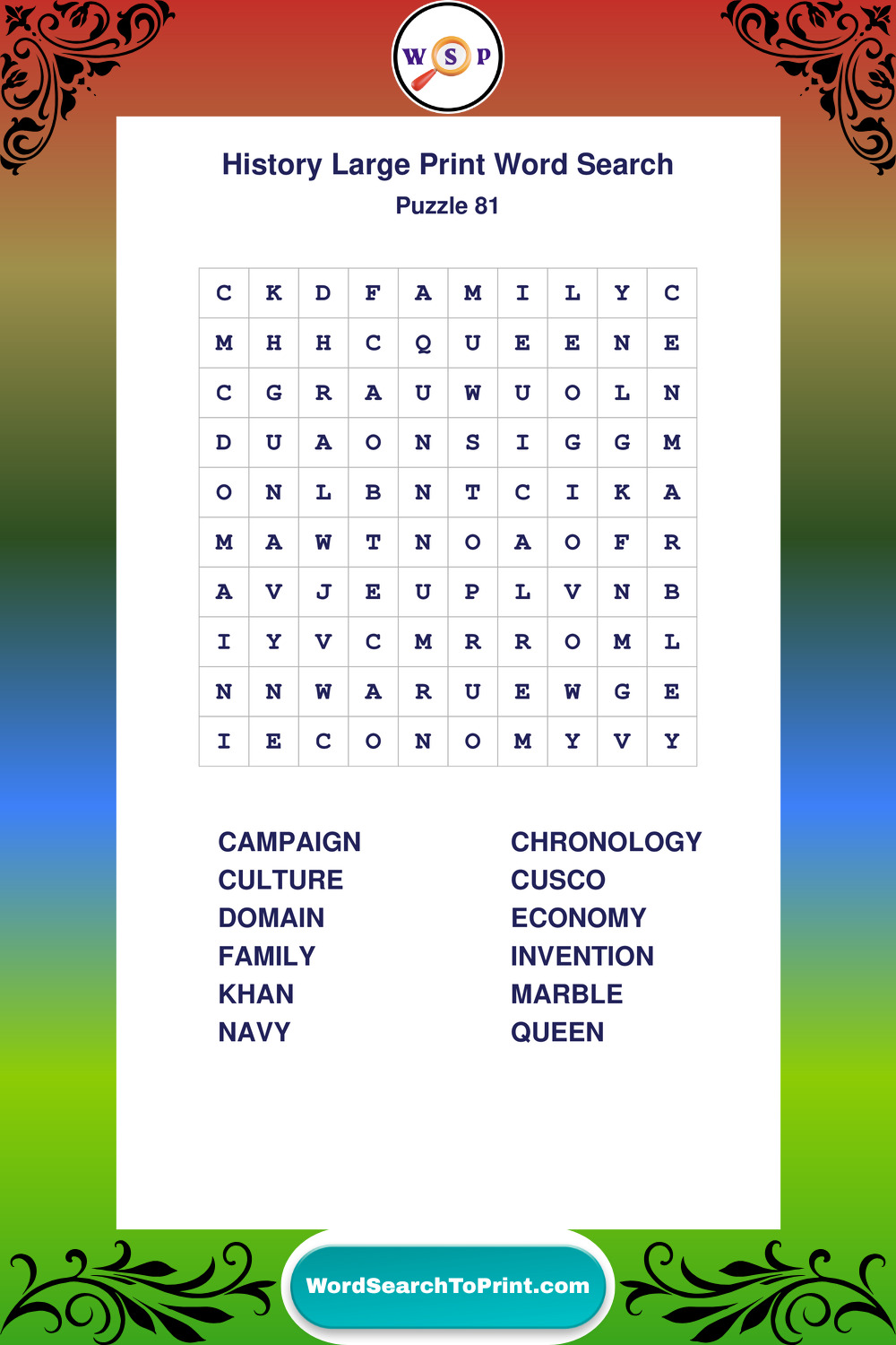 Free Large Print History Wordsearches