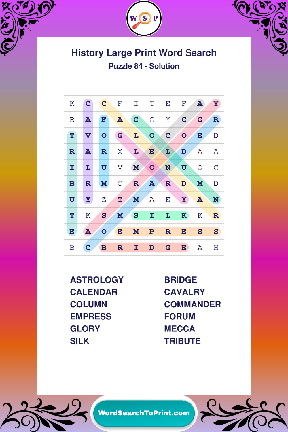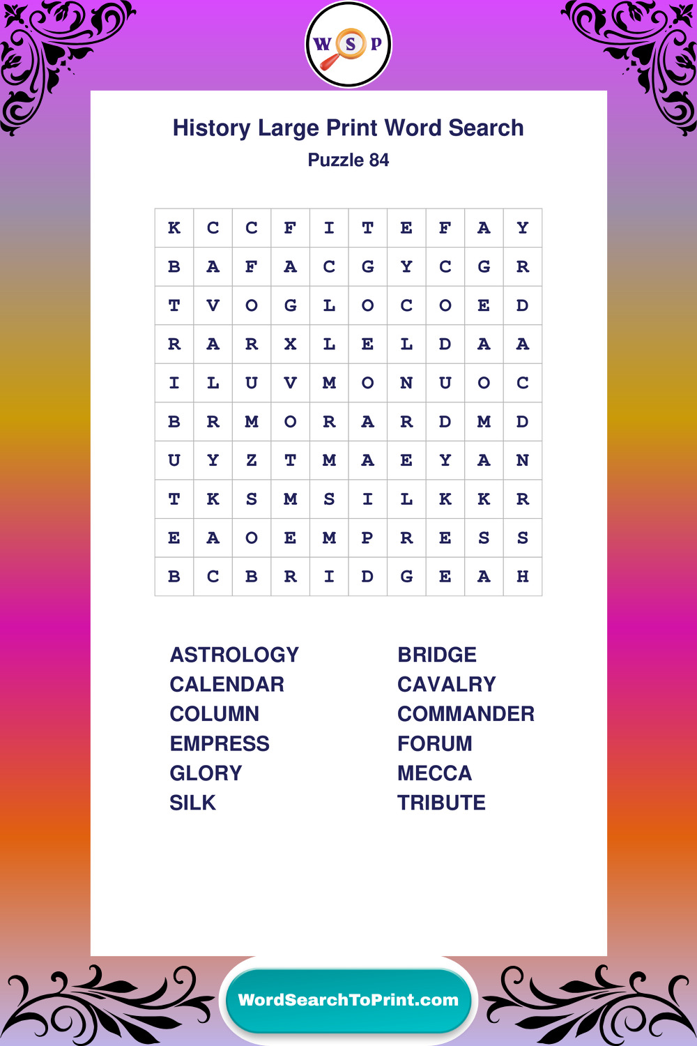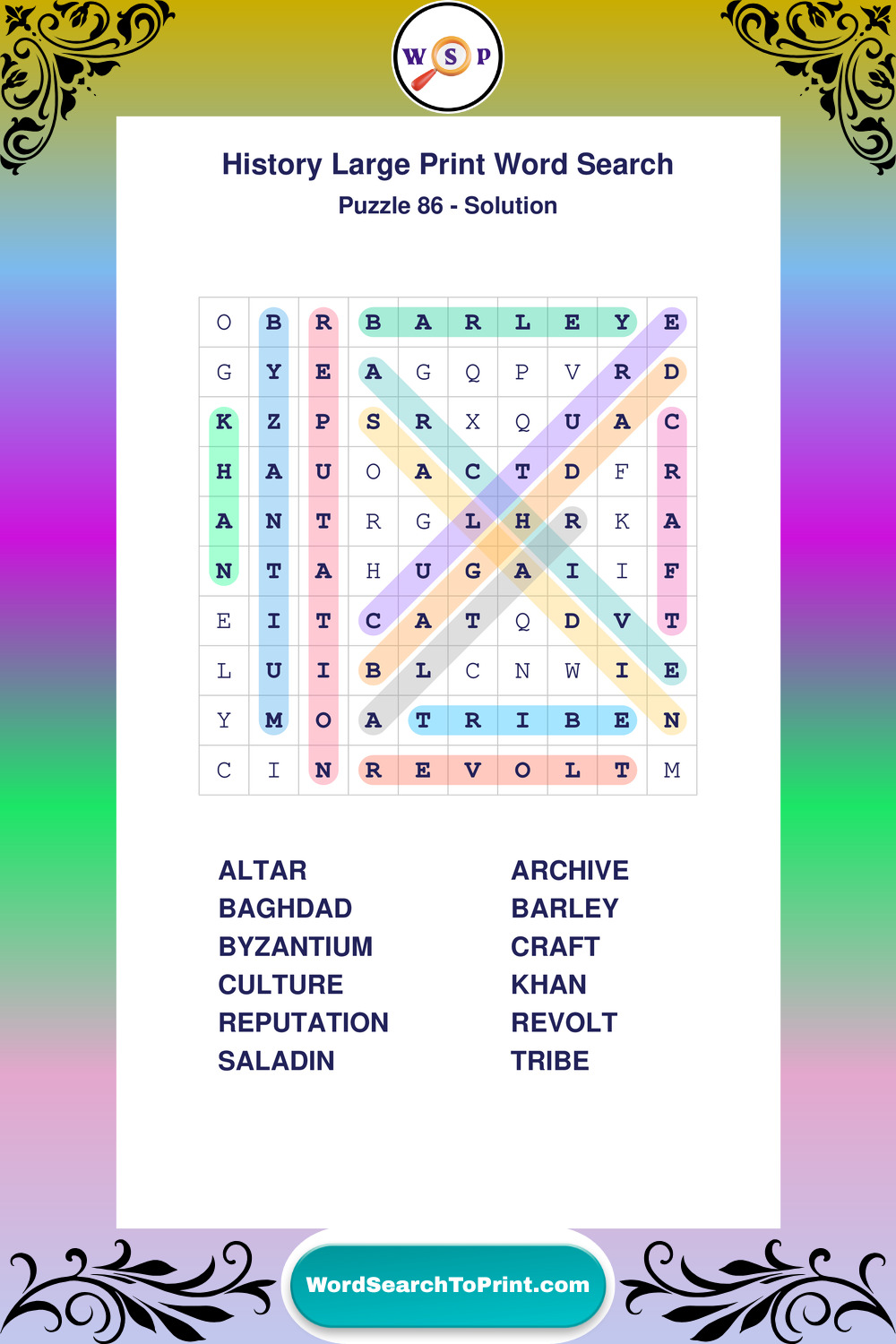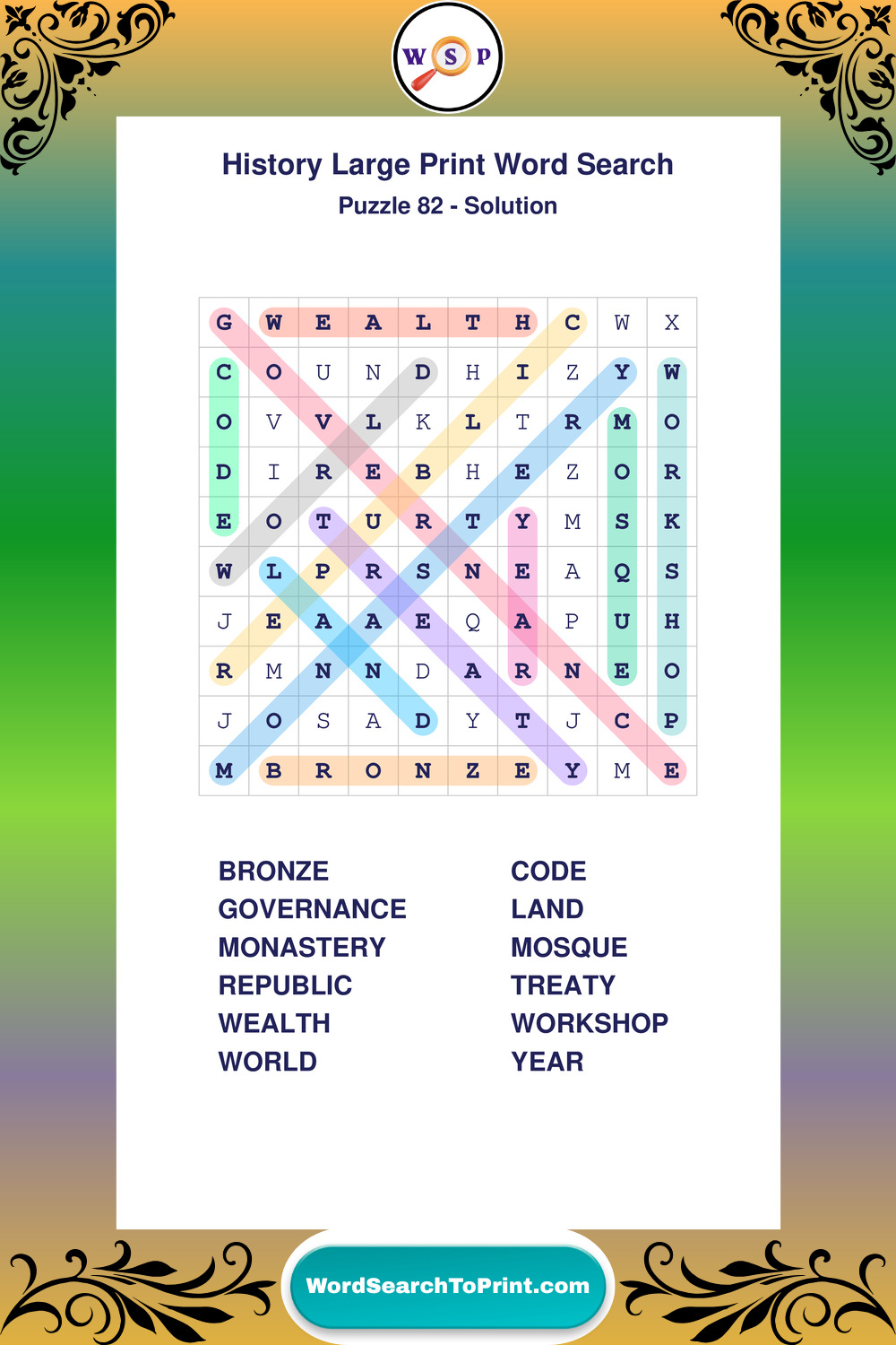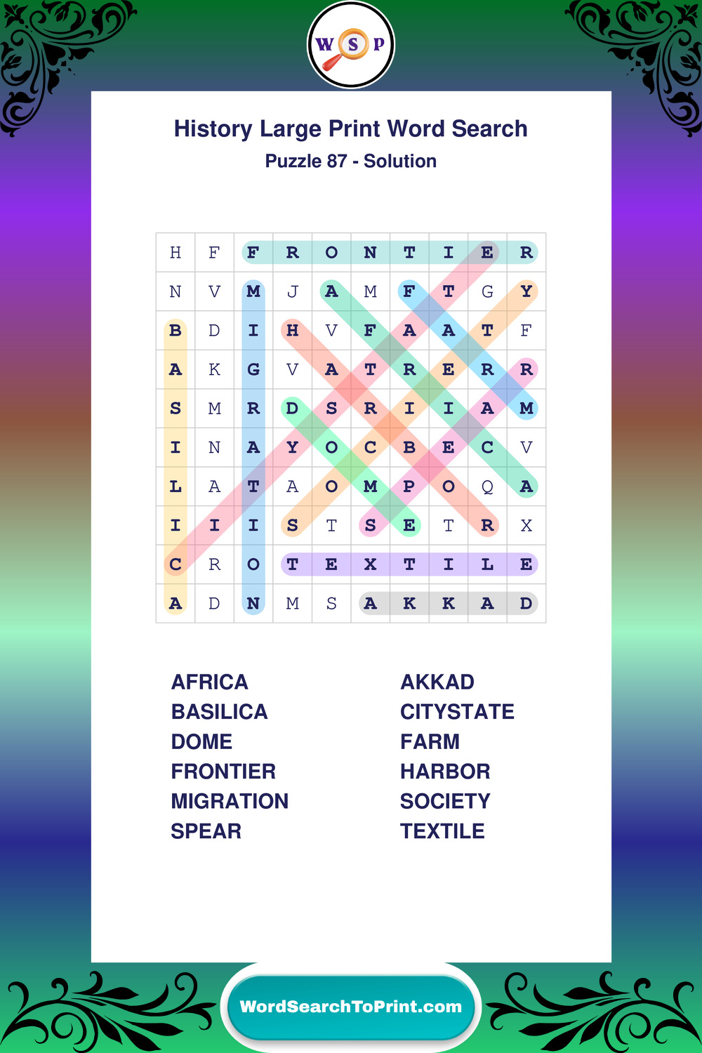 Free Large Print History Wordsearches