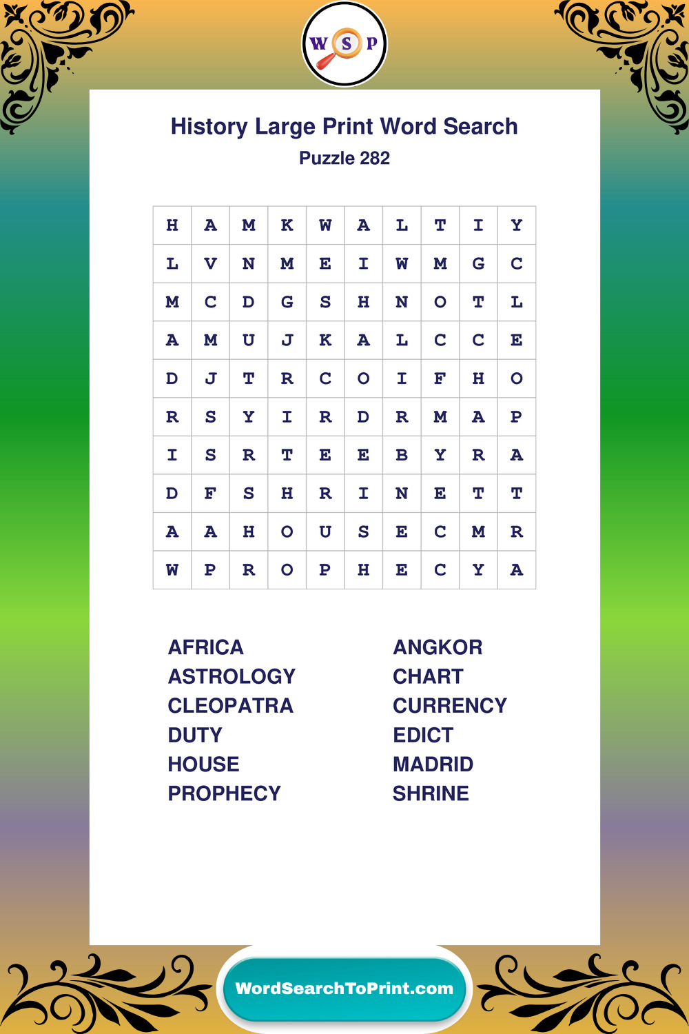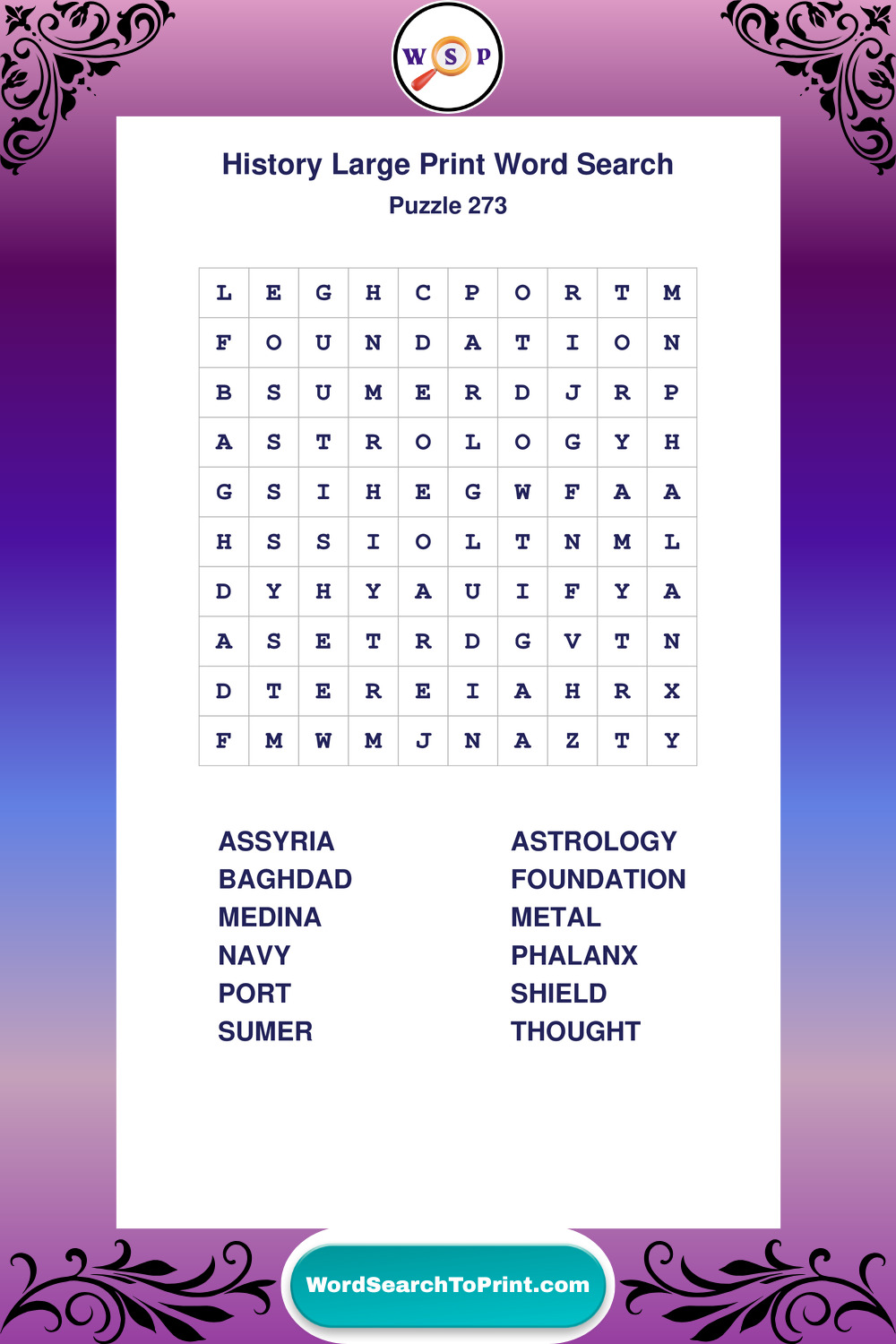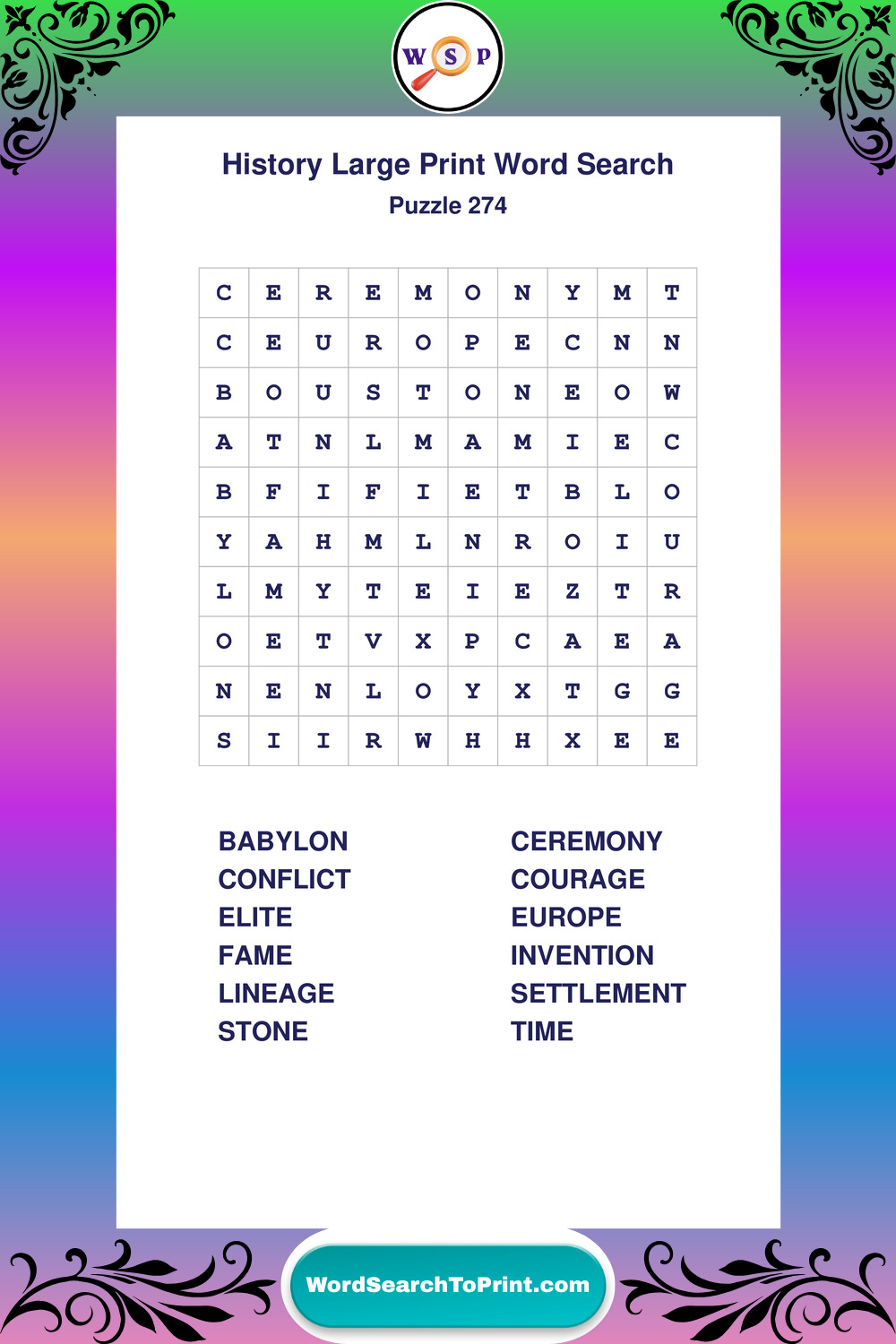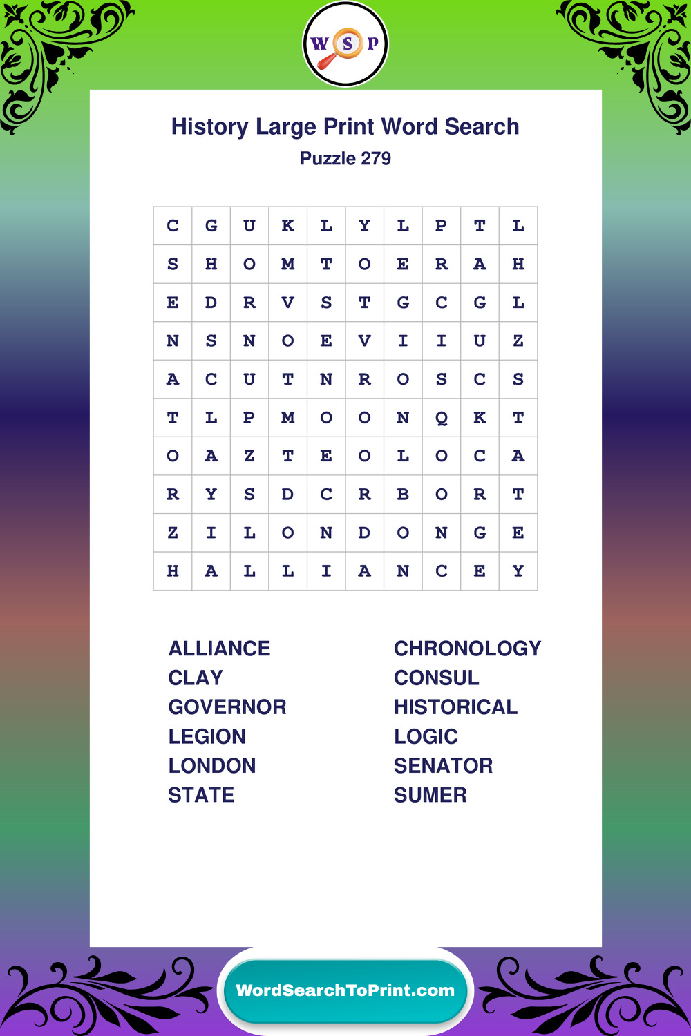 Dive into world History with clear, accessible Large Print History Wordsearches. A fun way to explore the past through relaxing, educational puzzles.