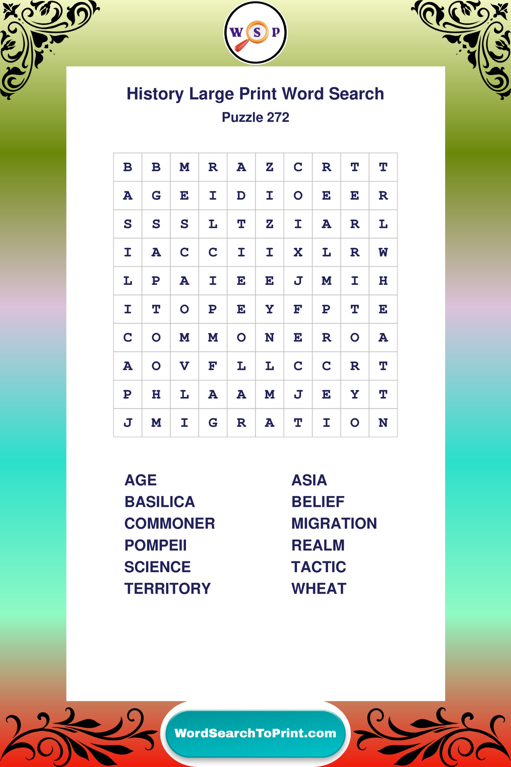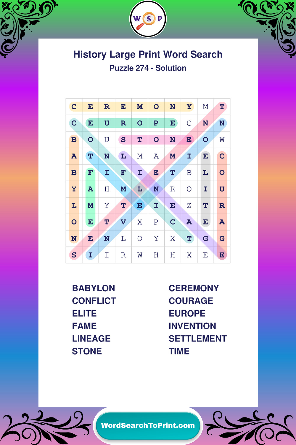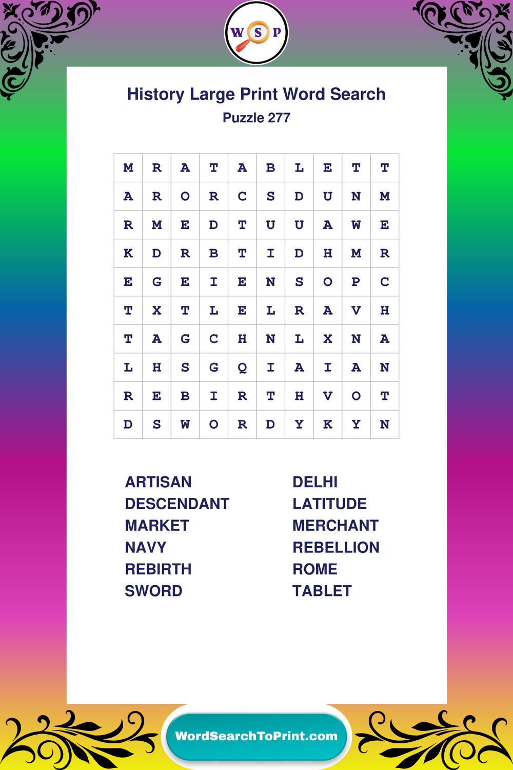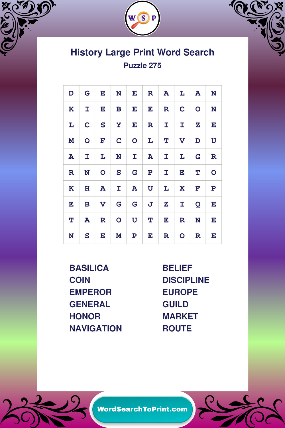 Dive into world History with clear, accessible Large Print History Wordsearches. A fun way to explore the past through relaxing, educational puzzles.