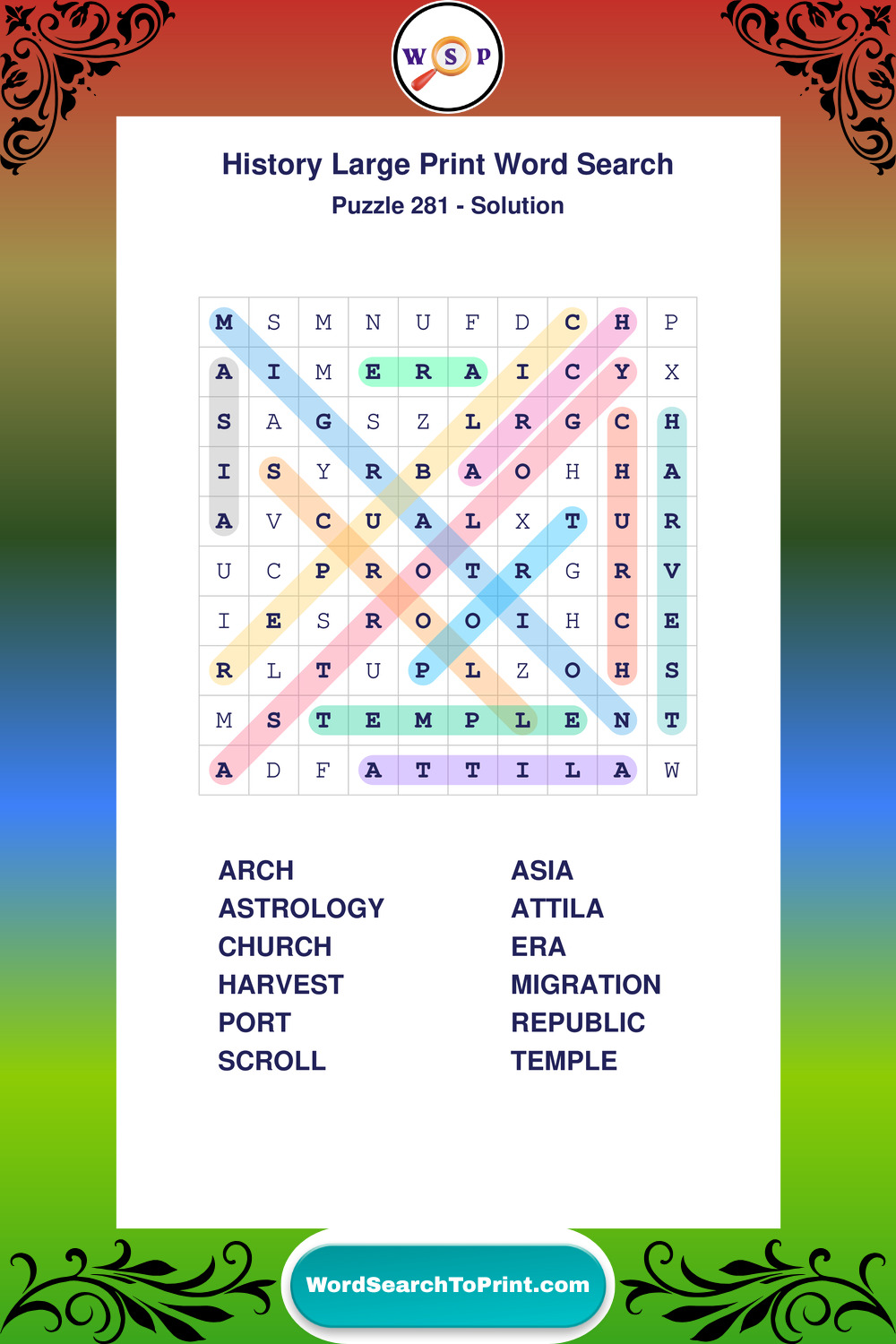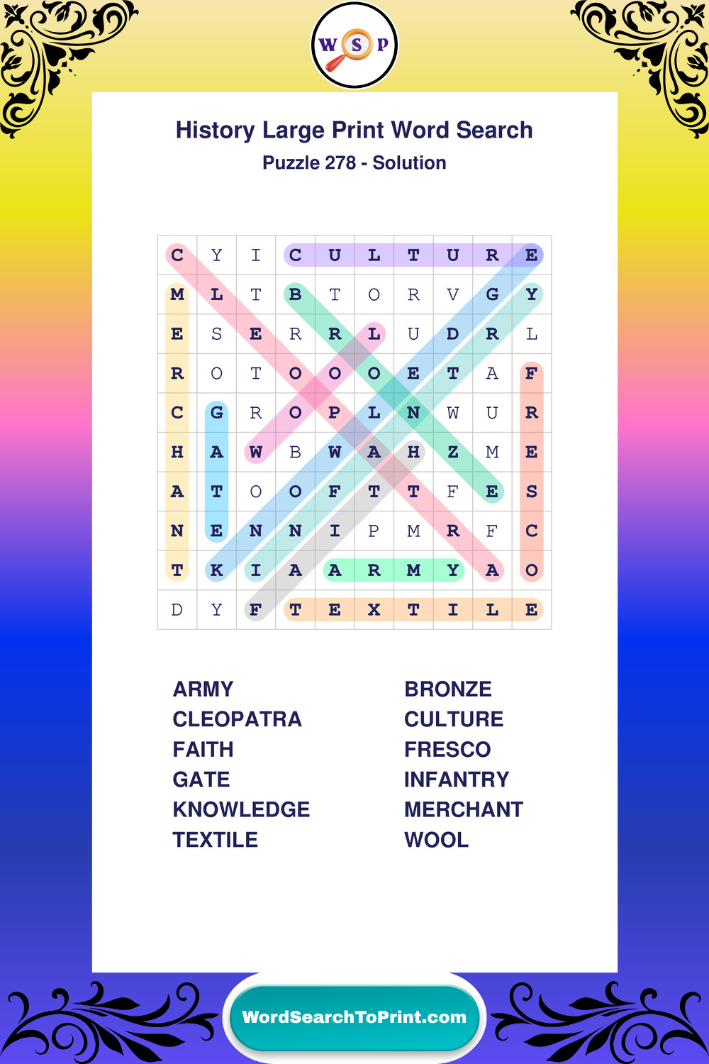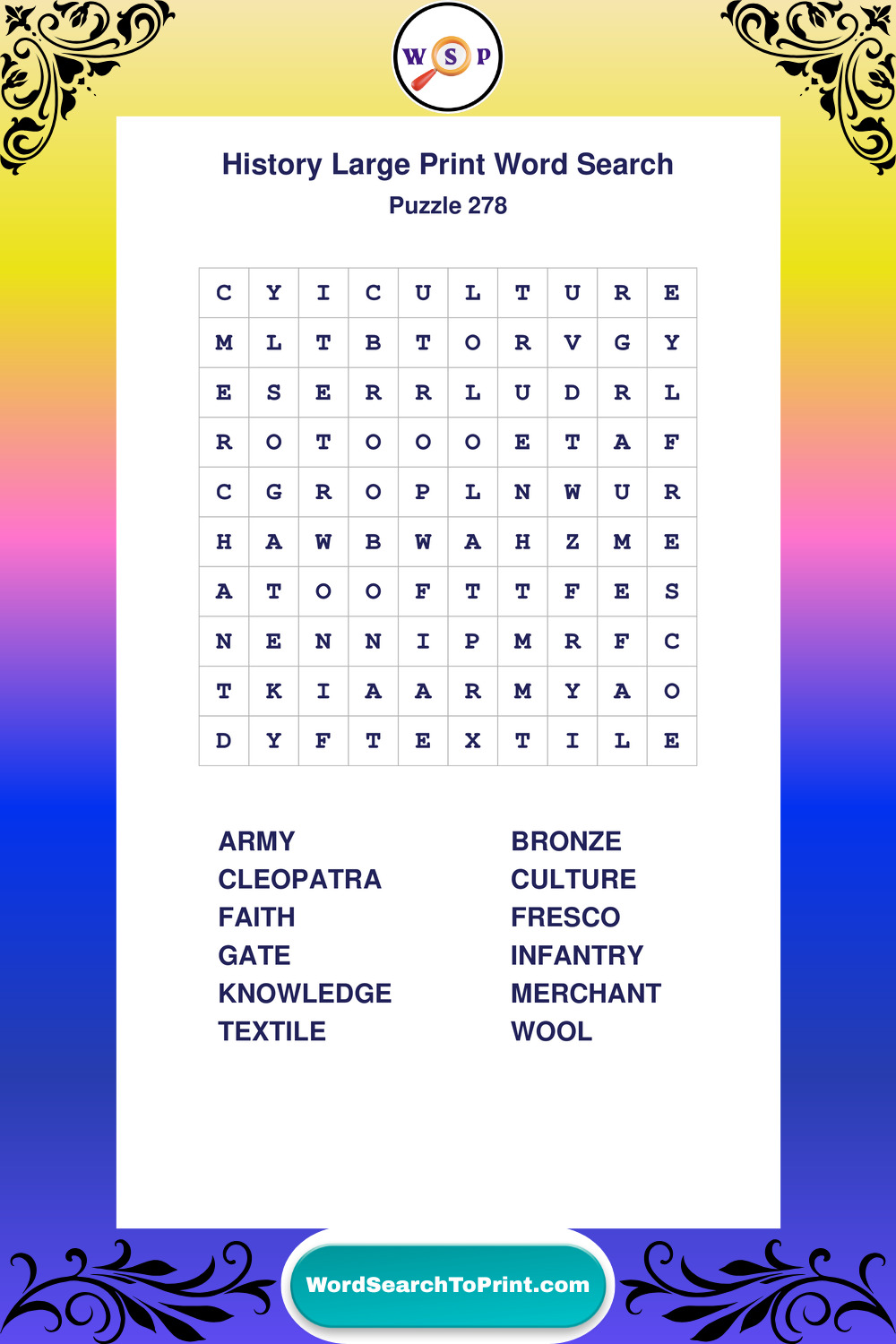 Free Large Print History Wordsearches