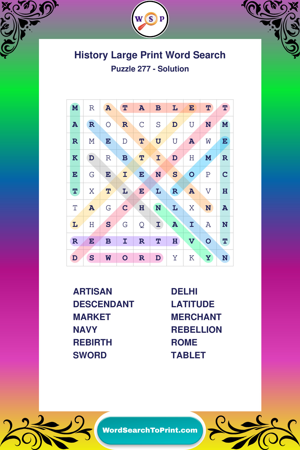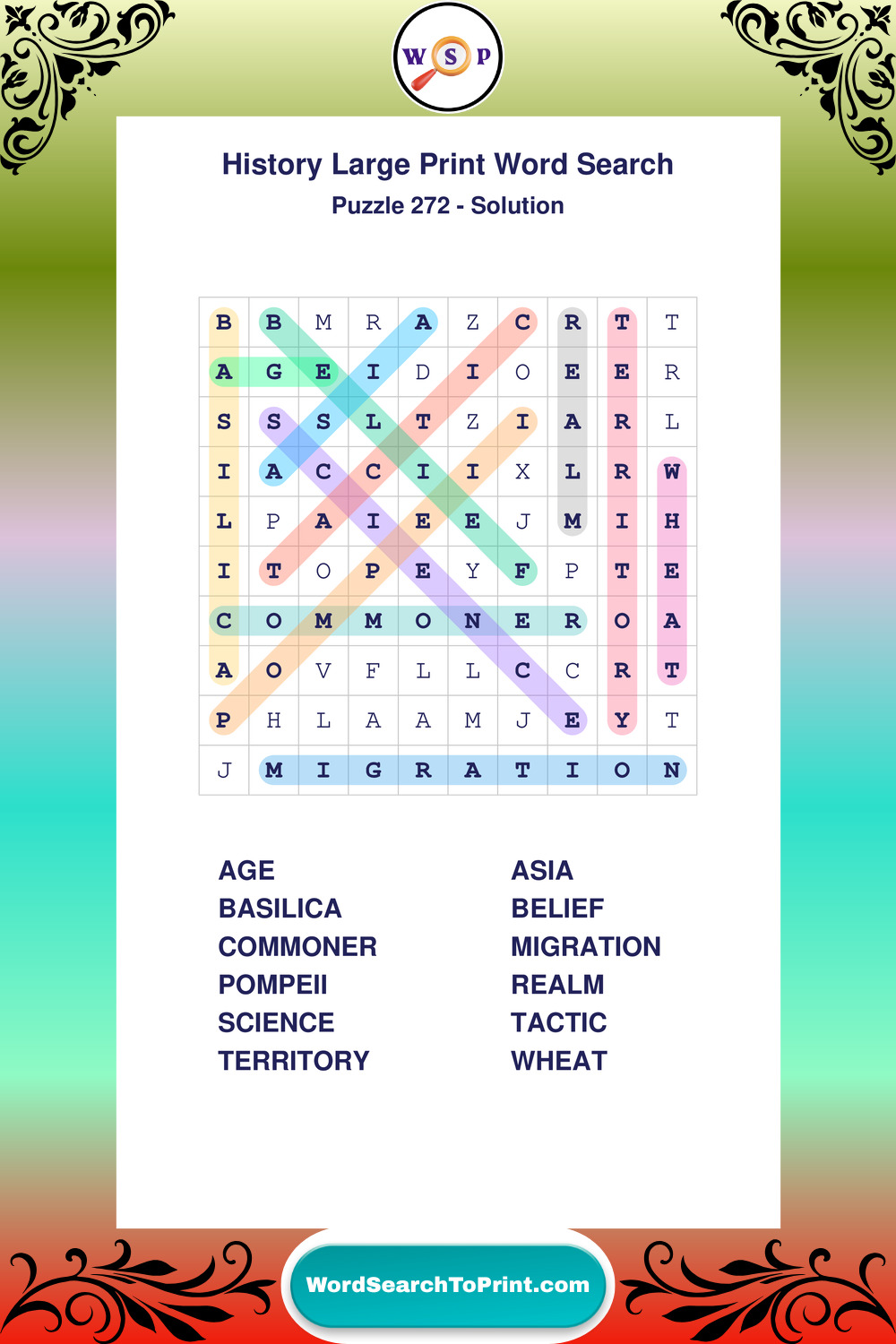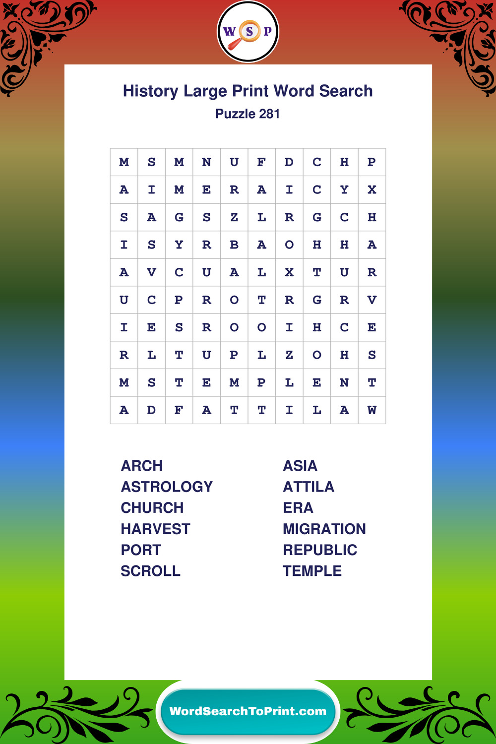 Free Large Print History Wordsearches
