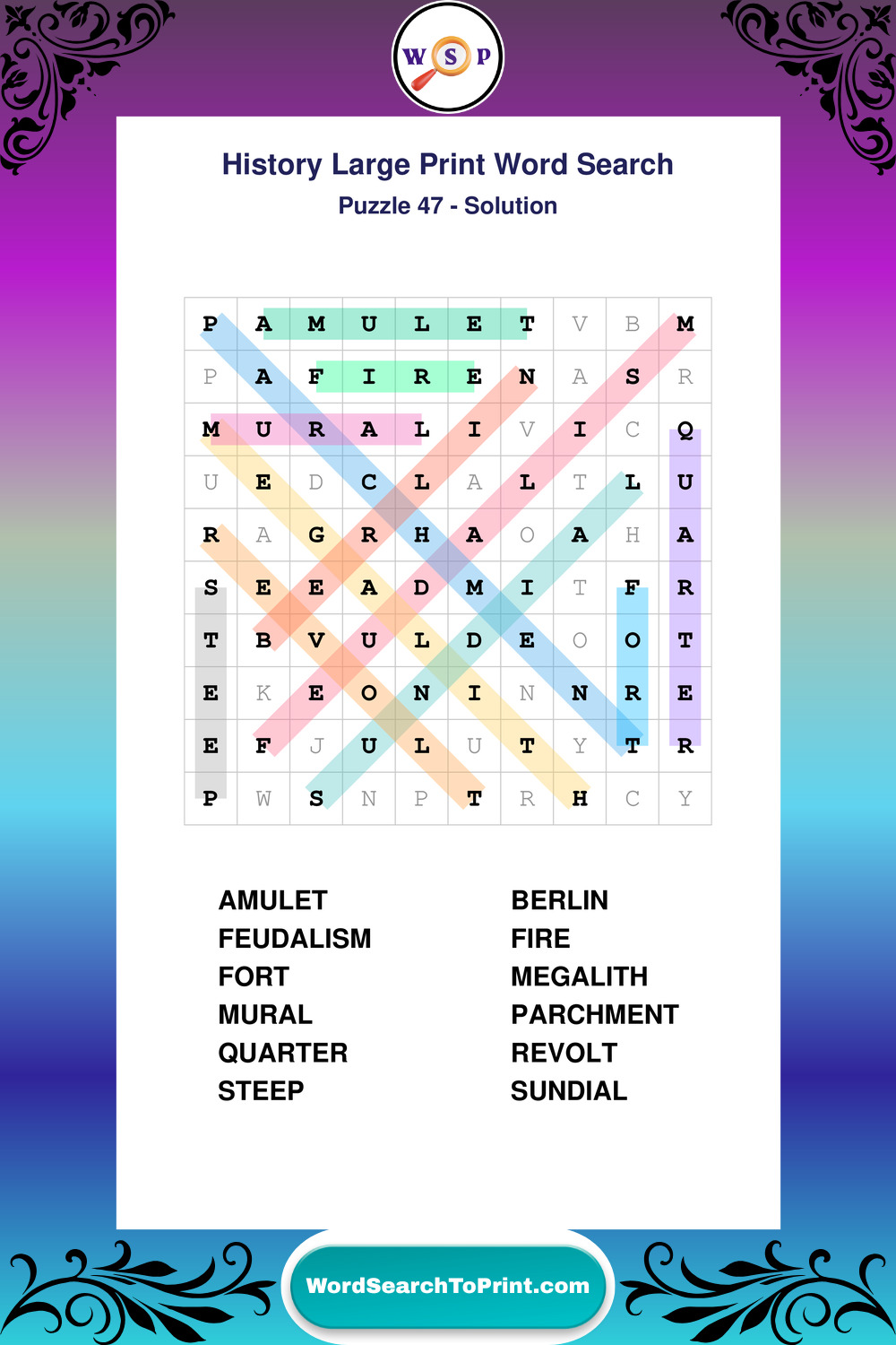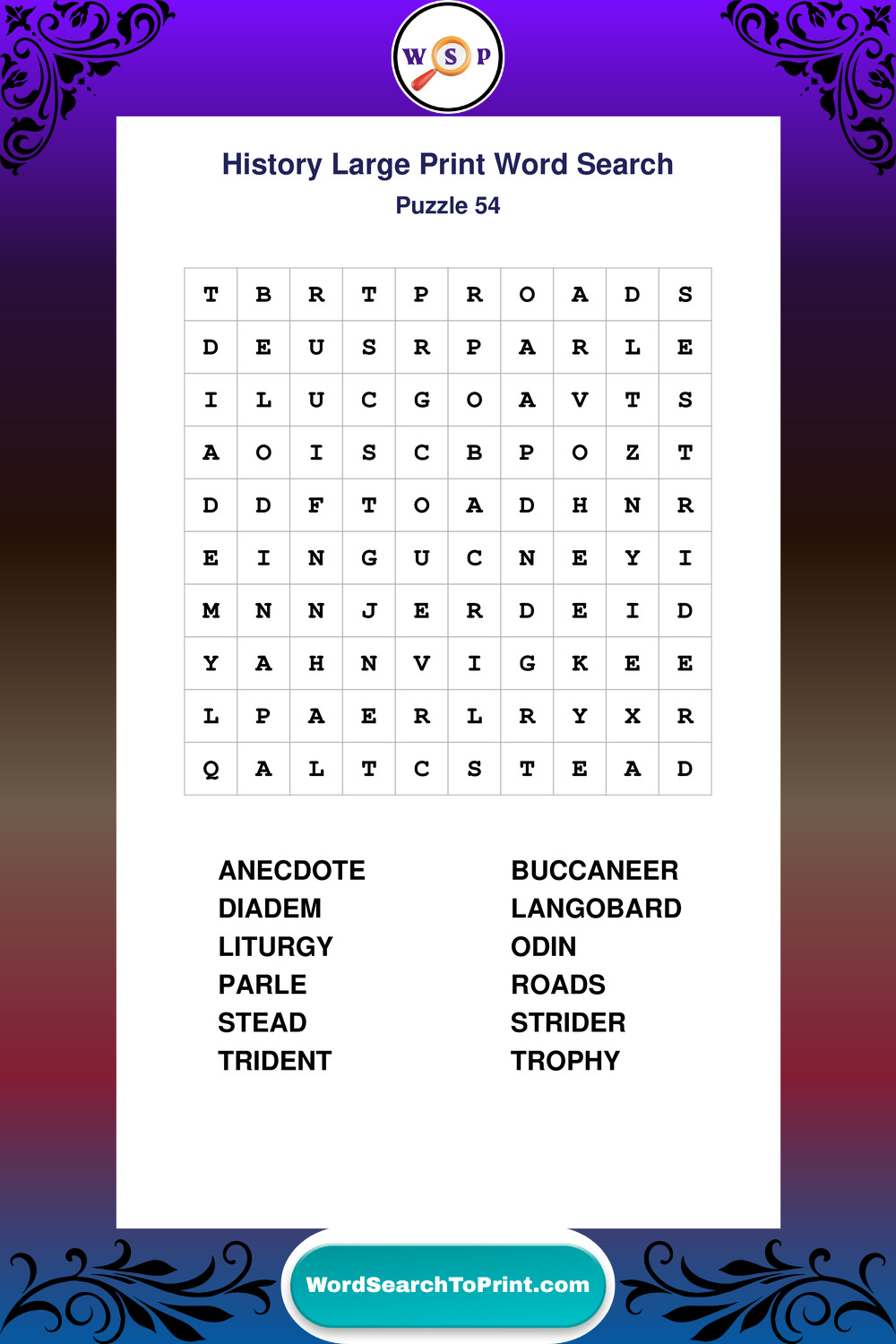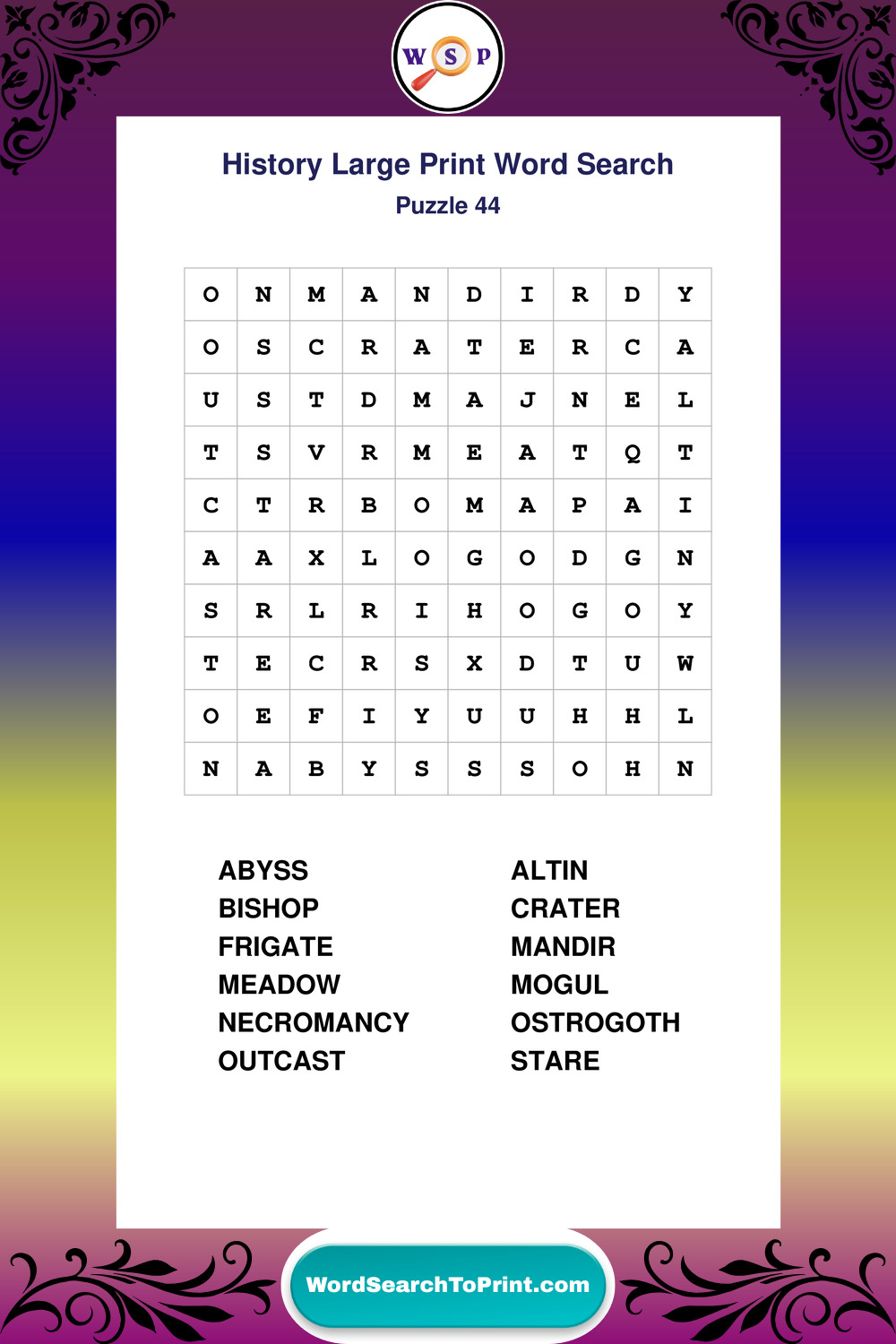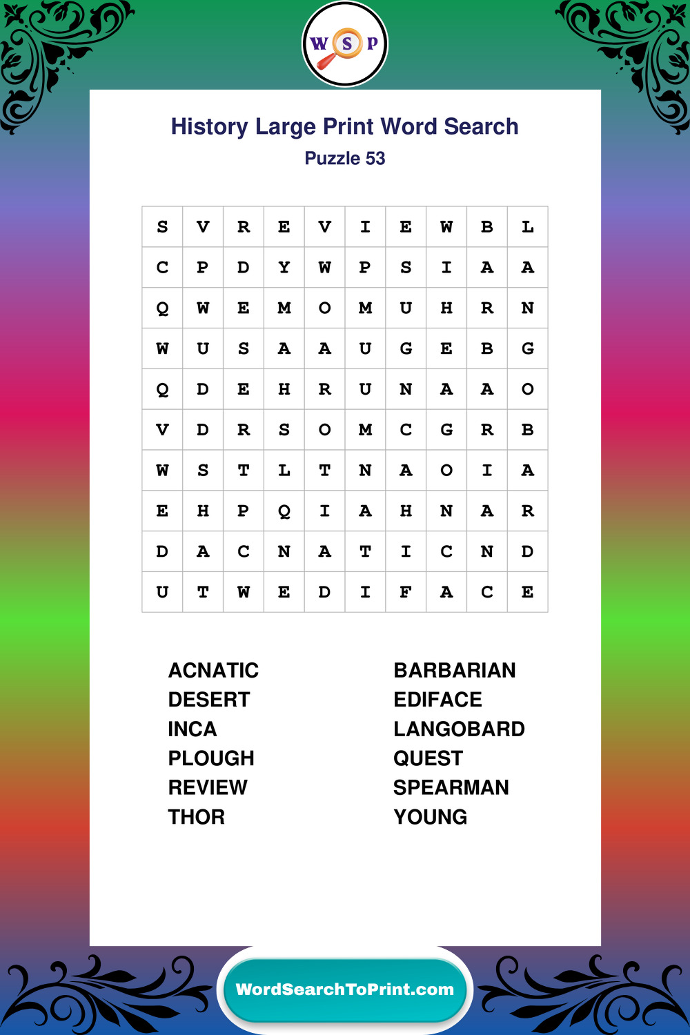 Dive into world History with clear, accessible Large Print History Wordsearches. A fun way to explore the past through relaxing, educational puzzles.