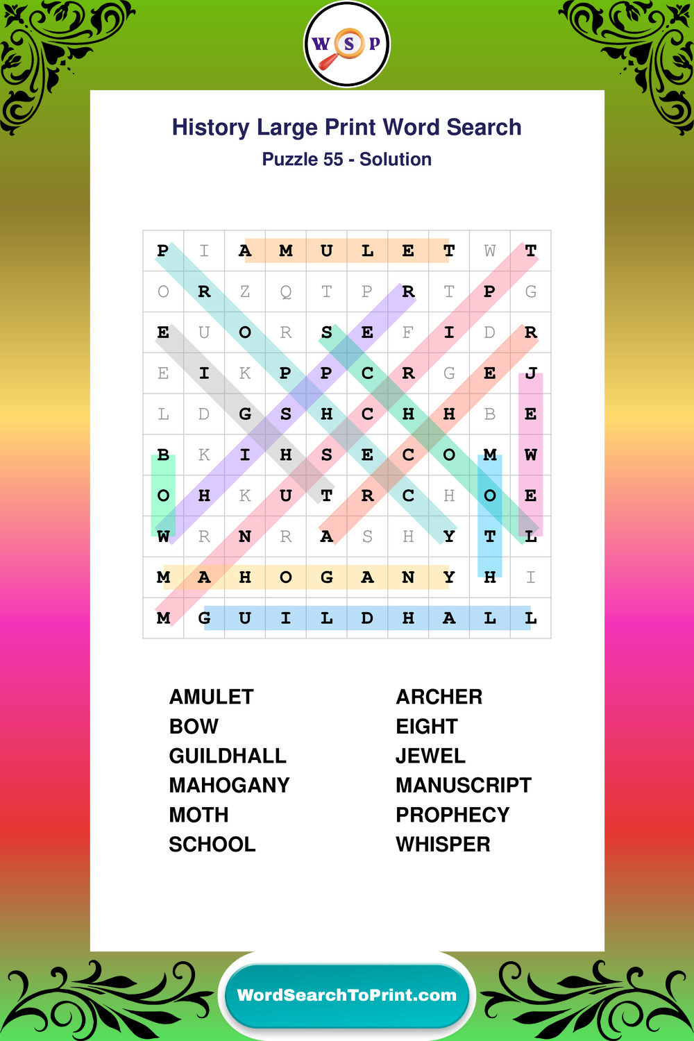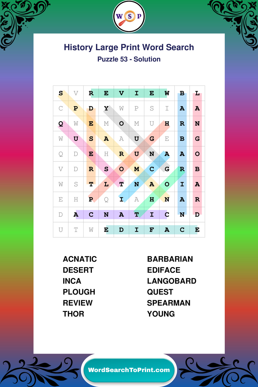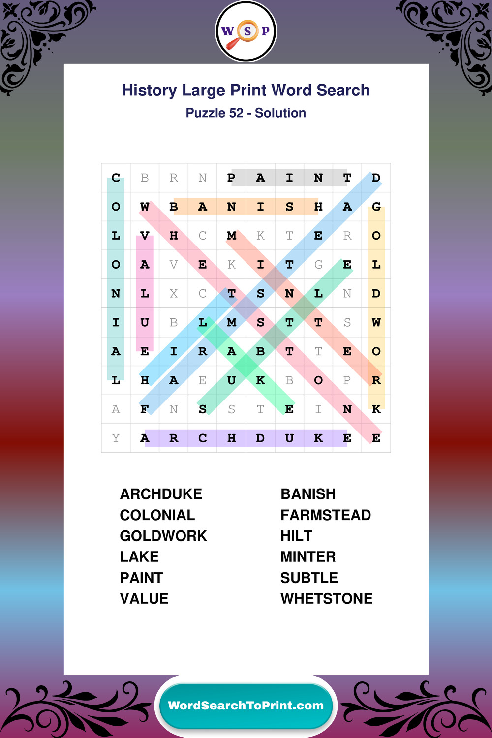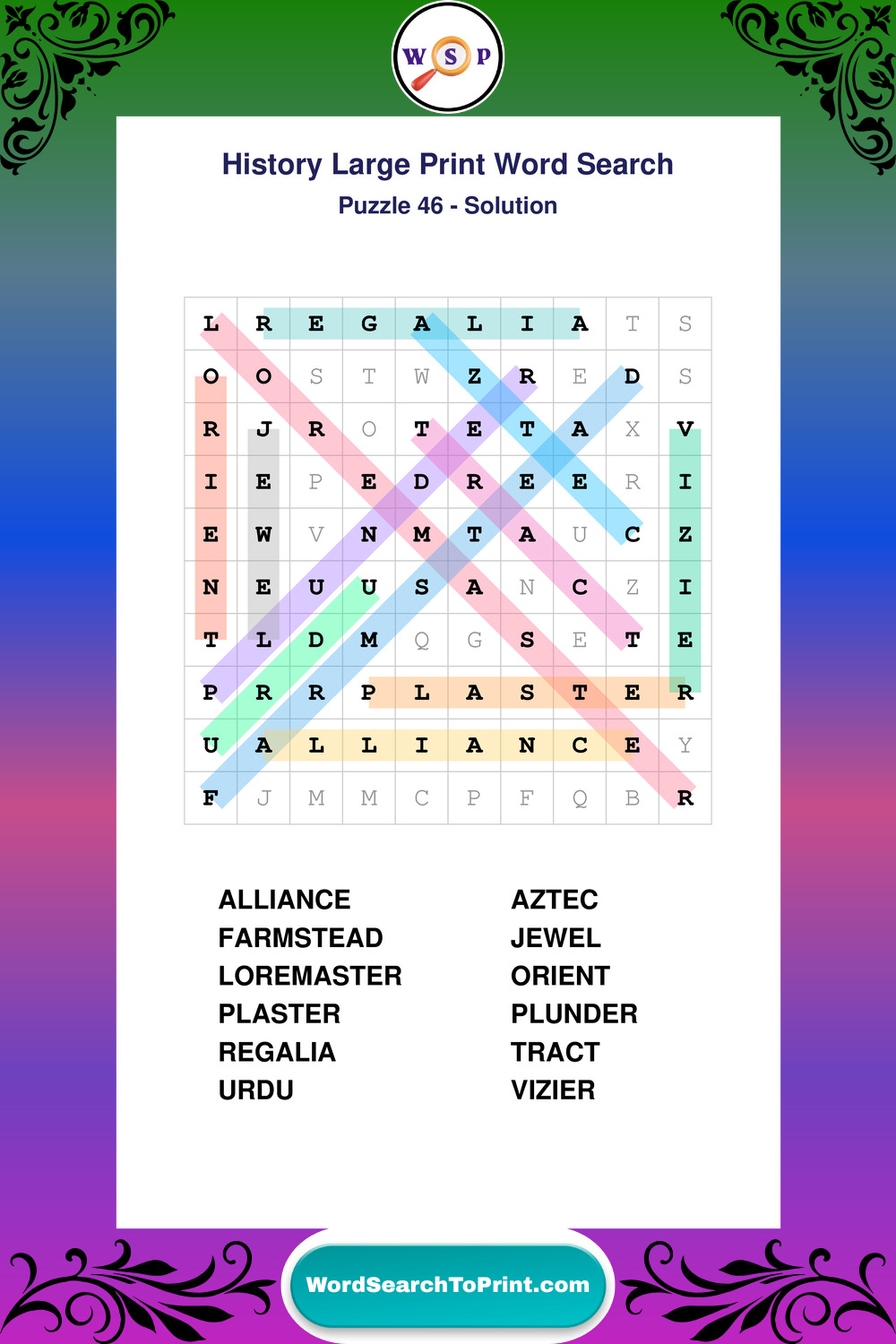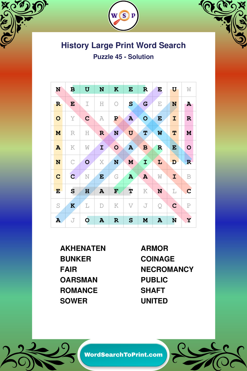Dive into world History with clear, accessible Large Print History Wordsearches. A fun way to explore the past through relaxing, educational puzzles.
