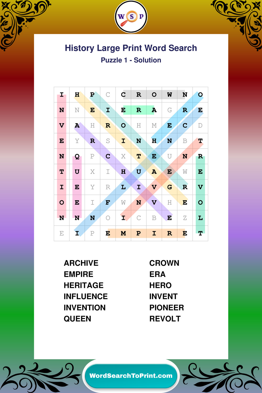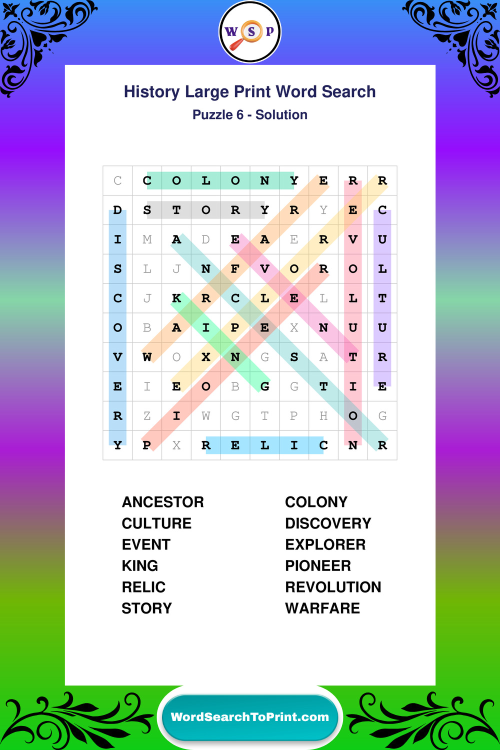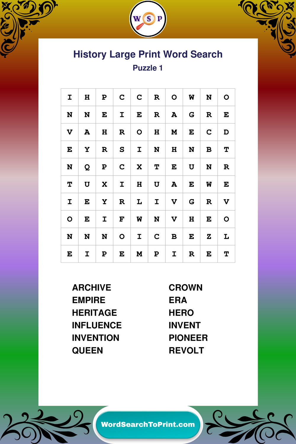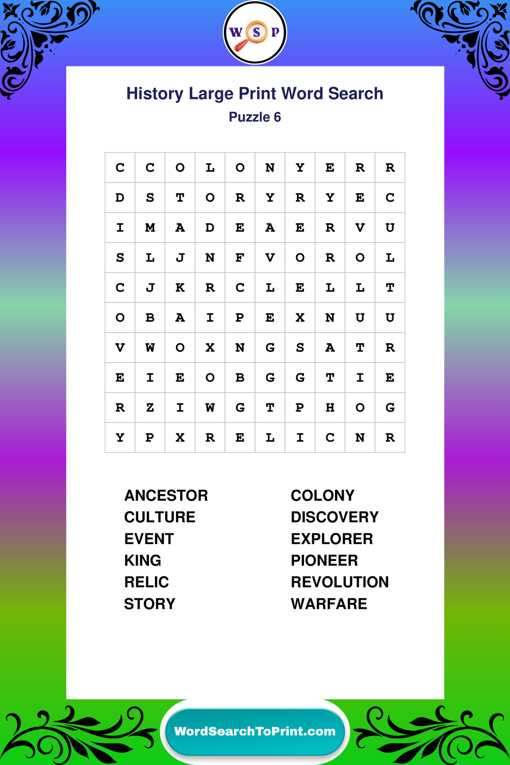 Free Large Print History Wordsearches