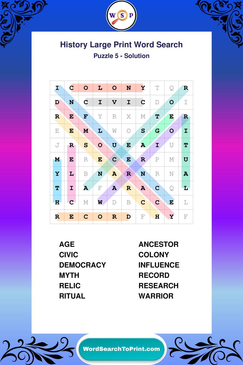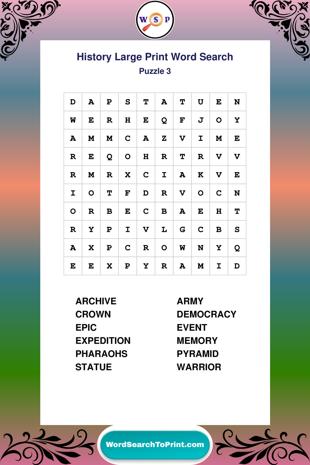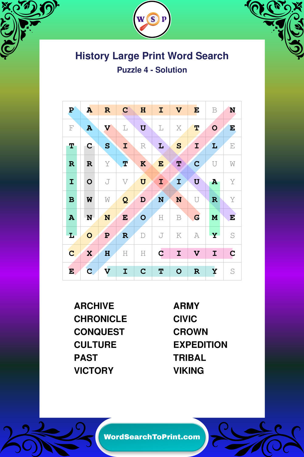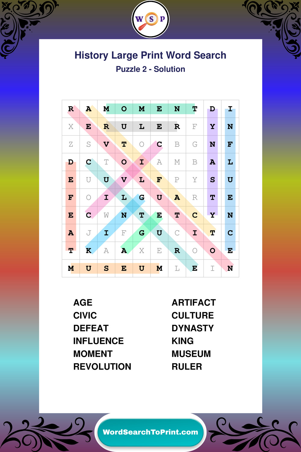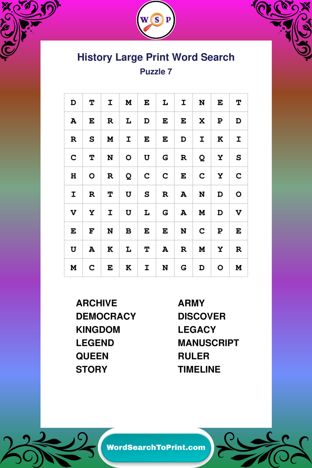 Free Large Print History Wordsearches