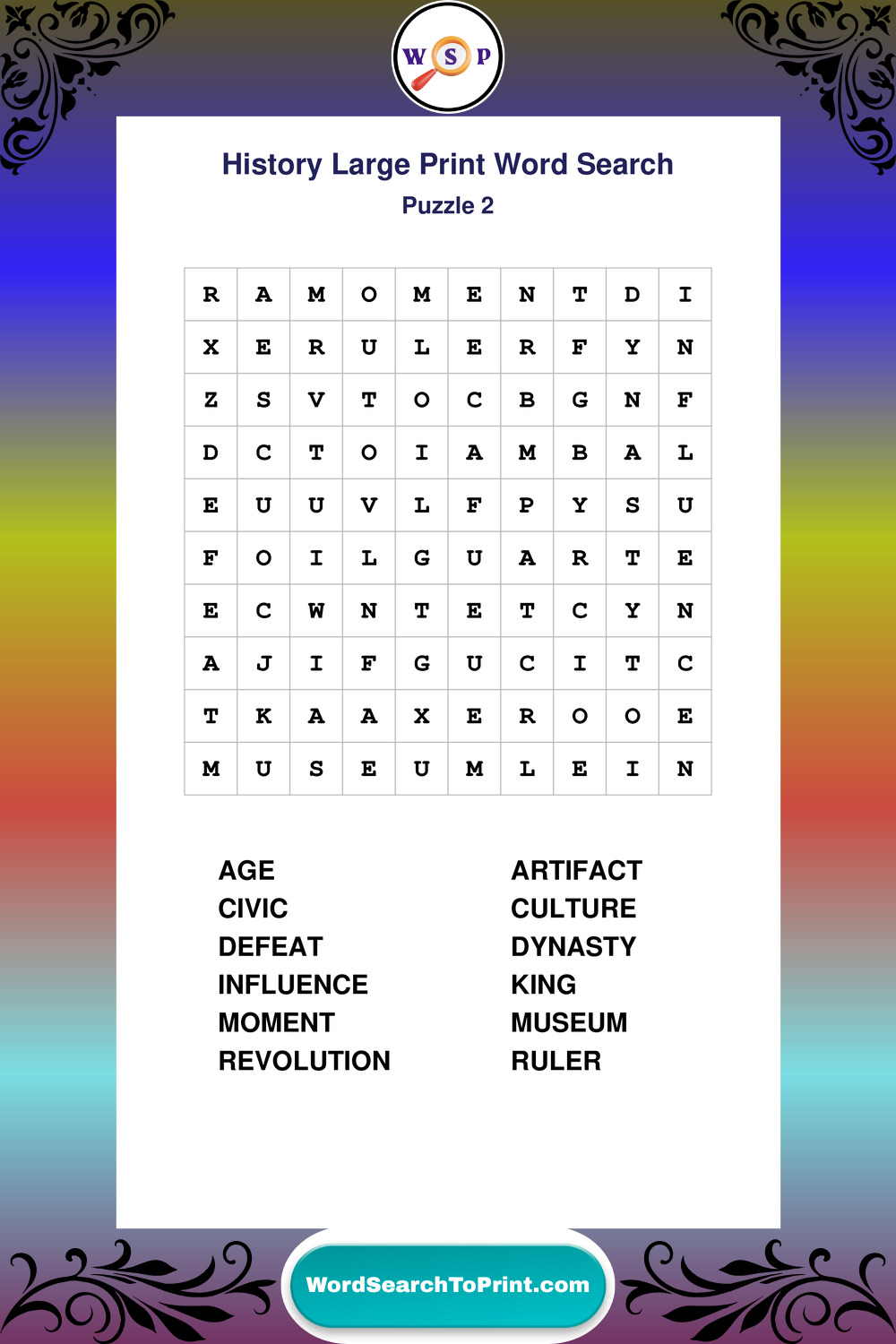 Dive into world History with clear, accessible Large Print History Wordsearches. A fun way to explore the past through relaxing, educational puzzles.