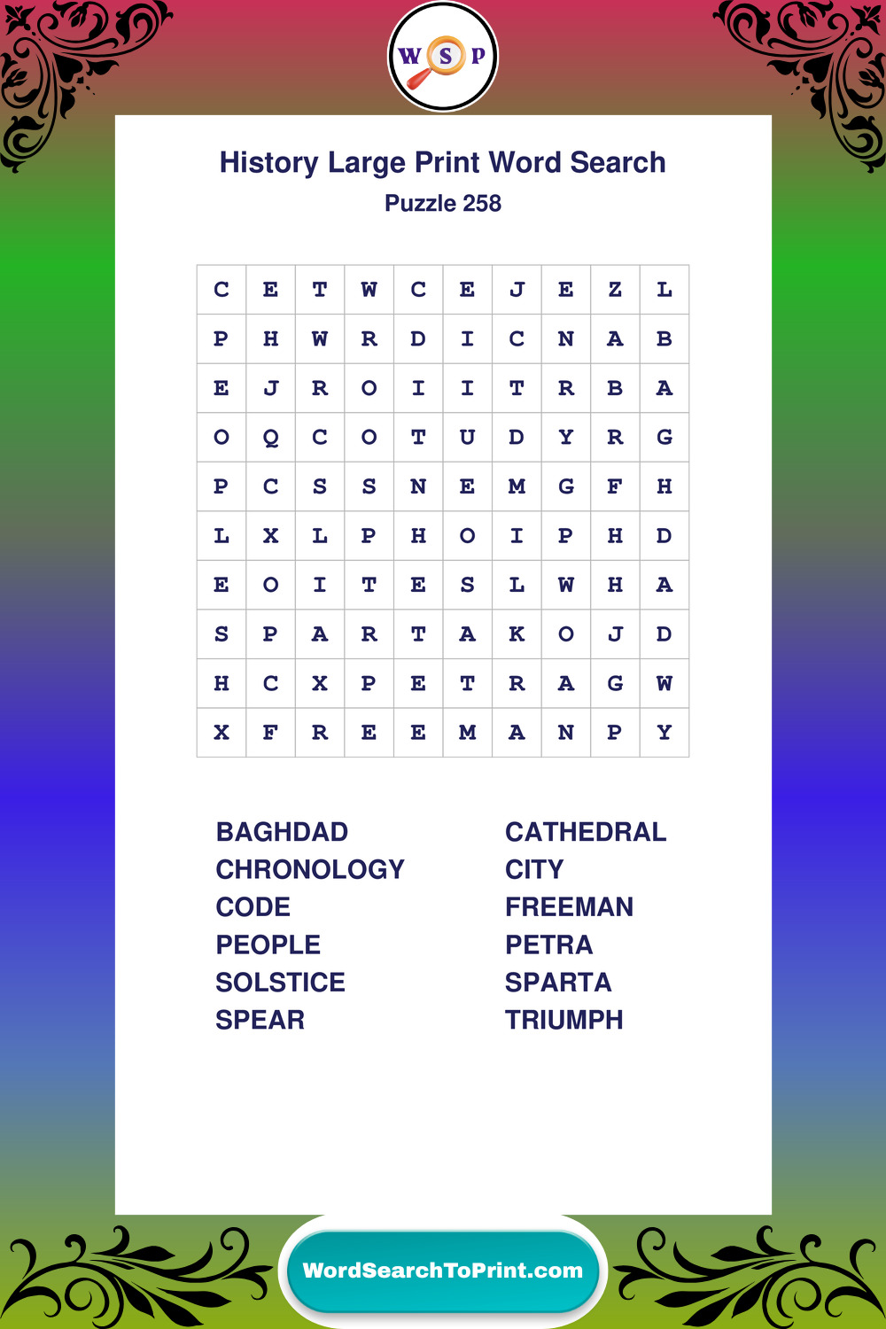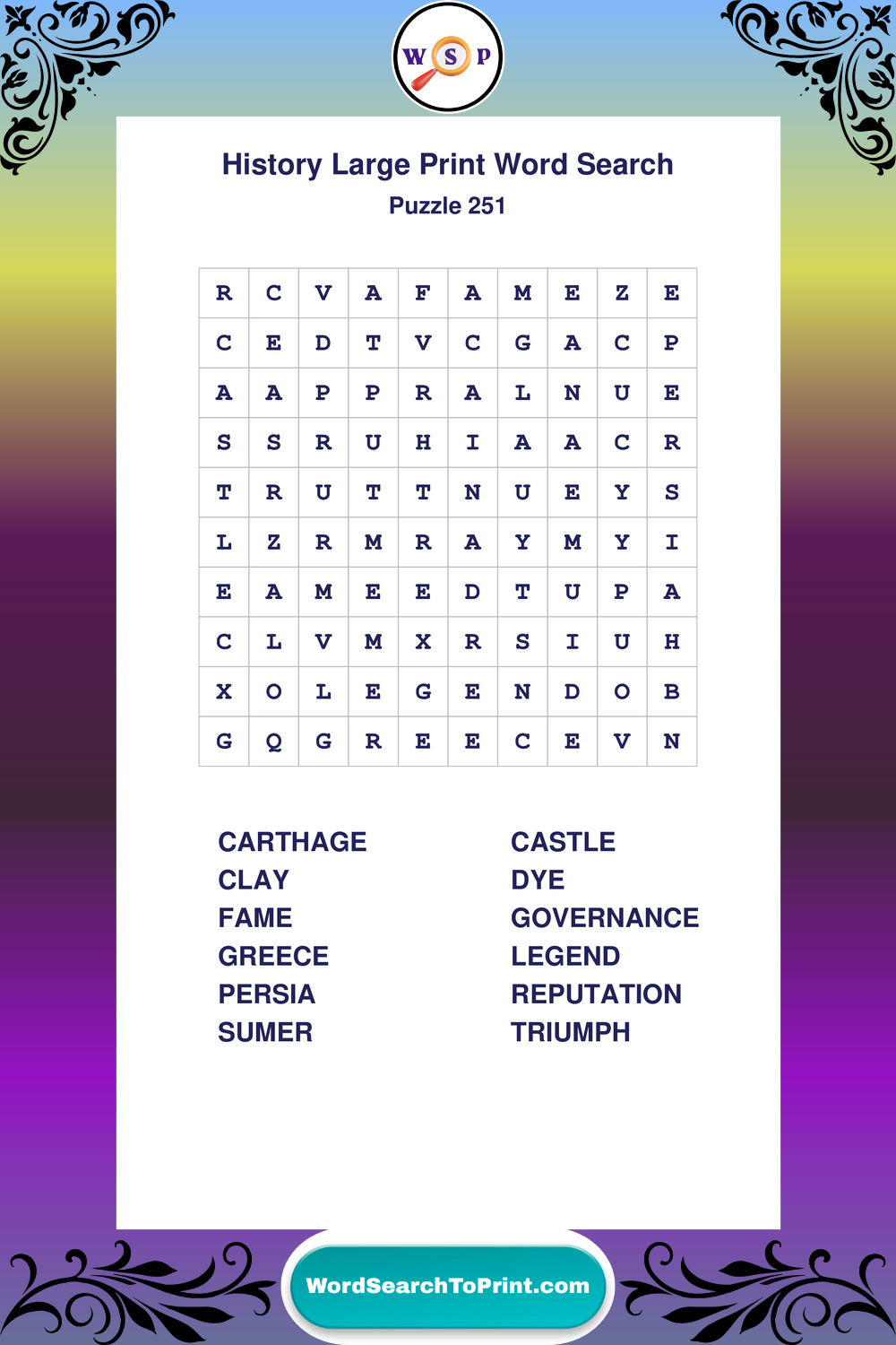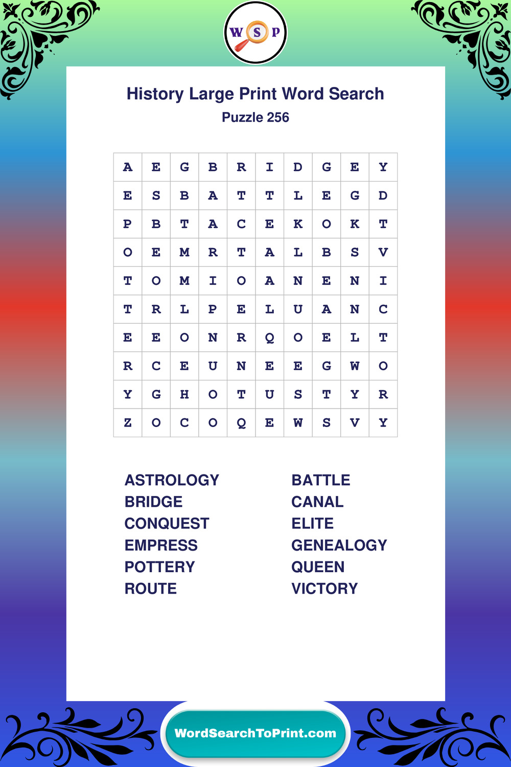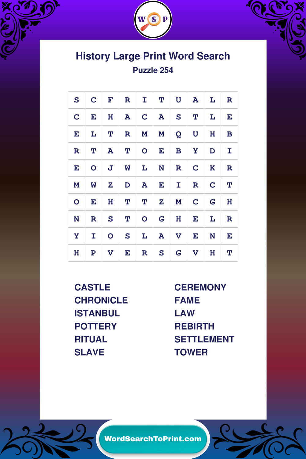 Dive into world History with clear, accessible Large Print History Wordsearches. A fun way to explore the past through relaxing, educational puzzles.