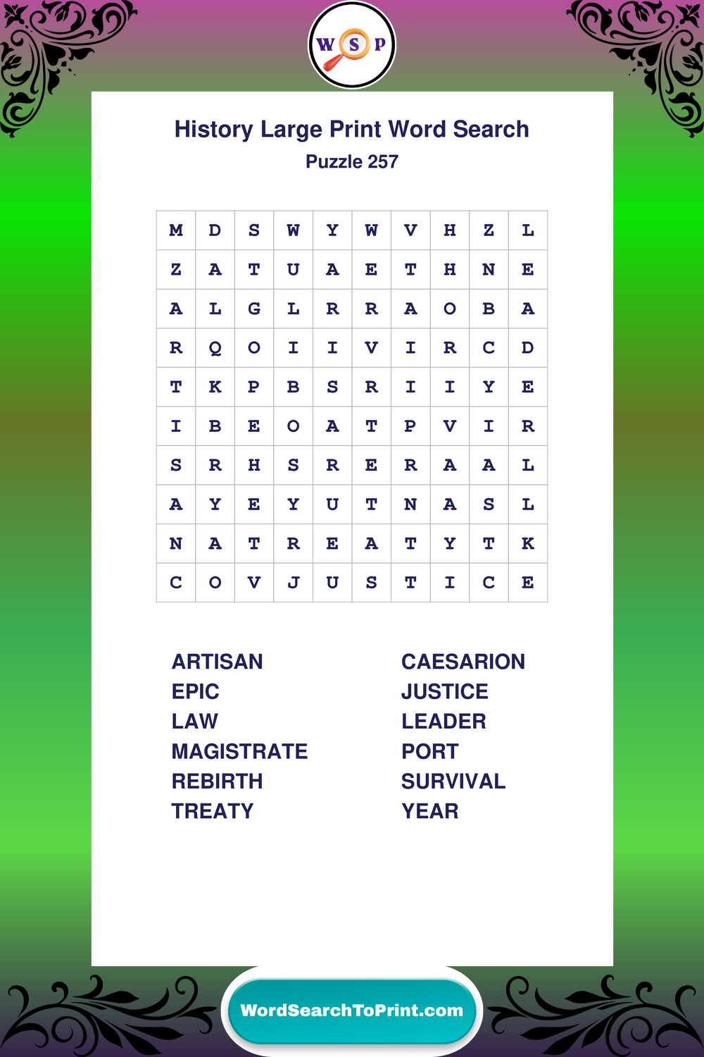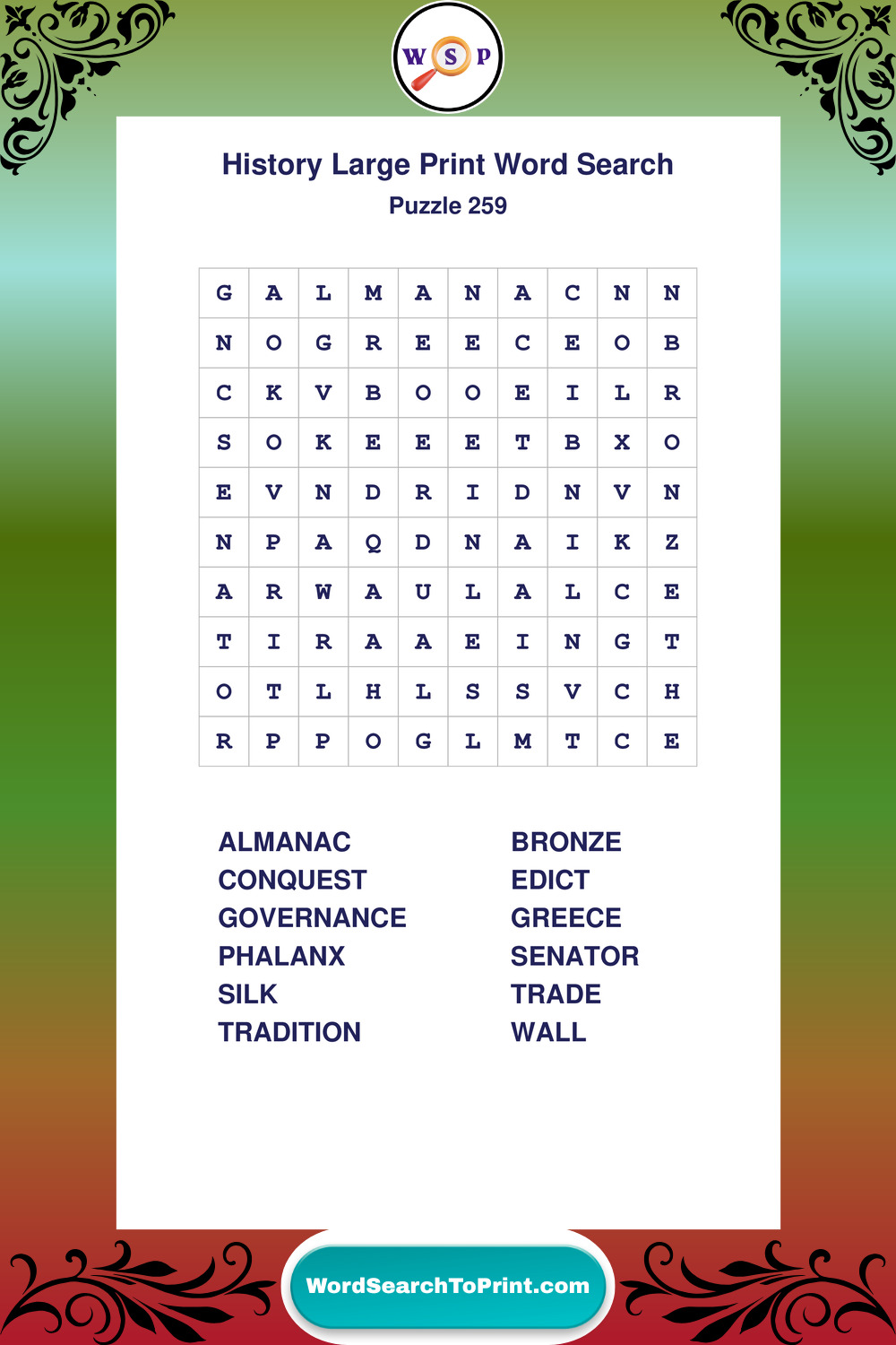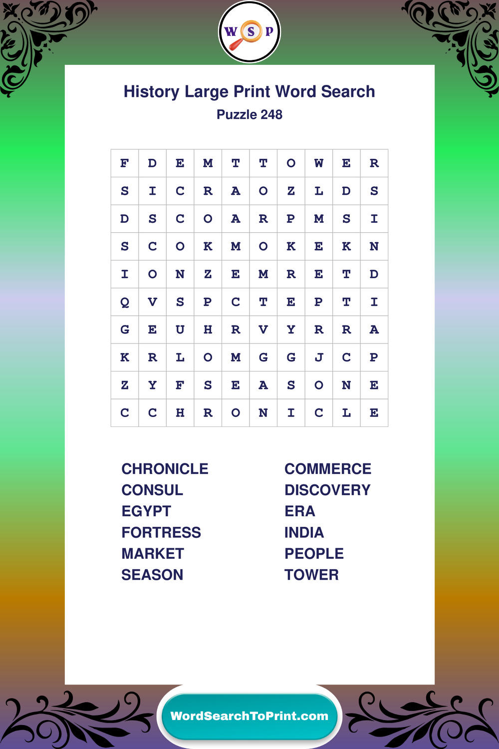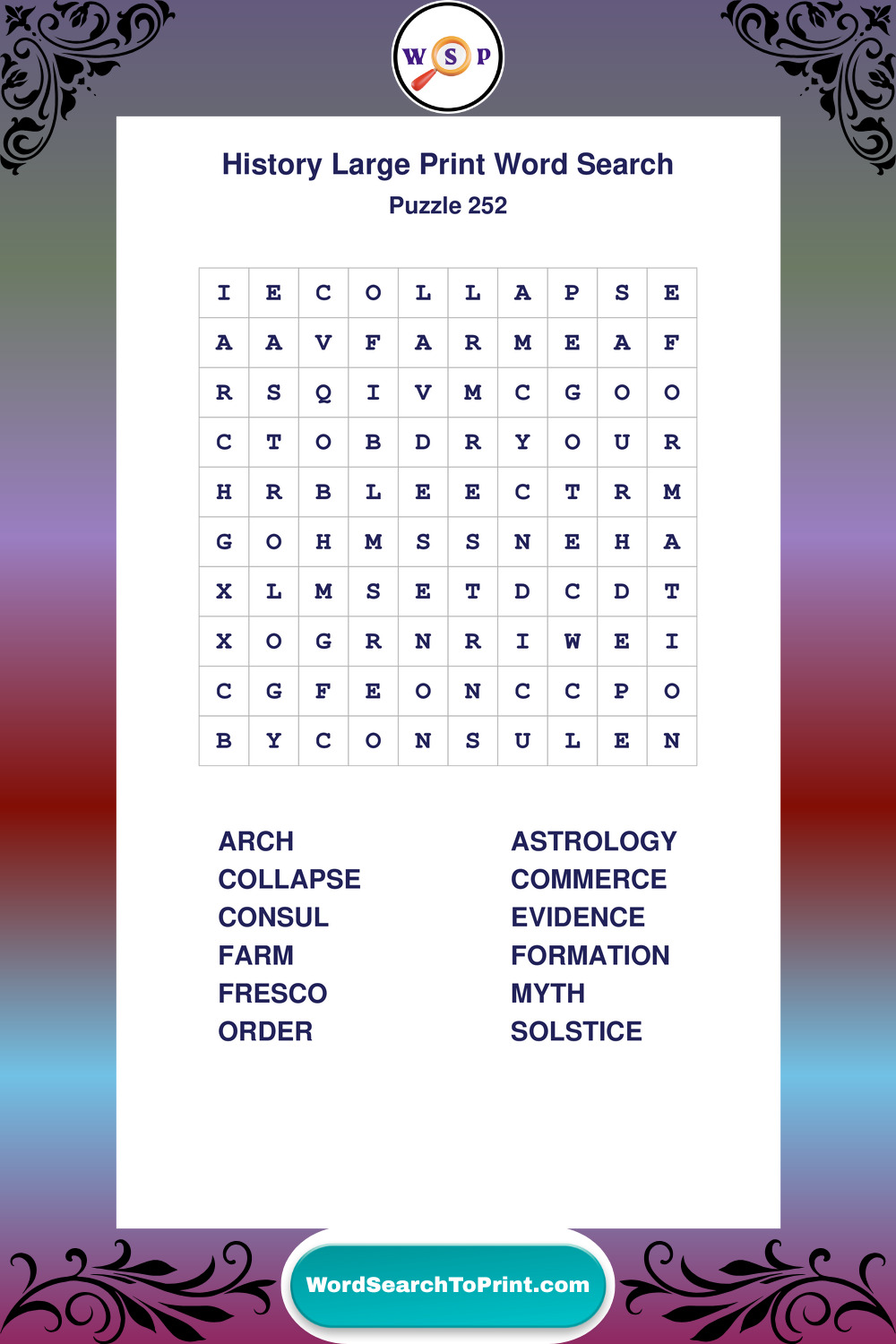 Dive into world History with clear, accessible Large Print History Wordsearches. A fun way to explore the past through relaxing, educational puzzles.