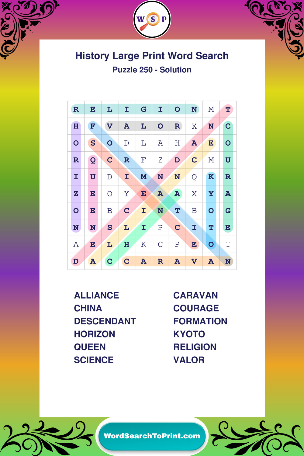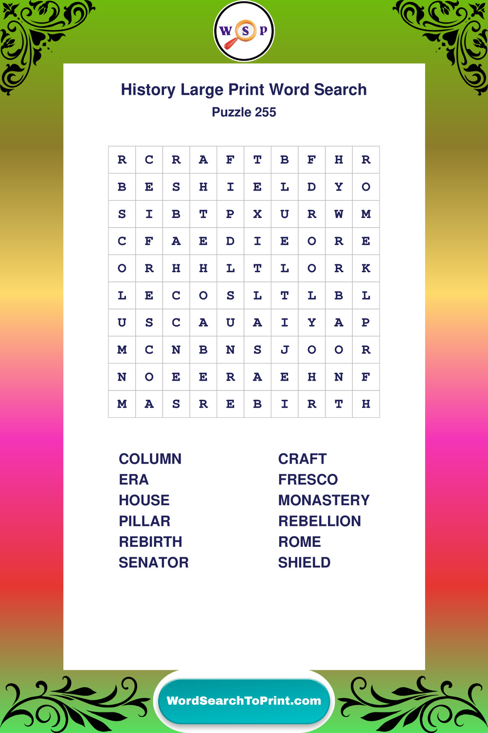 Free Large Print History Wordsearches