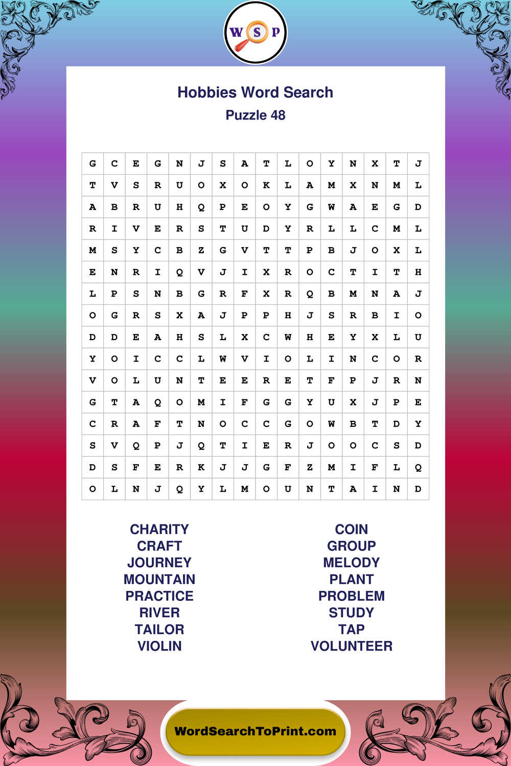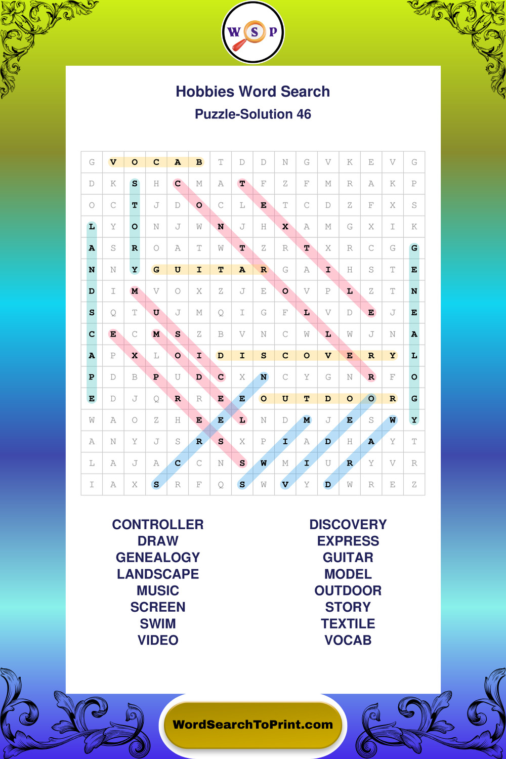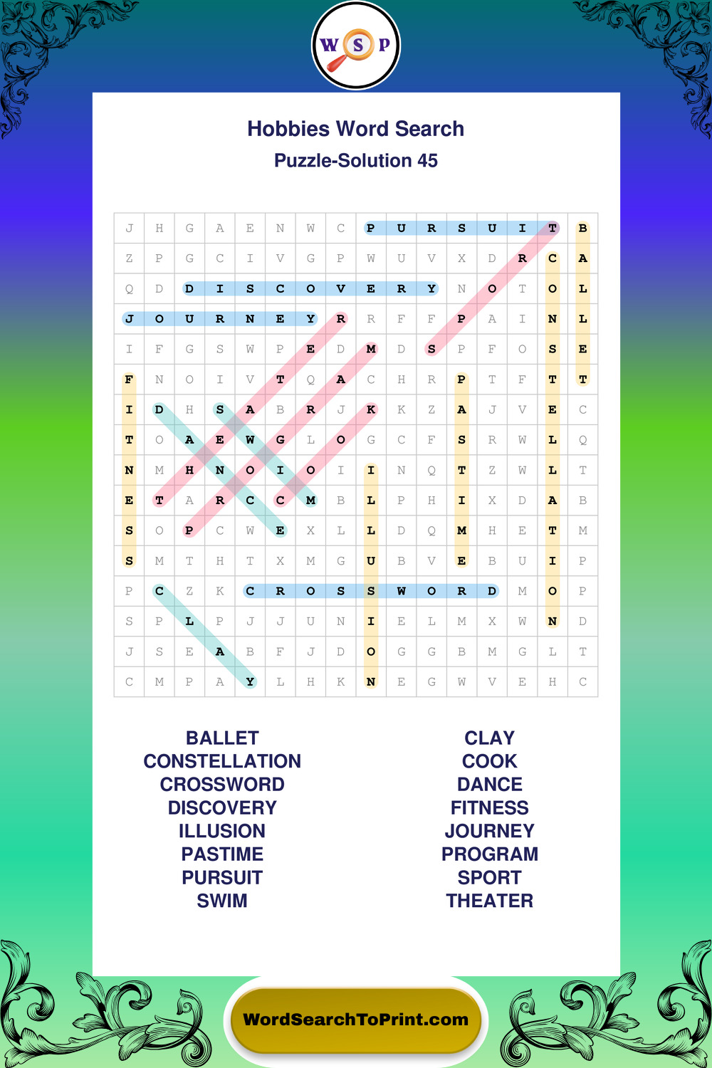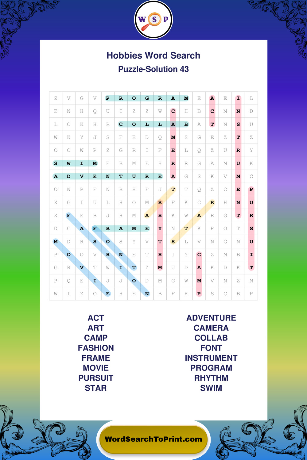 Printable Hobbies Wordsearch Puzzles