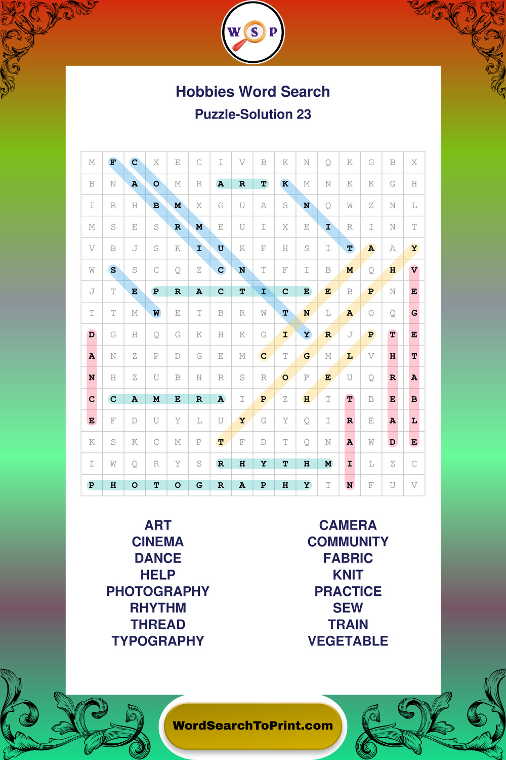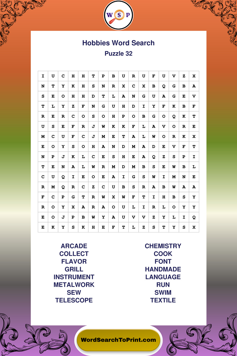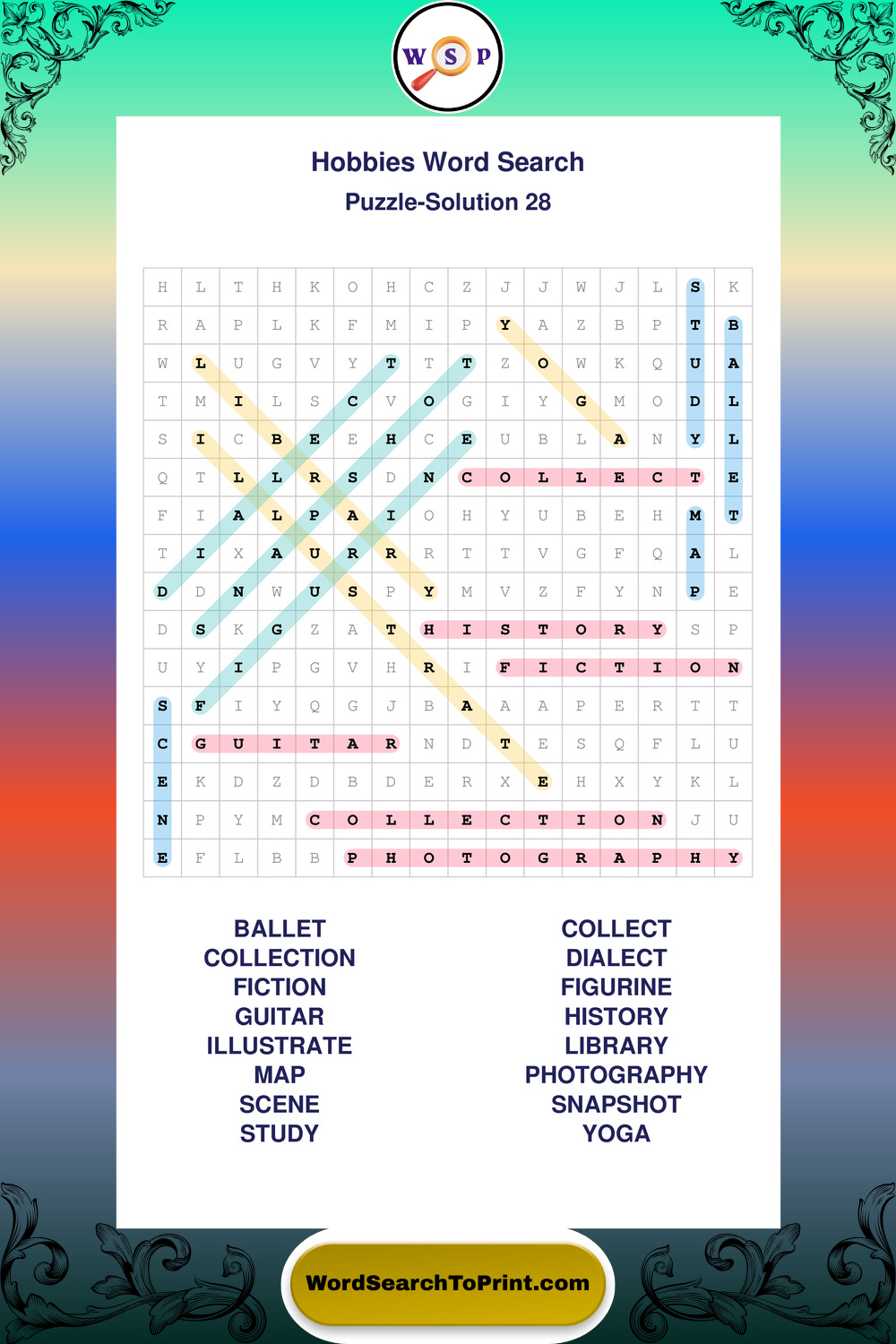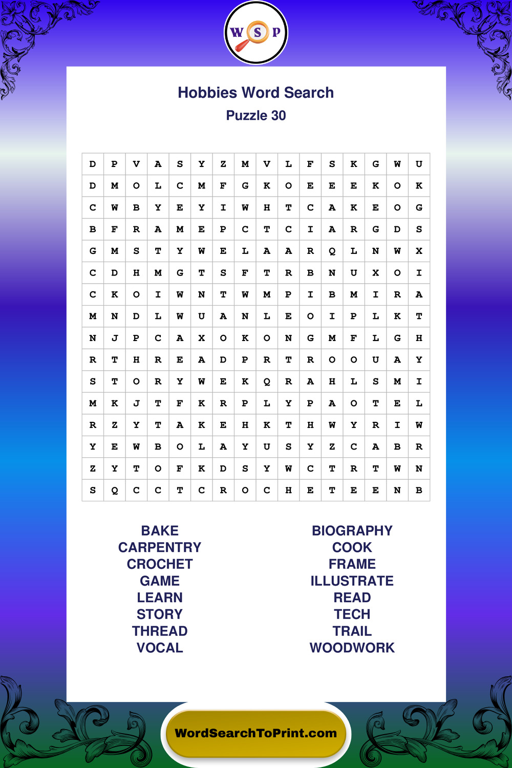 Printable Hobbies Wordsearch Puzzles