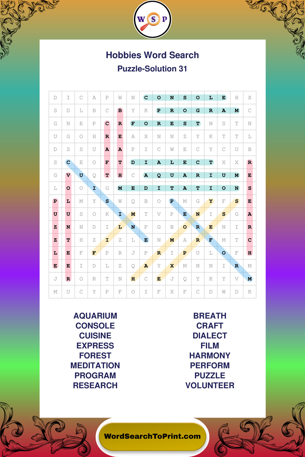 Who Are These Hobbies Word Search Puzzles For?