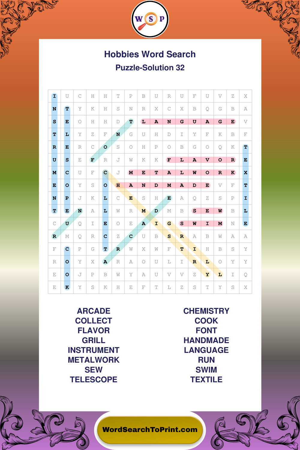Hobbies Wordsearches