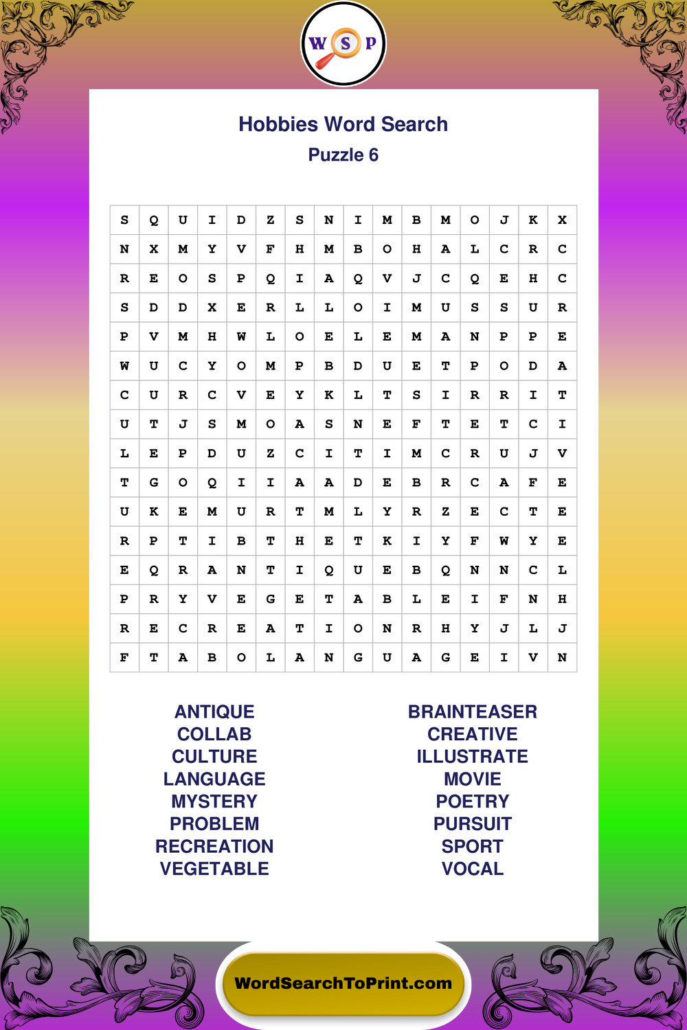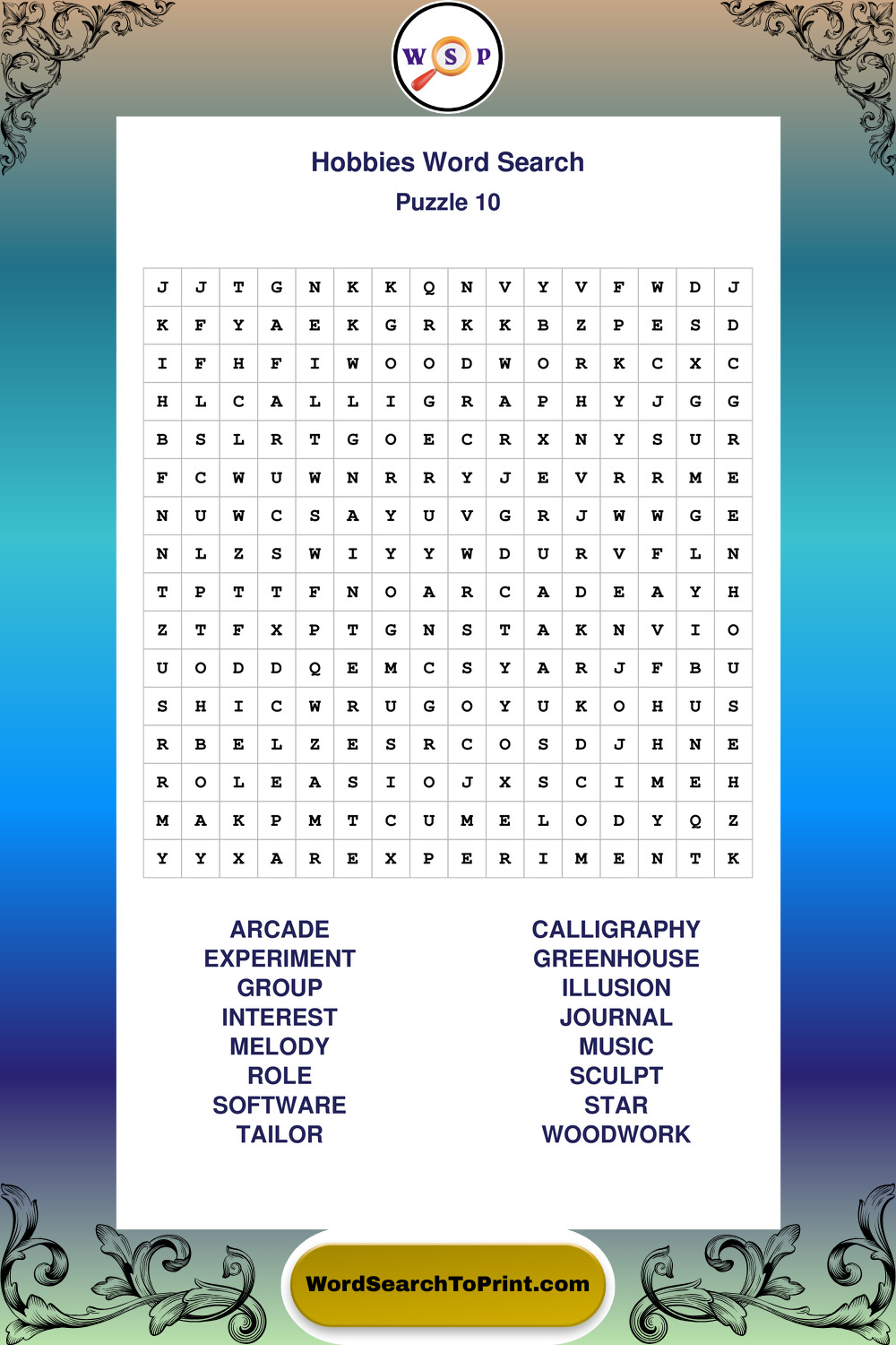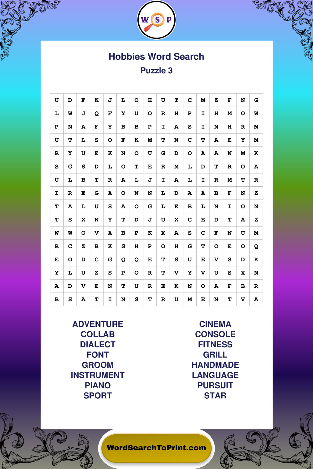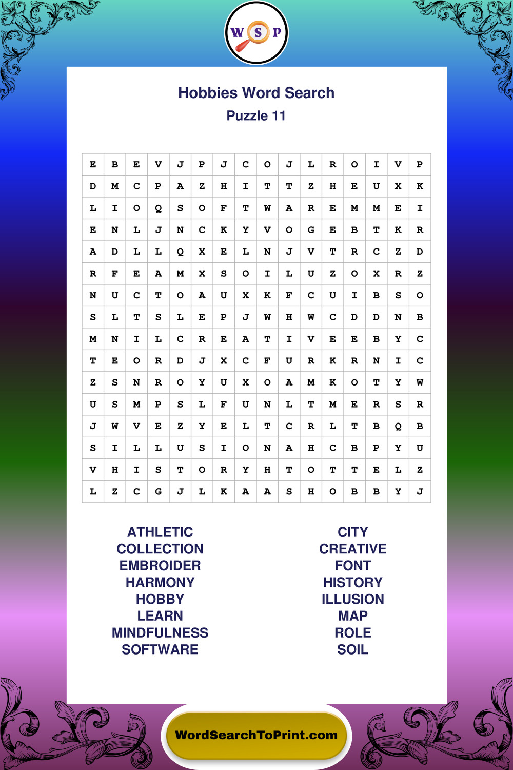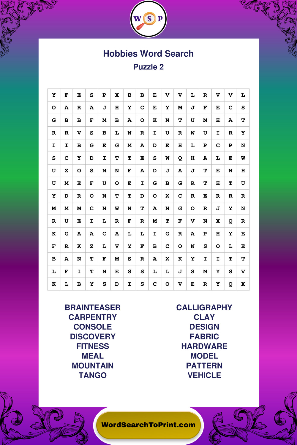 Enjoy a full set of large print Hobbies wordsearches perfect for quiet moments, daily routines, or casual brain exercise.