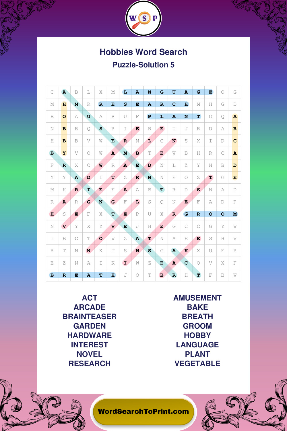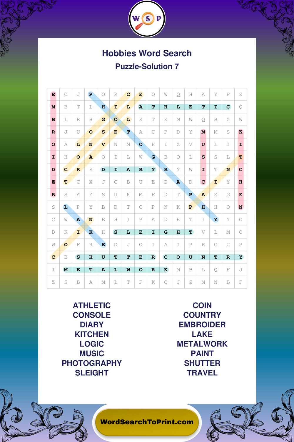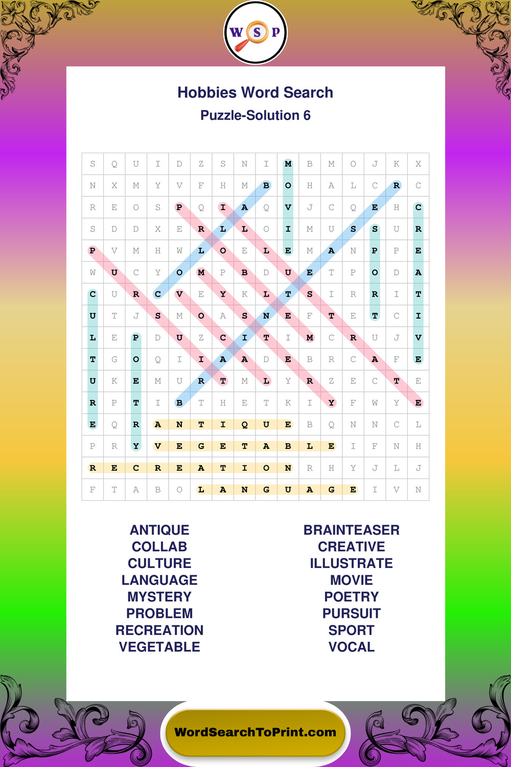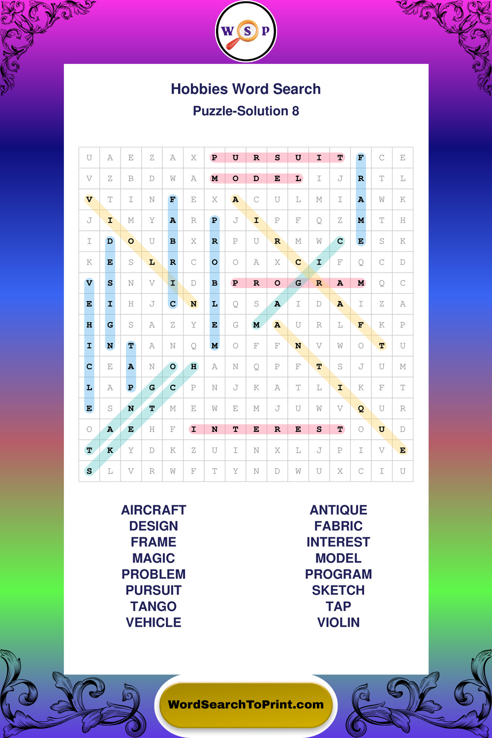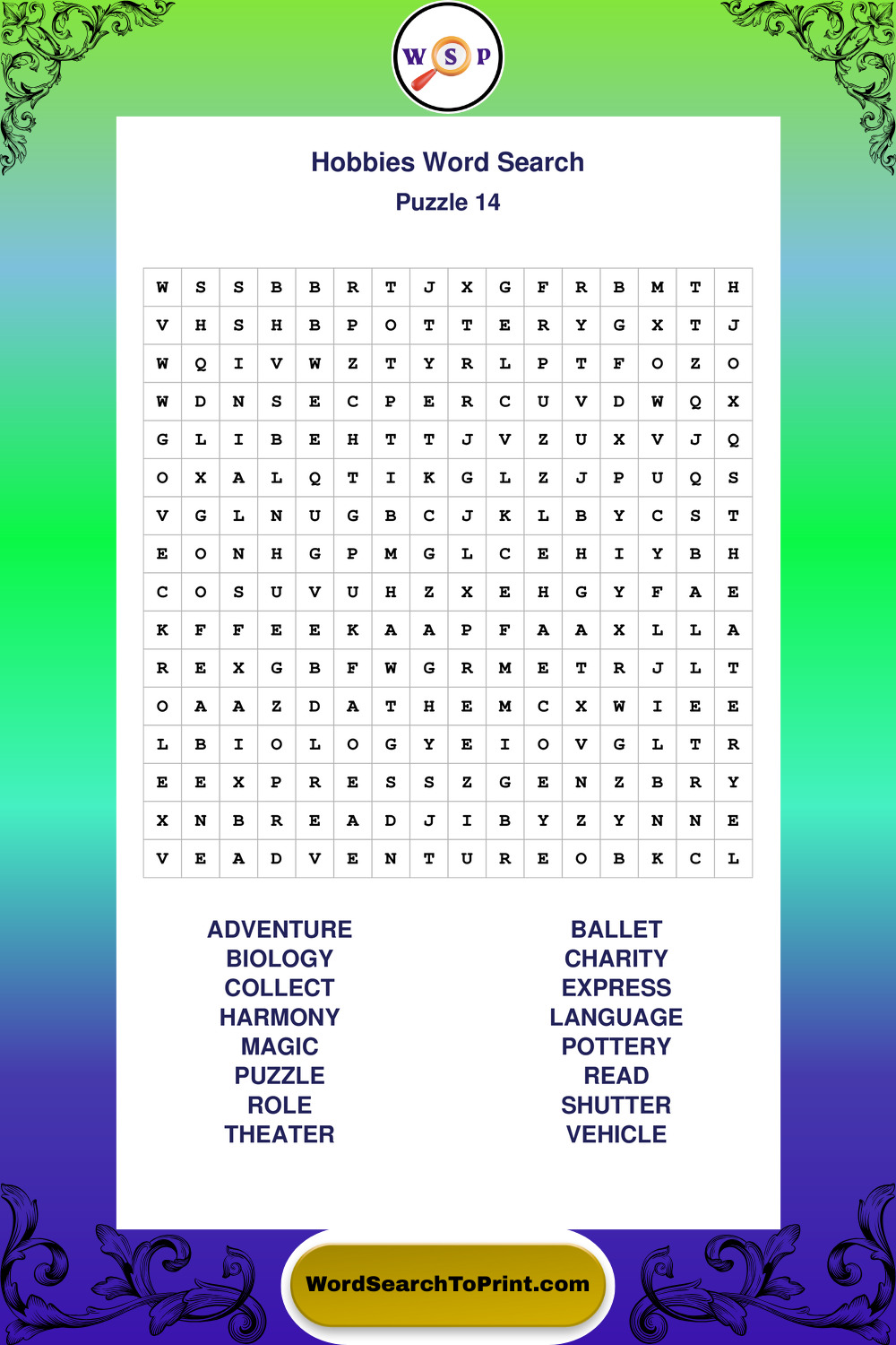 Enjoy a full set of large print Hobbies wordsearches perfect for quiet moments, daily routines, or casual brain exercise.