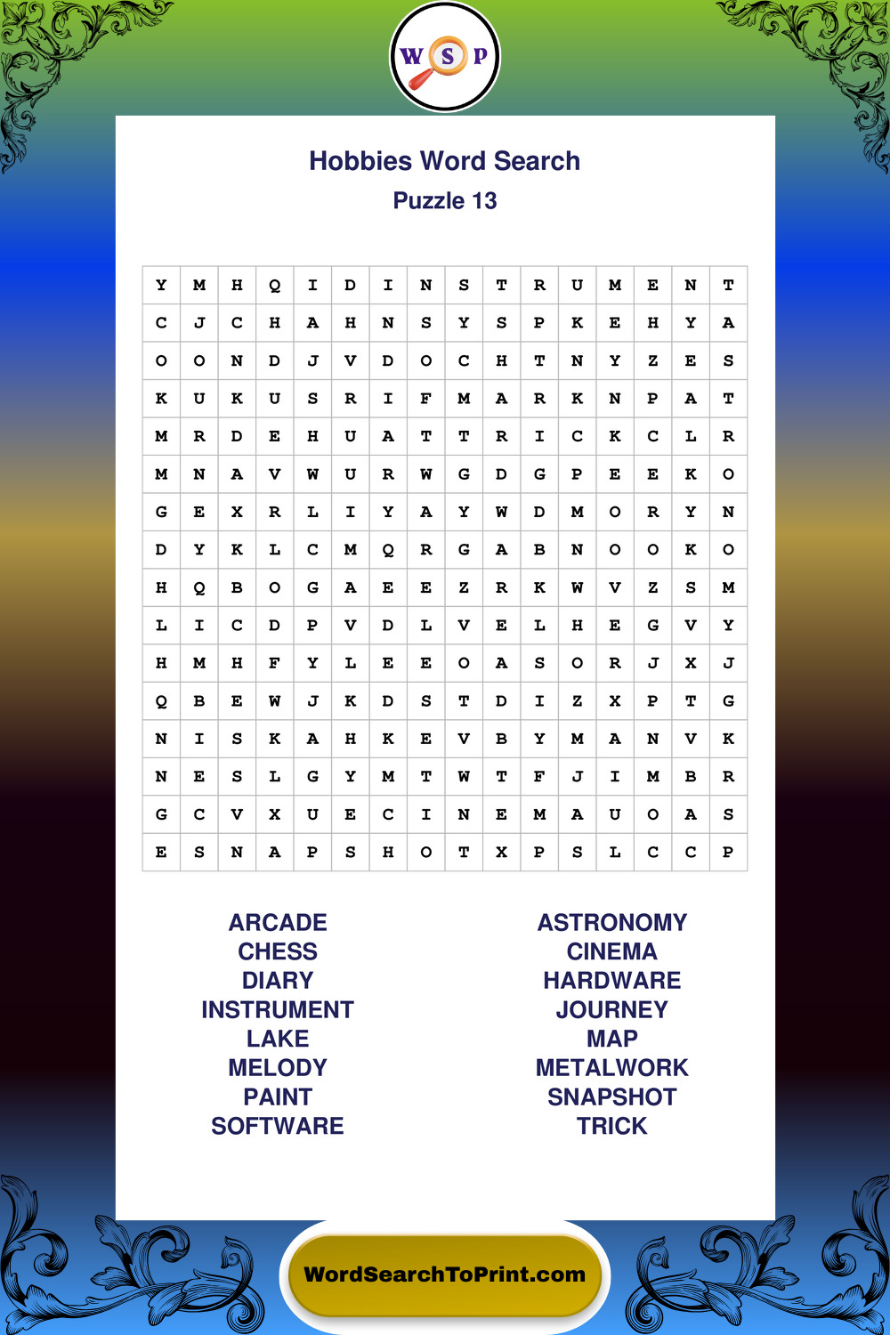 These puzzles reinforce educational themes, general knowledge, hobbies, music, science, and skill-building vocabulary. They offer a structured and engaging way to explore this topic while strengthening concentration and vocabulary recognition. You may also enjoy our Space word search puzzles and Music word search puzzles.