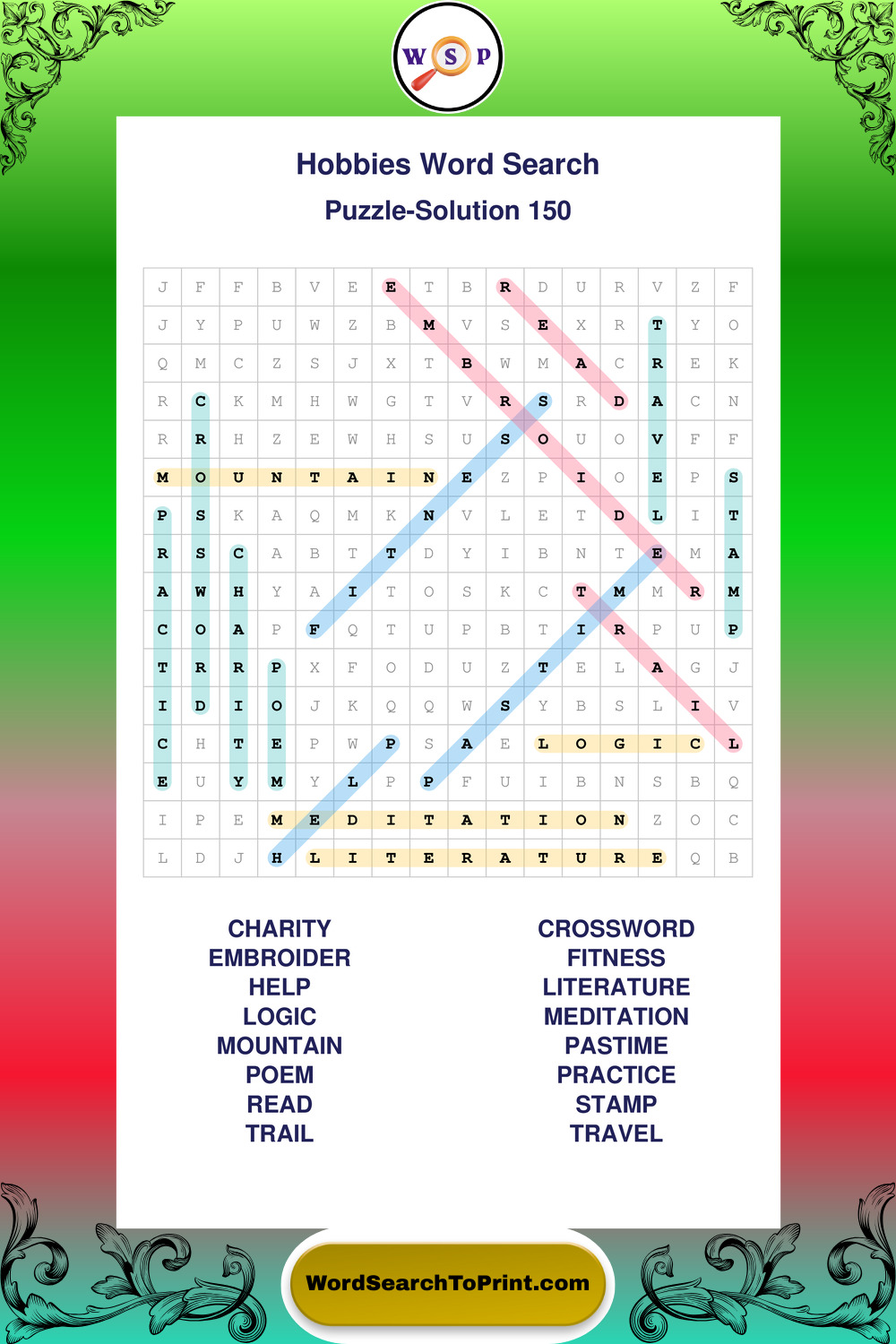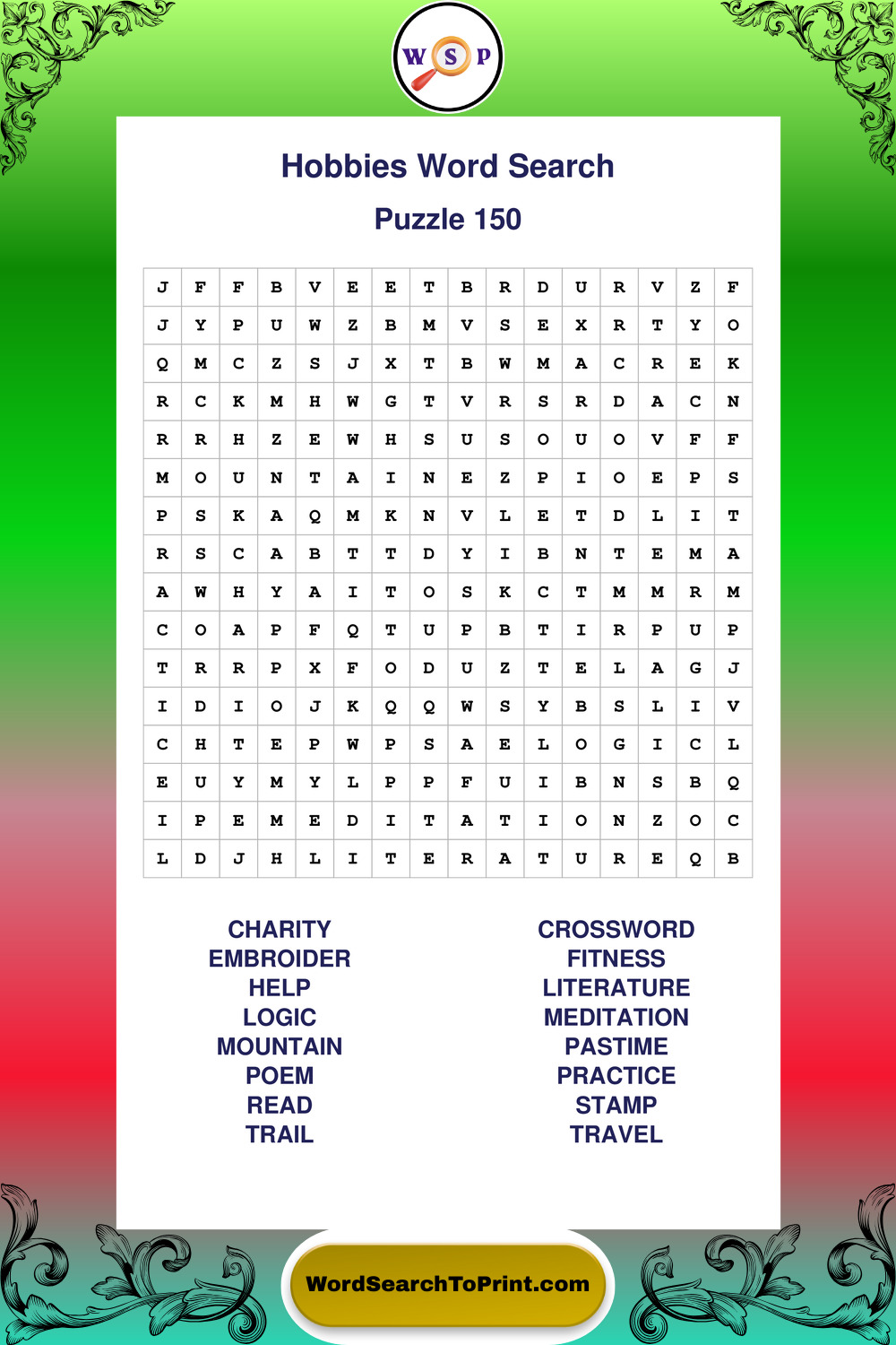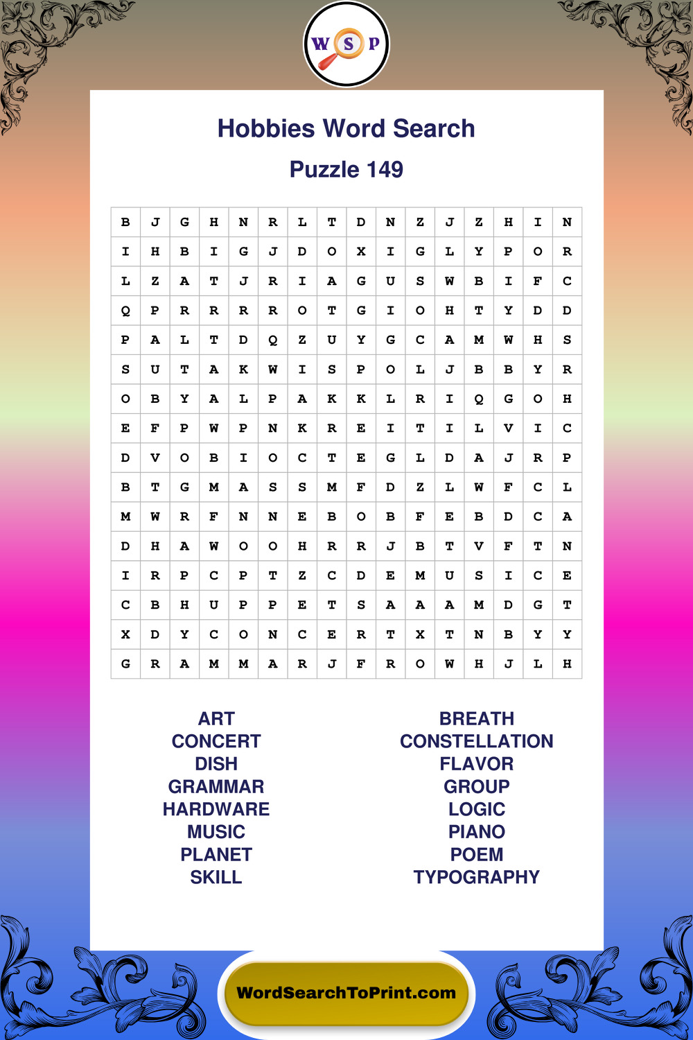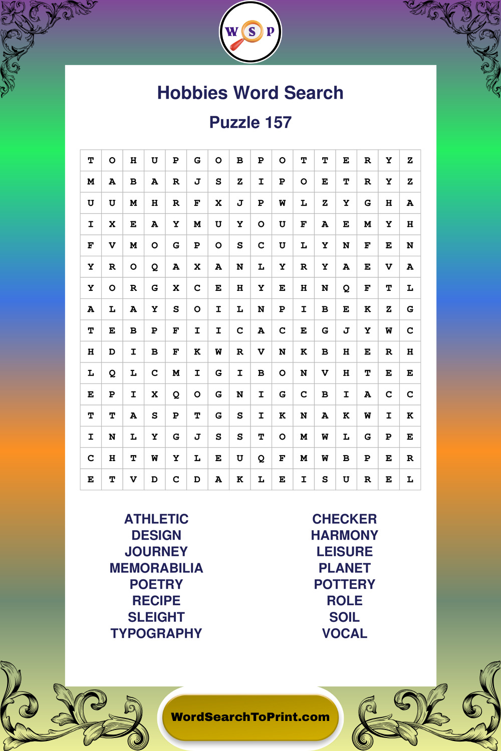 Enjoy a full set of large print Hobbies wordsearches perfect for quiet moments, daily routines, or casual brain exercise.