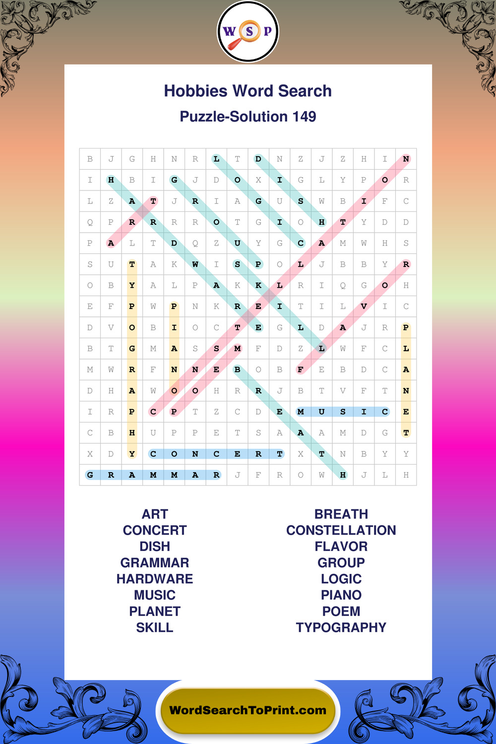 These puzzles reinforce educational themes, general knowledge, hobbies, music, science, and skill-building vocabulary. They offer a structured and engaging way to explore this topic while strengthening concentration and vocabulary recognition. You may also enjoy our Space word search puzzles and Music word search puzzles.
