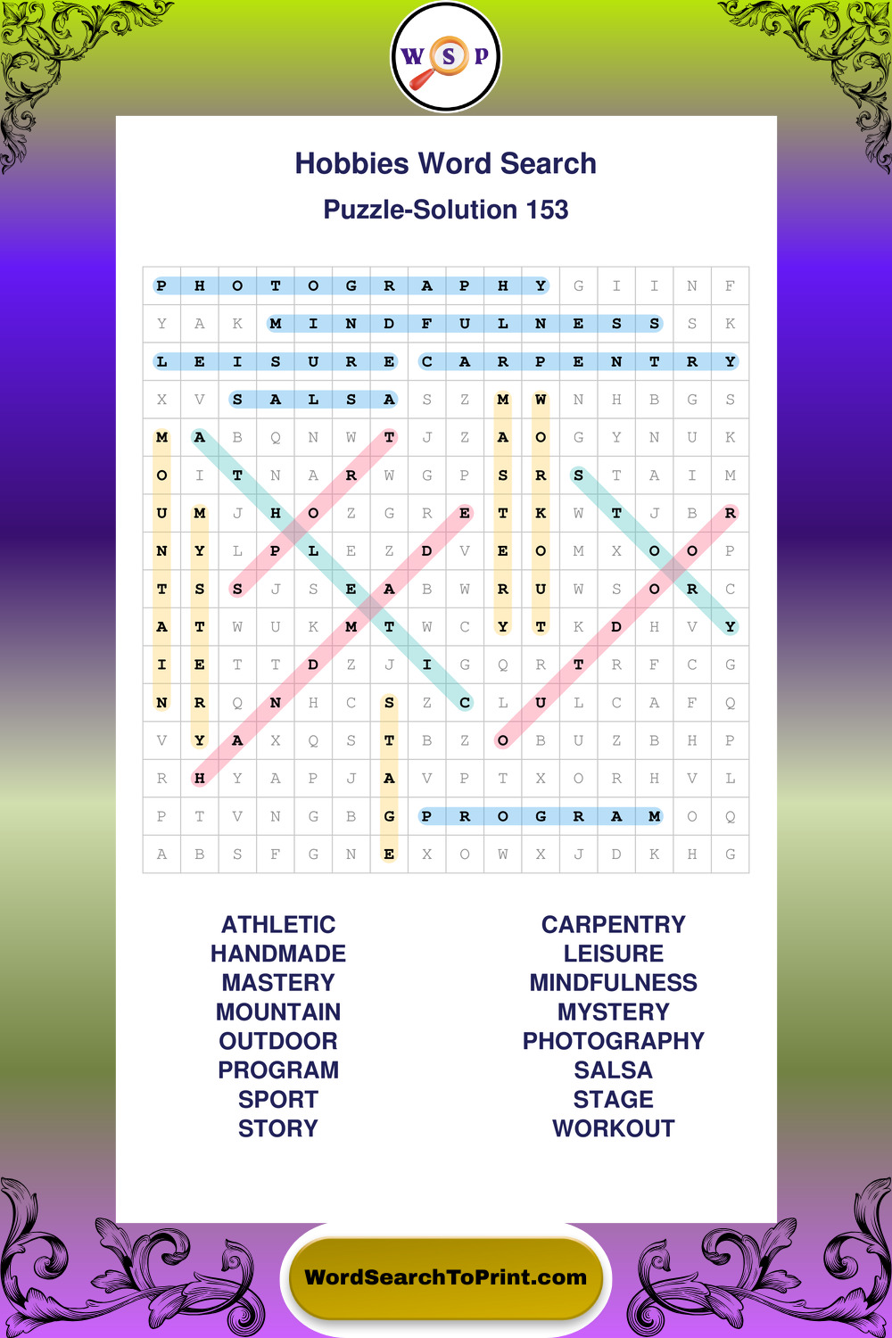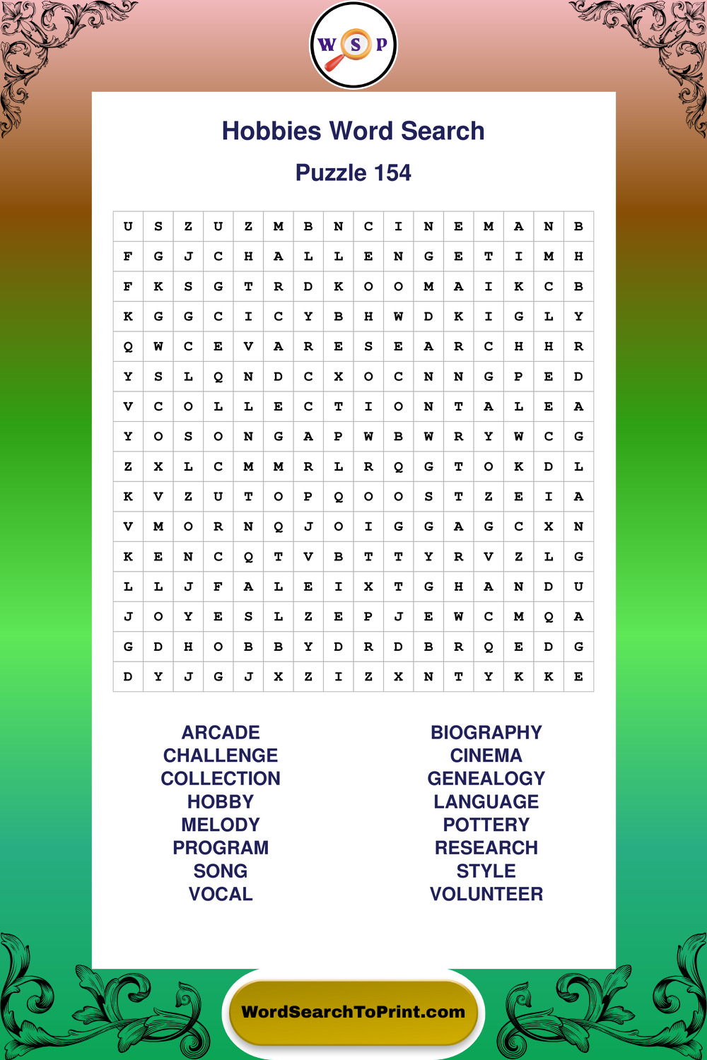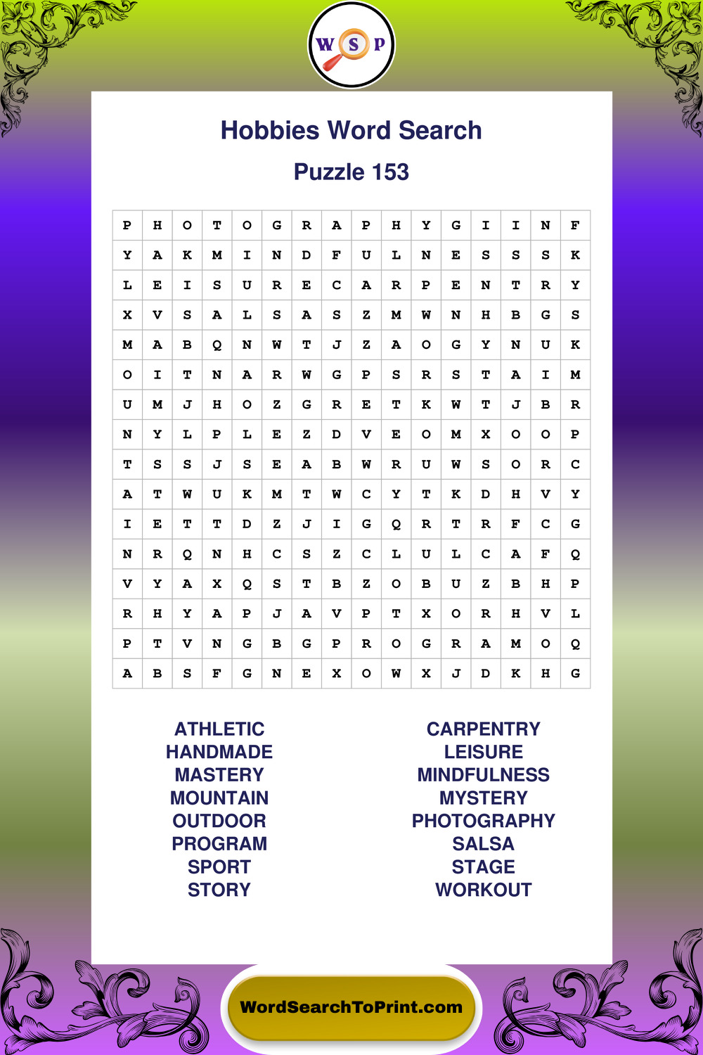 Printable Hobbies Wordsearch Puzzles