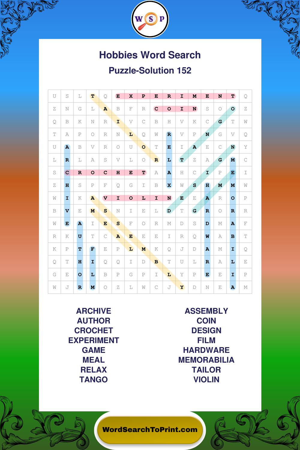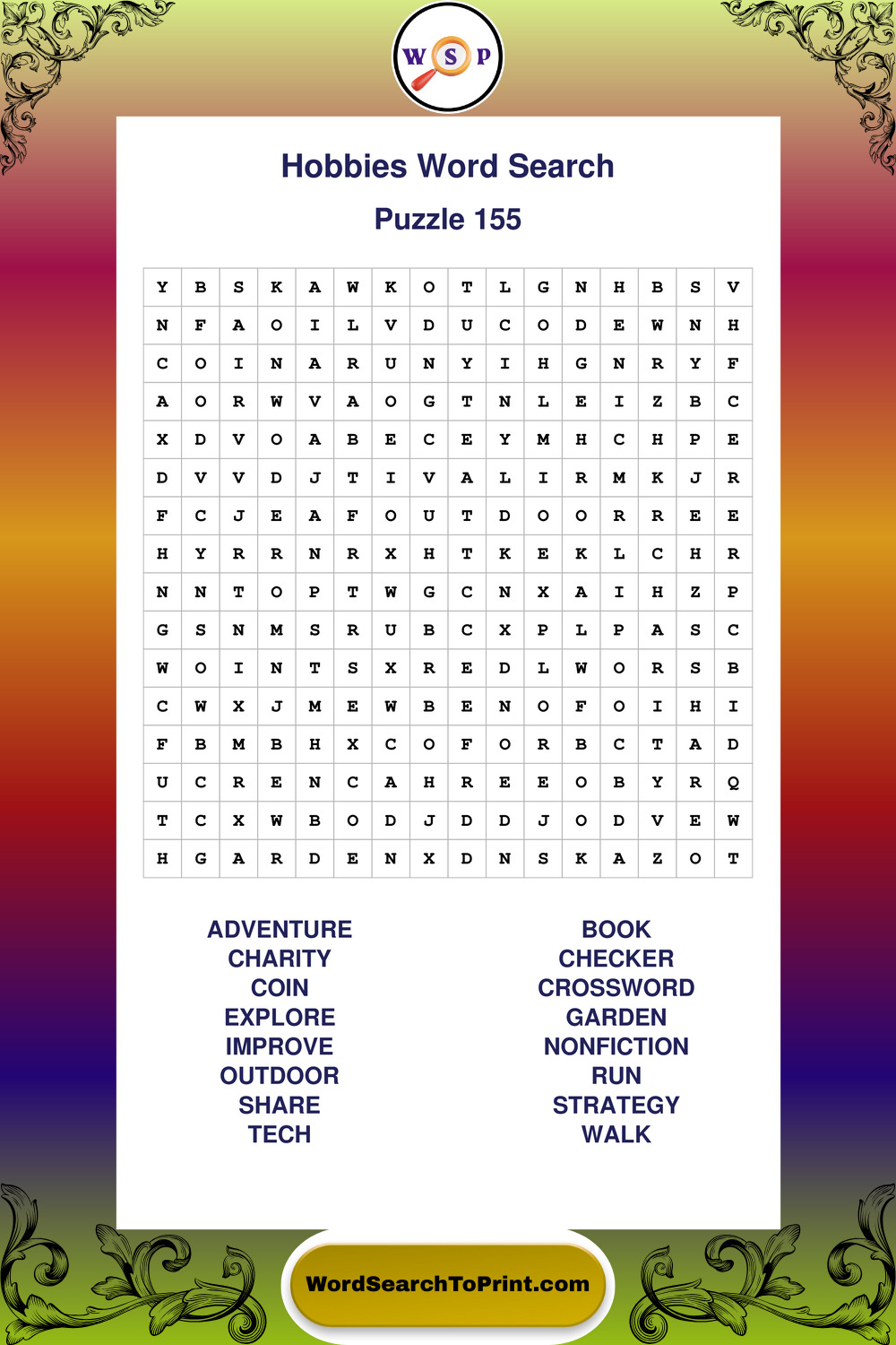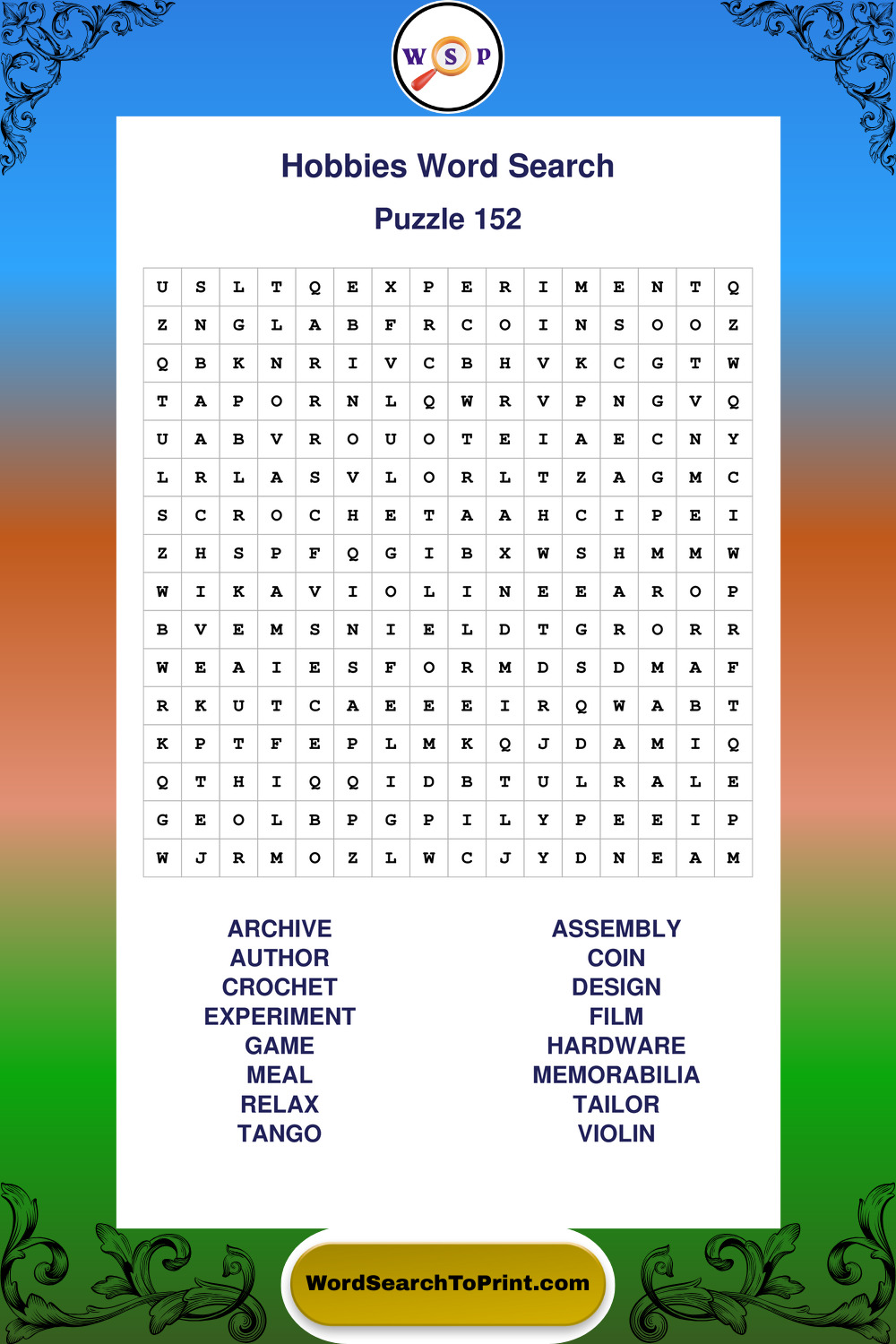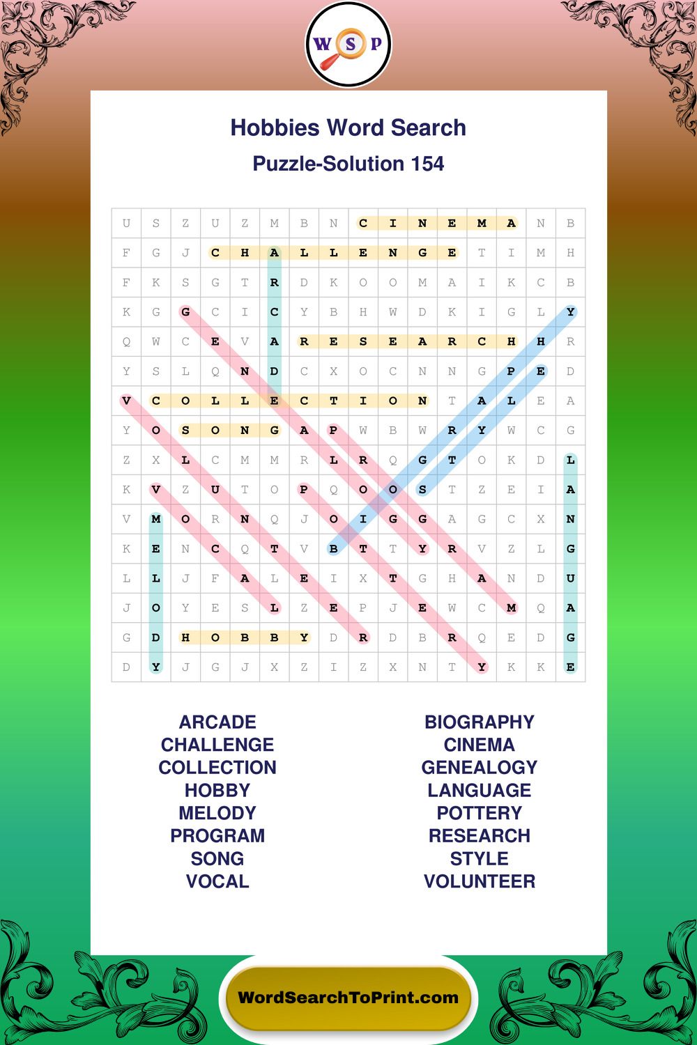 Printable Hobbies Wordsearch Puzzles
