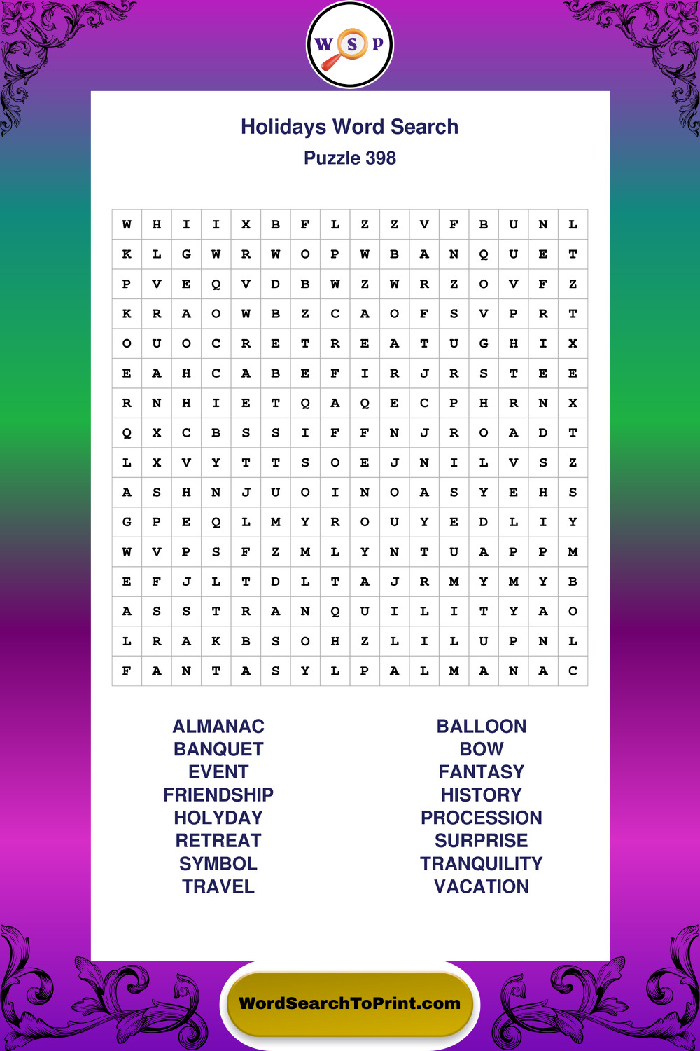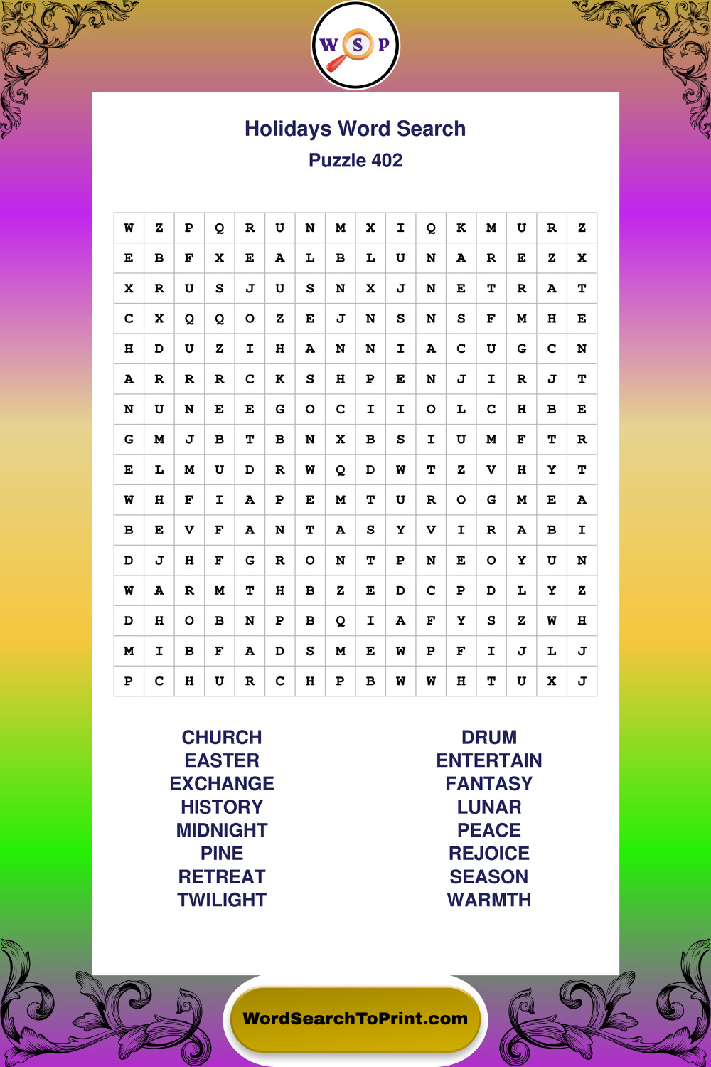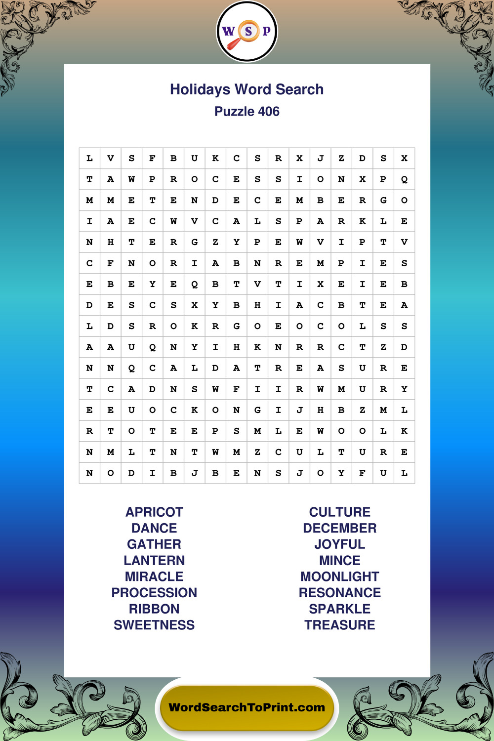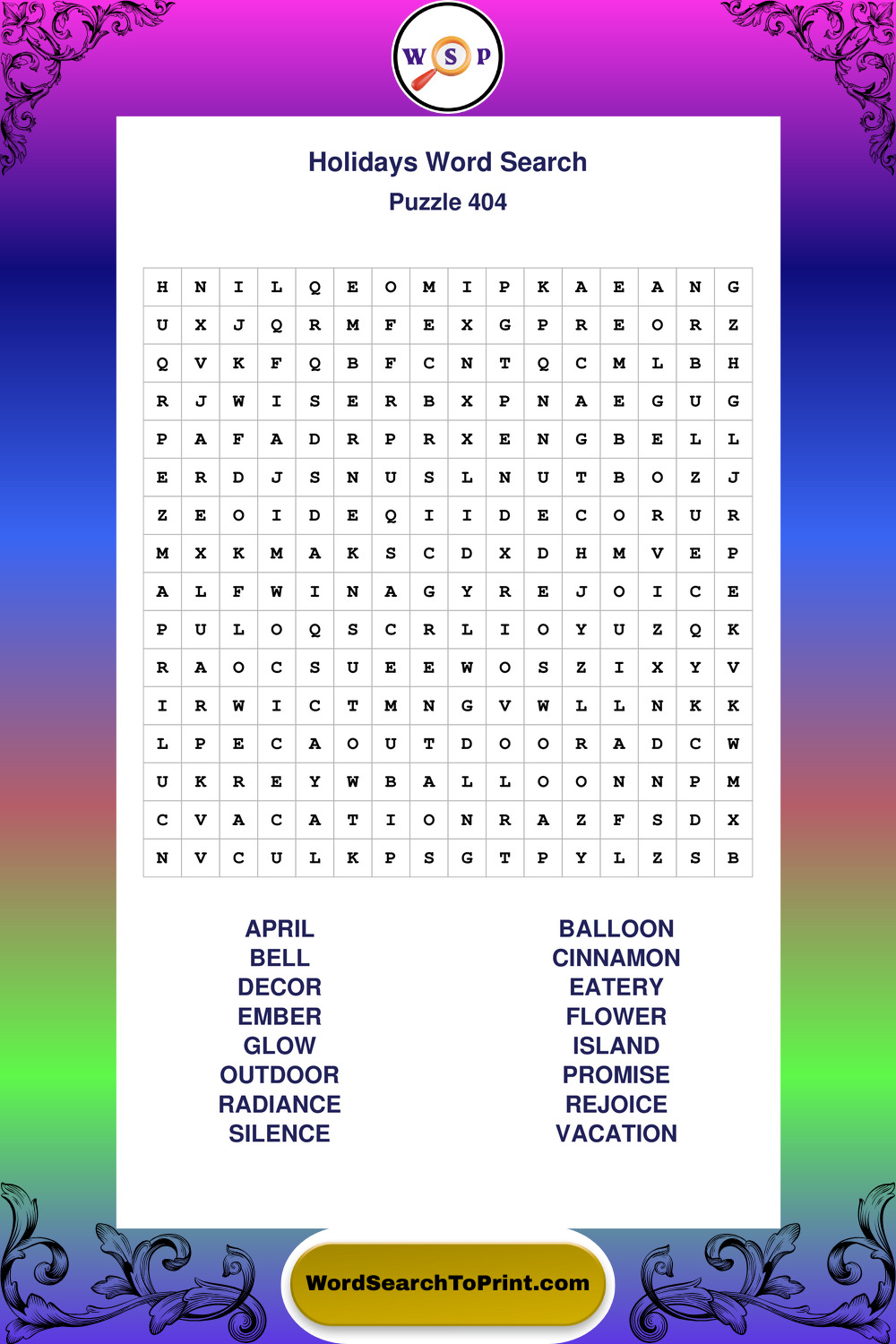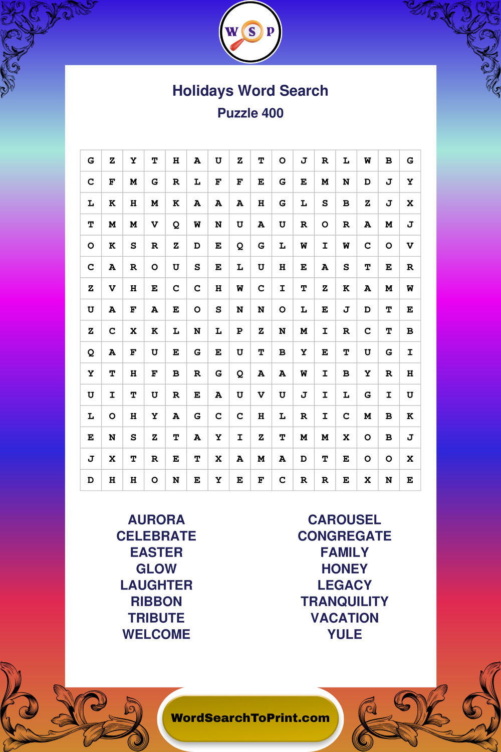 Find easy-to-read large print Holidays wordsearches designed for peaceful focus and simple, enjoyable solving.