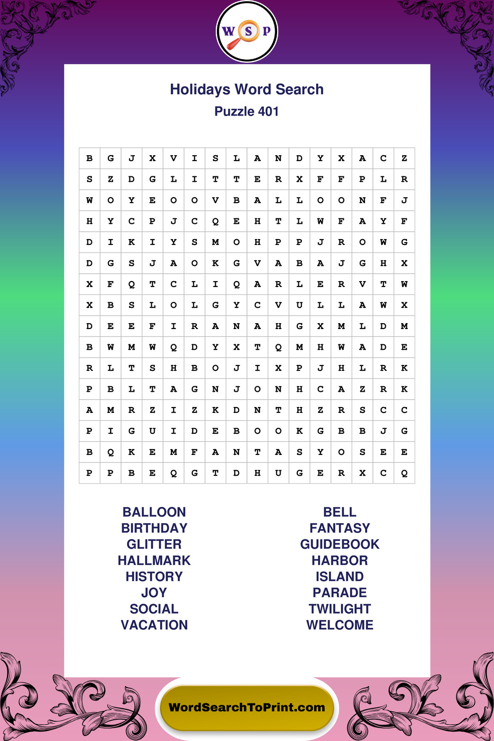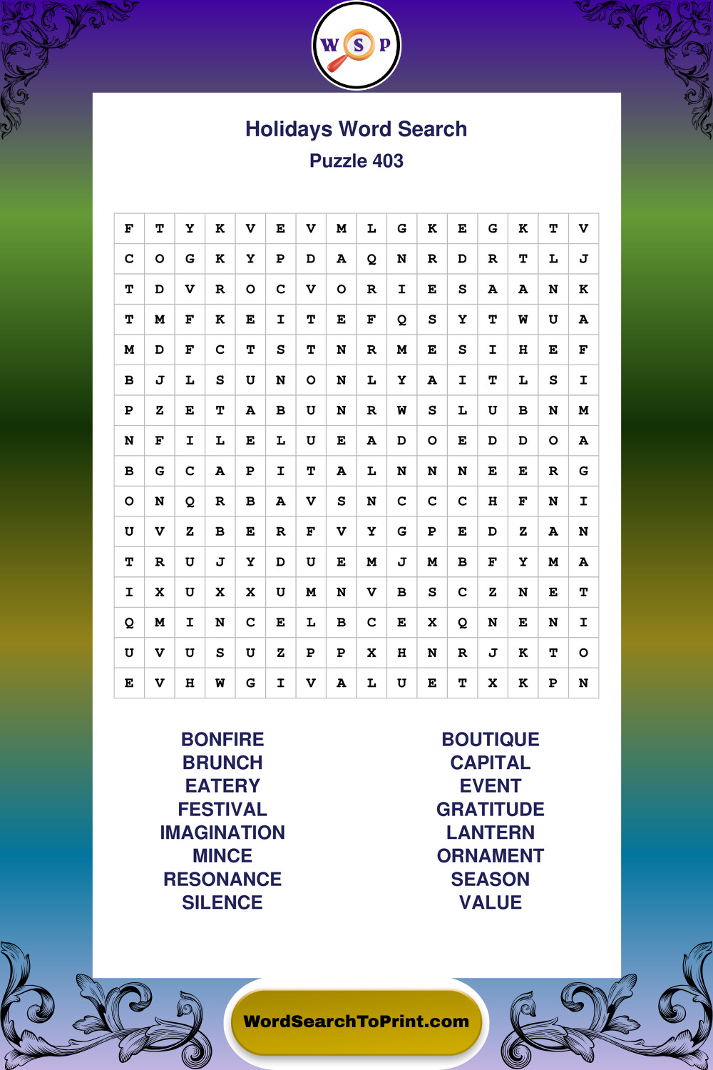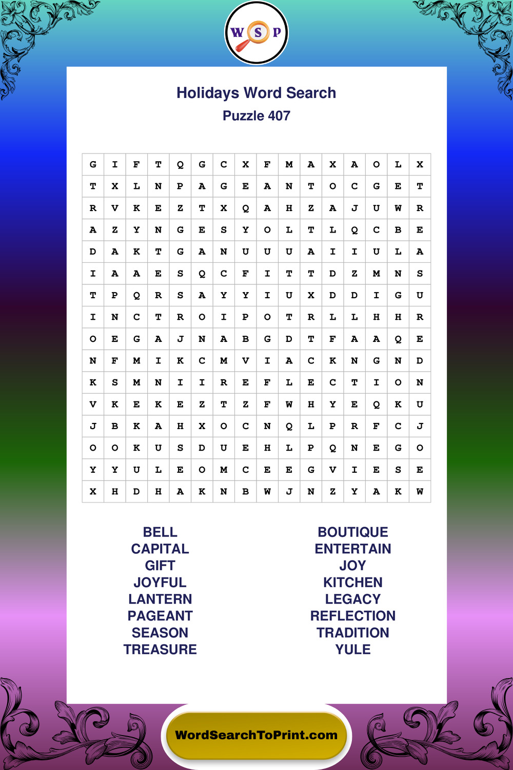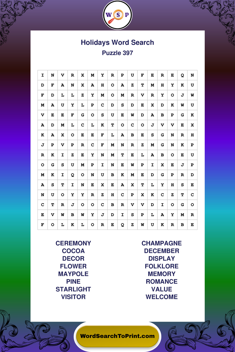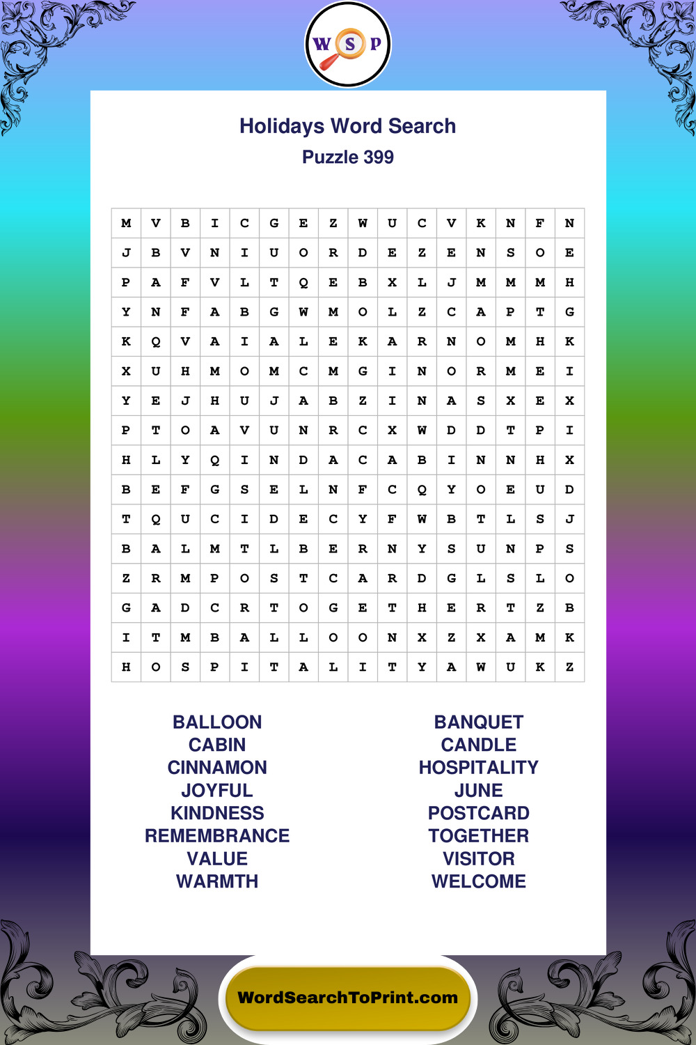 Find easy-to-read large print Holidays wordsearches designed for peaceful focus and simple, enjoyable solving.
