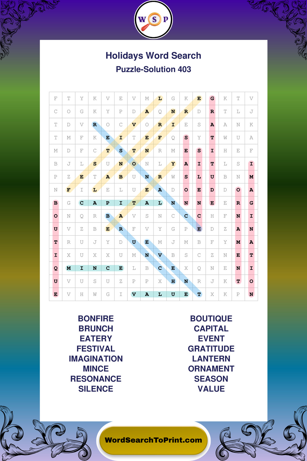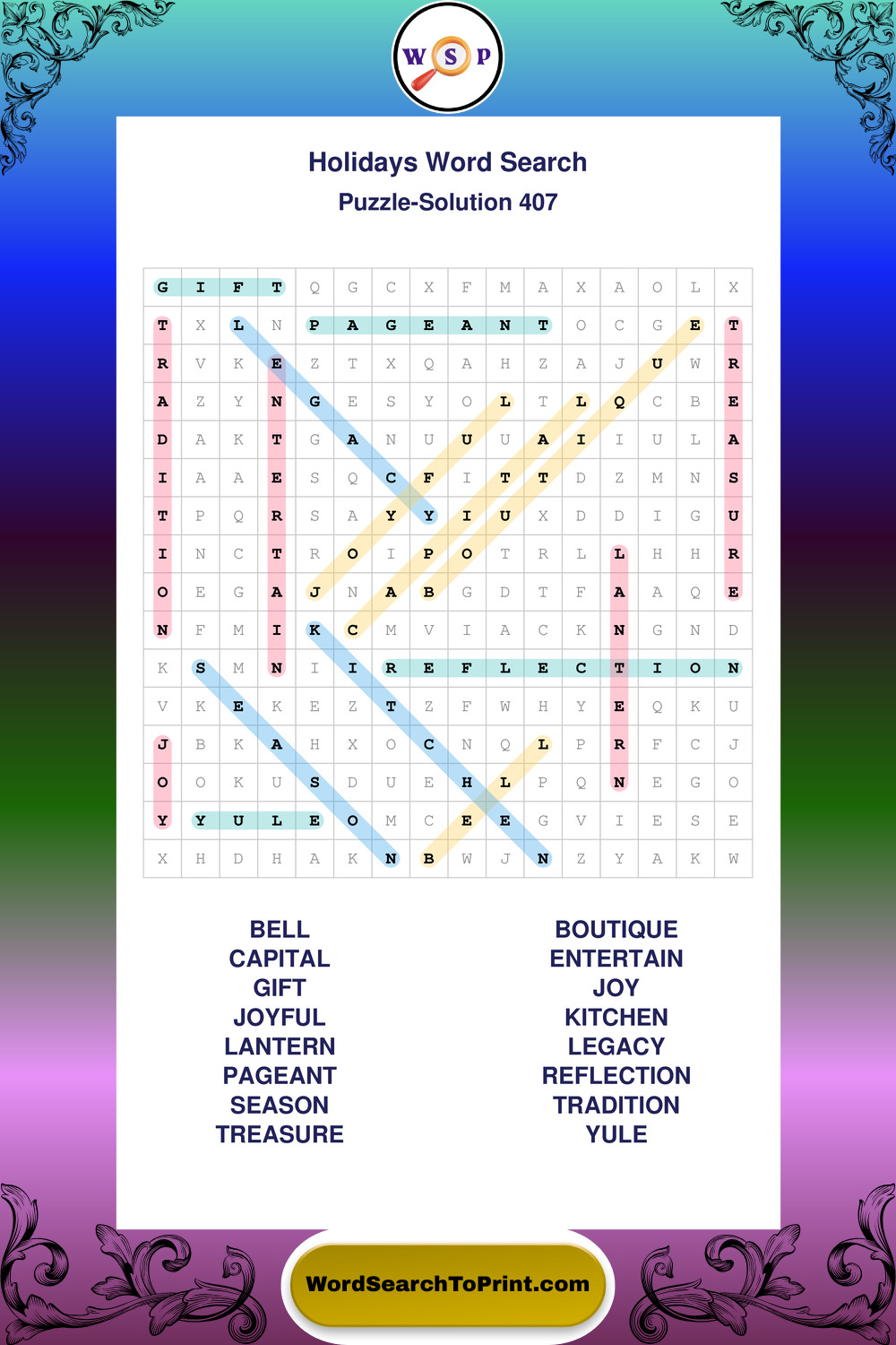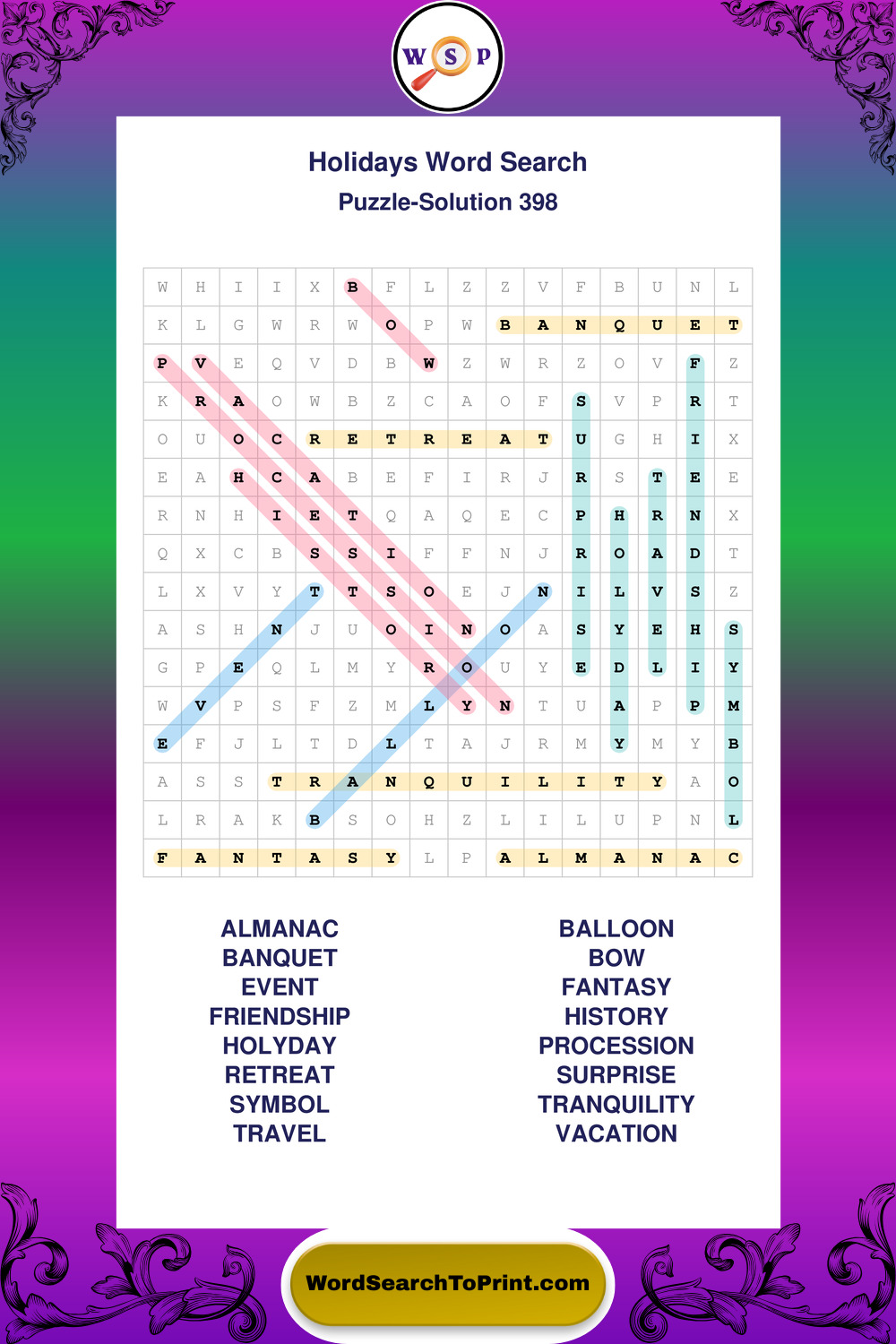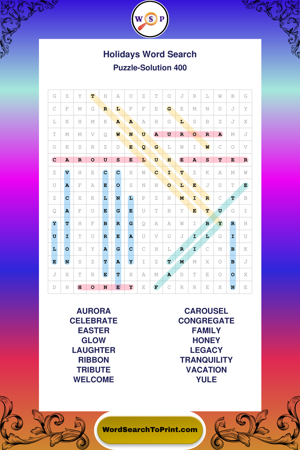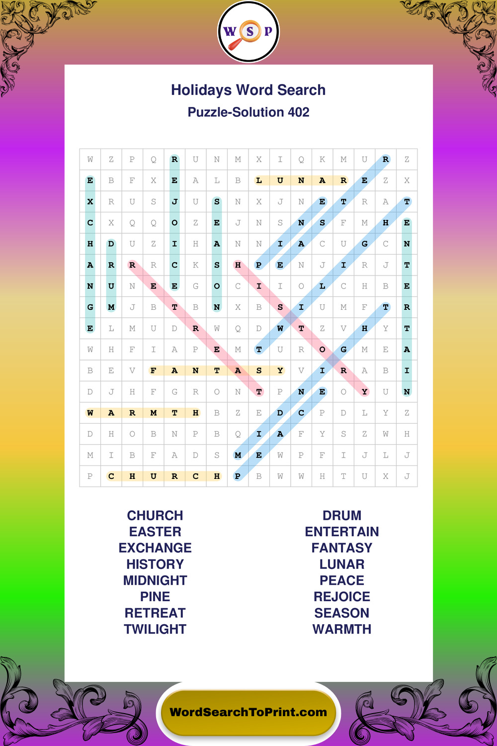 Find easy-to-read large print Holidays wordsearches designed for peaceful focus and simple, enjoyable solving.