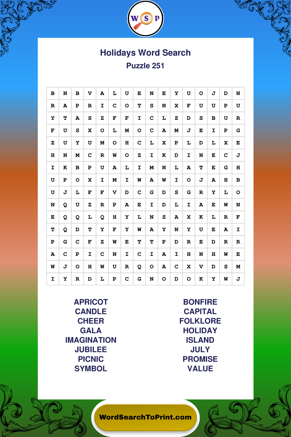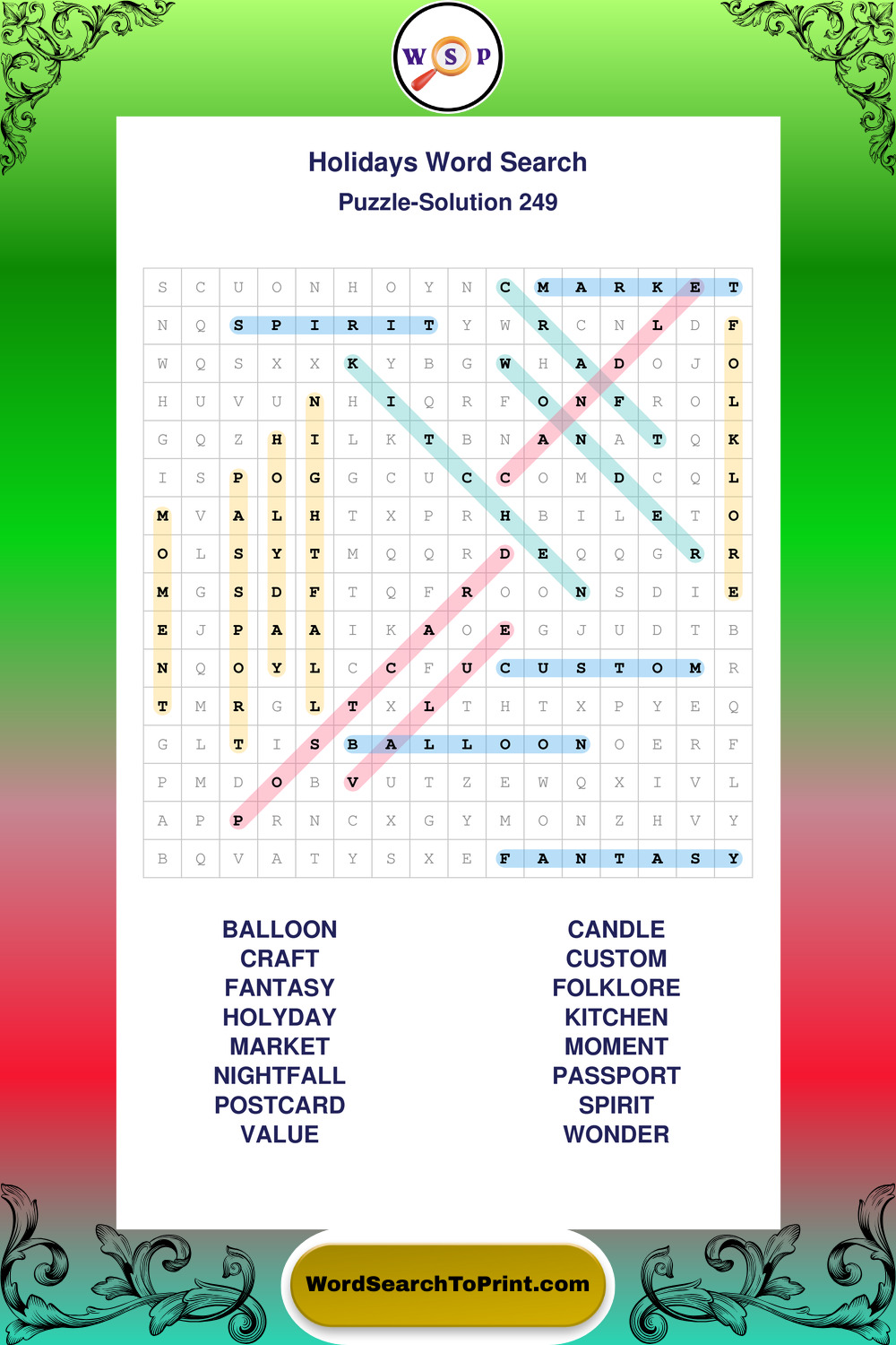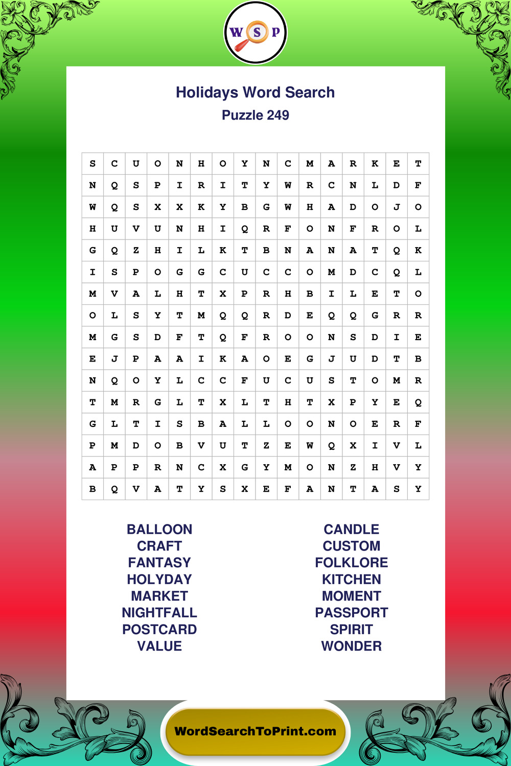 Printable Holidays Wordsearch Puzzles