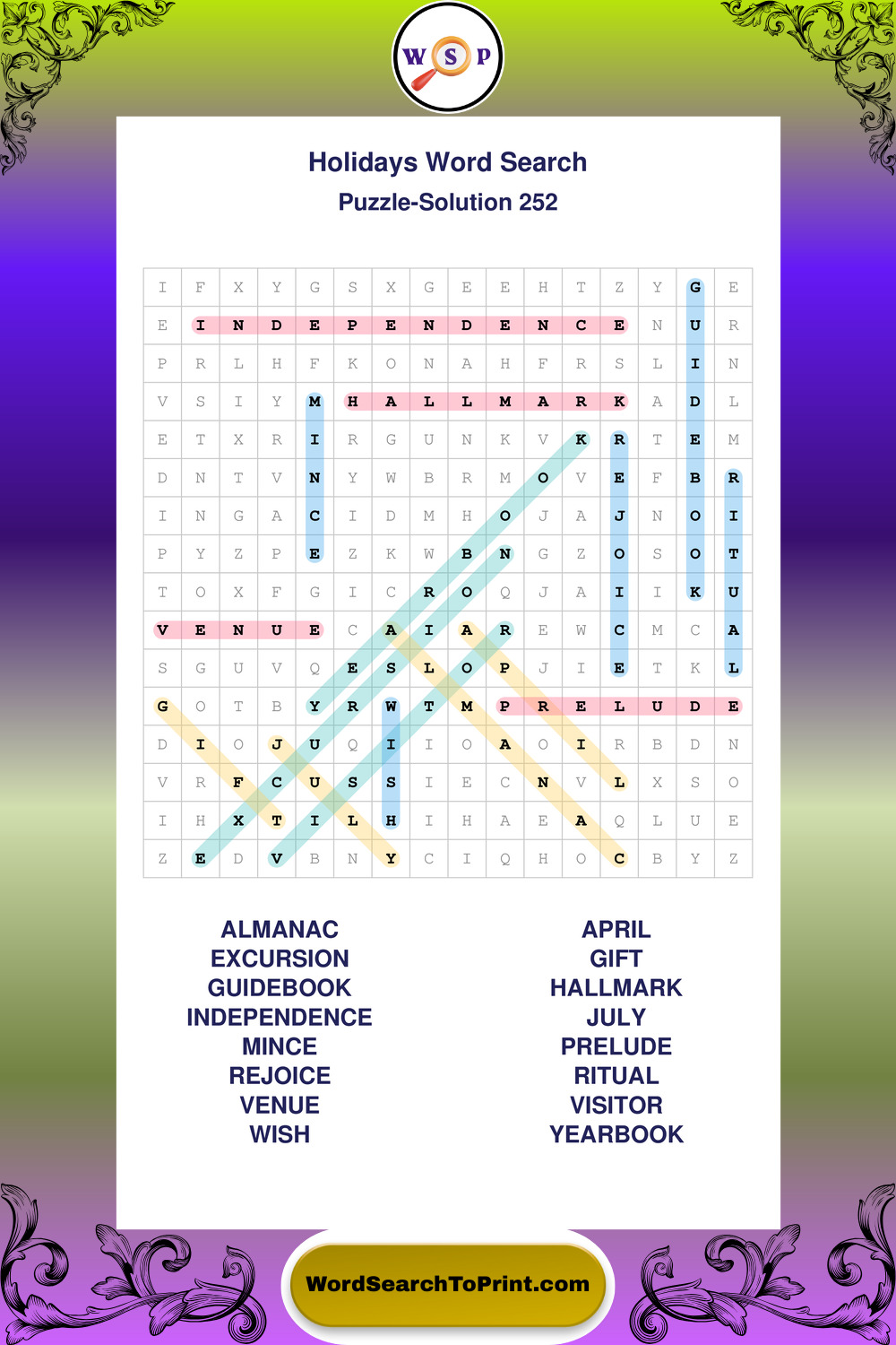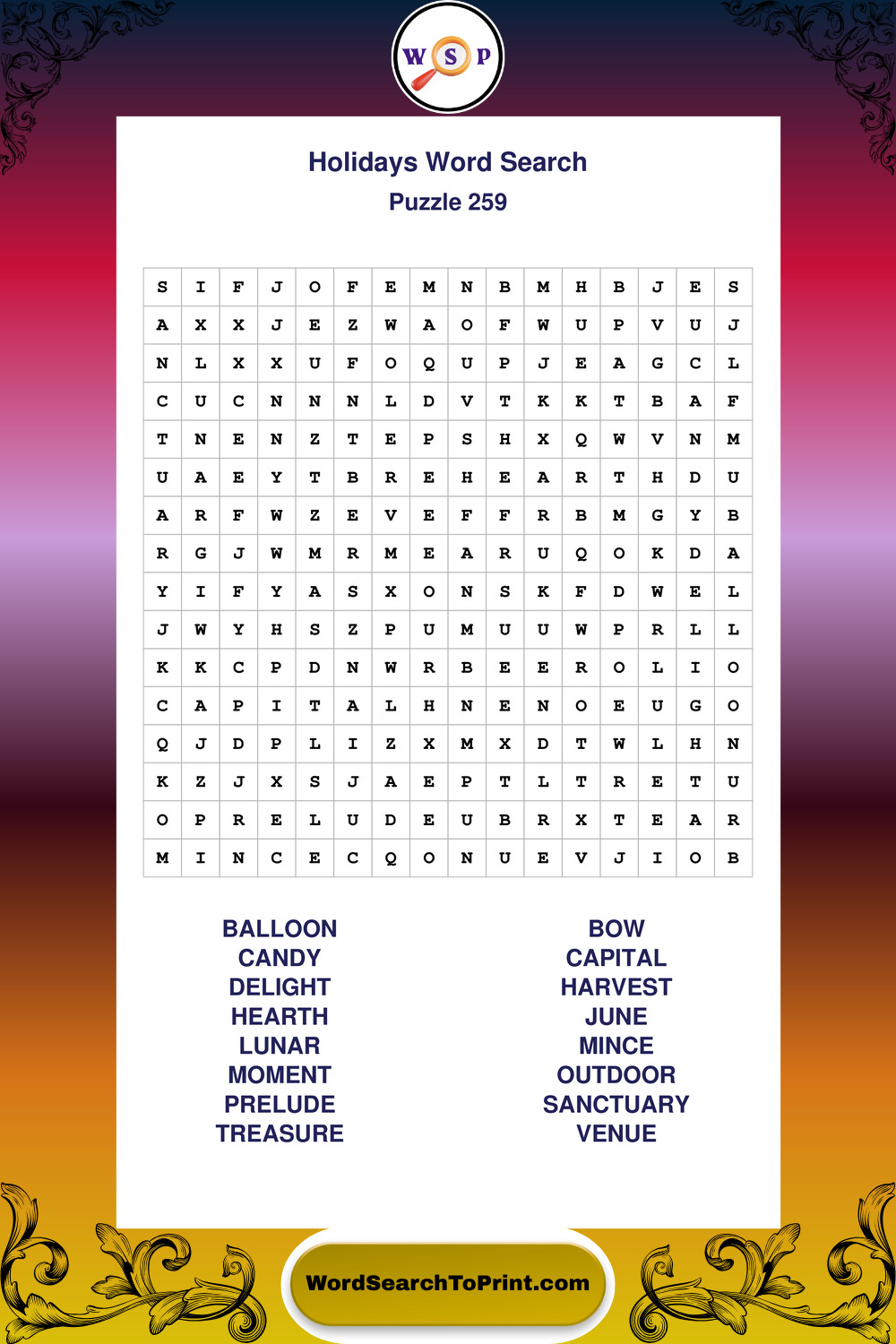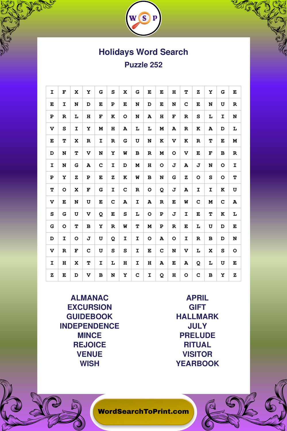 Find easy-to-read large print Holidays wordsearches designed for peaceful focus and simple, enjoyable solving.