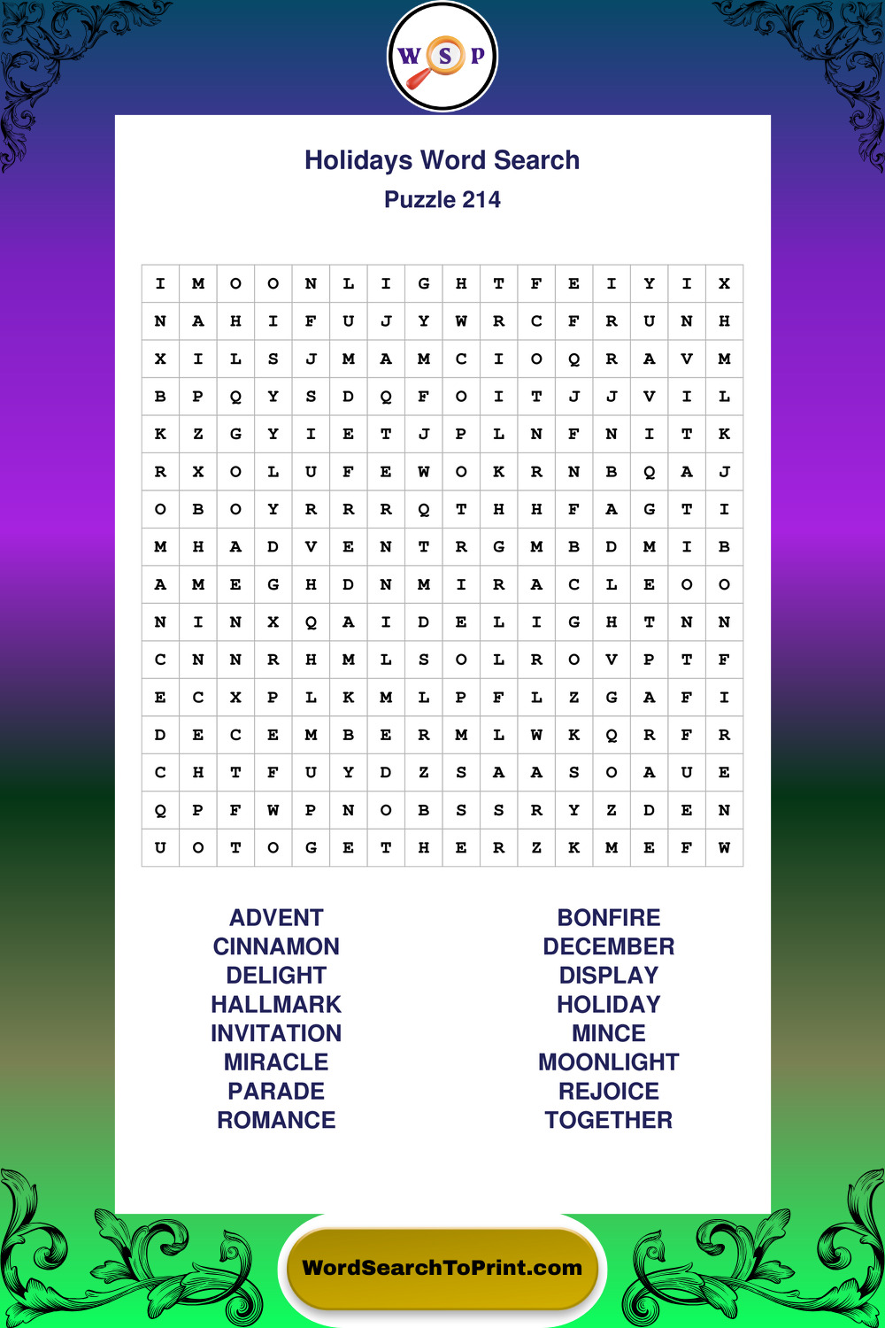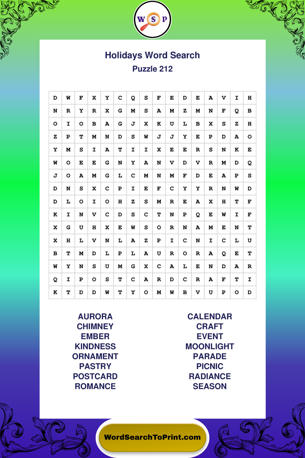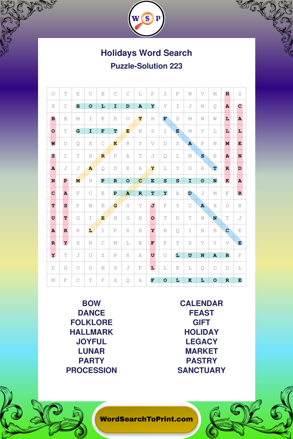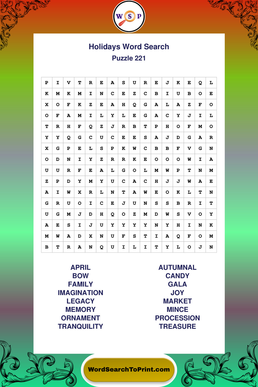 Find easy-to-read large print Holidays wordsearches designed for peaceful focus and simple, enjoyable solving.
