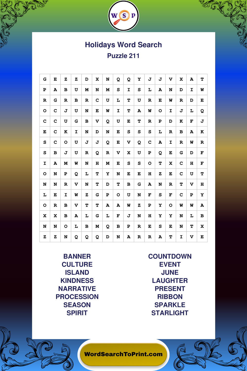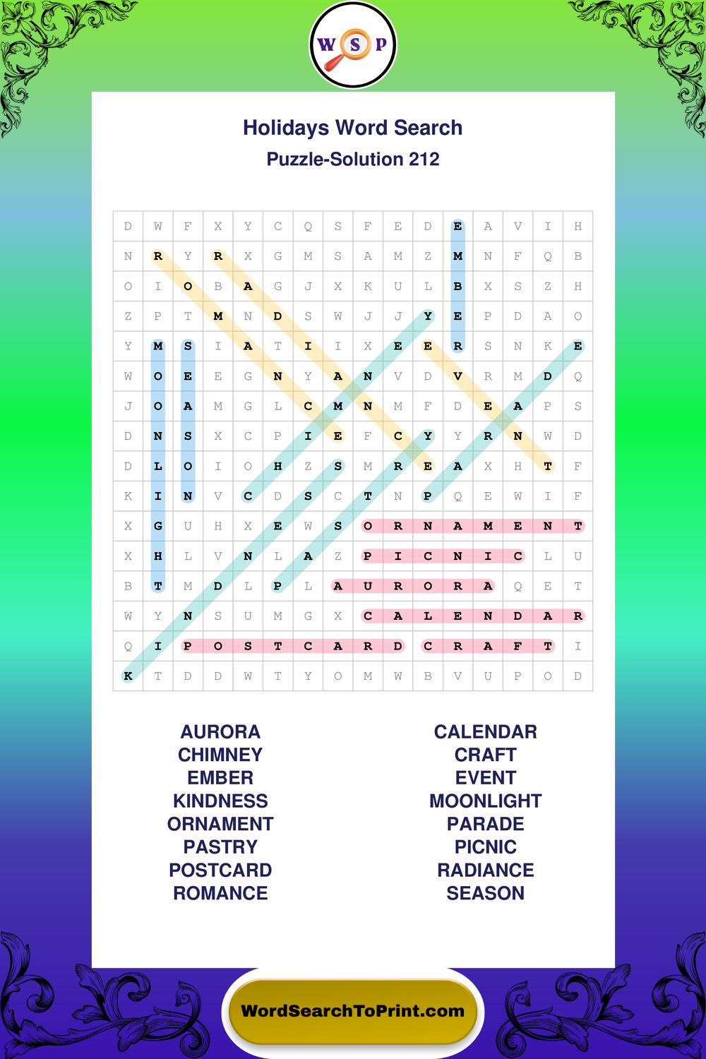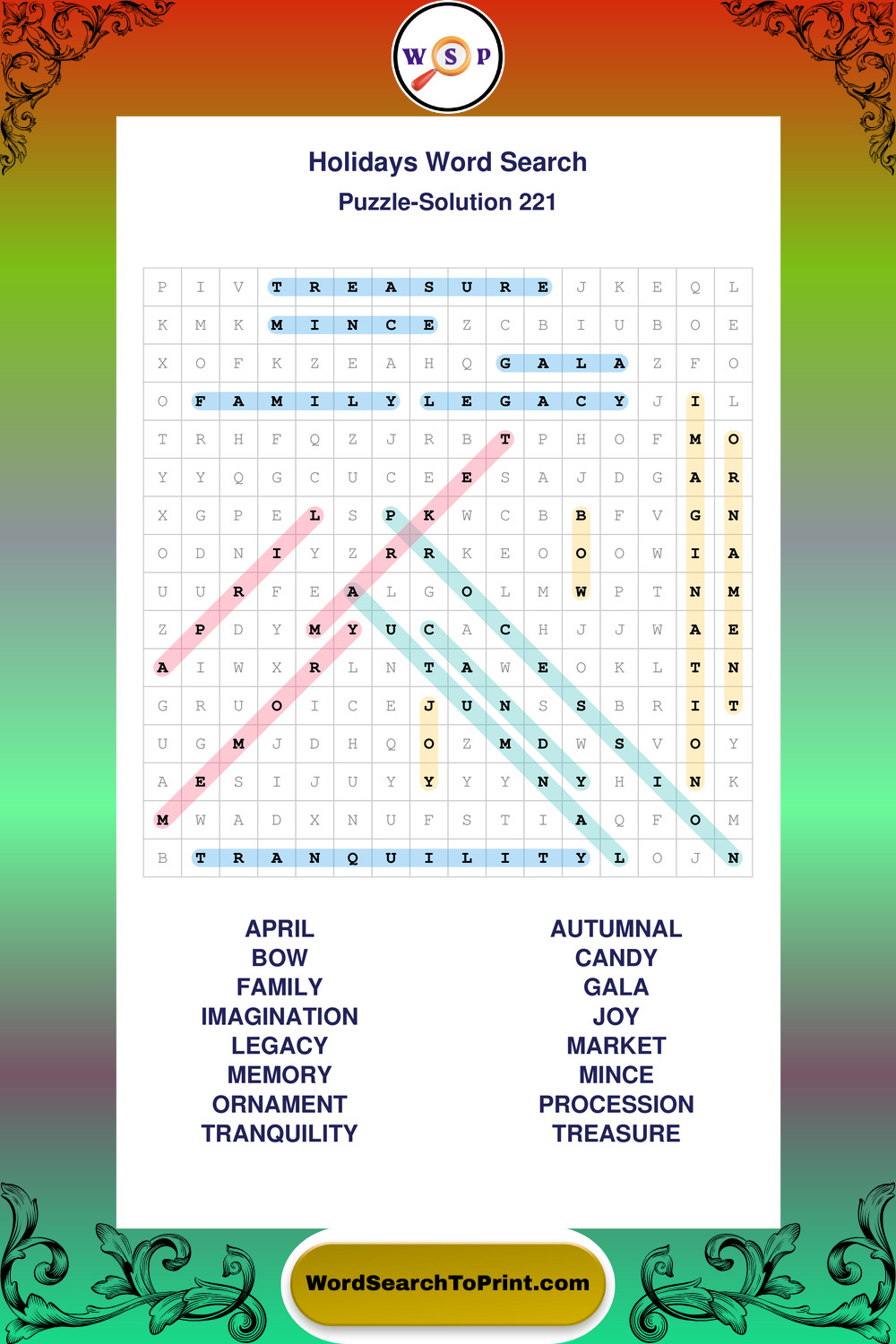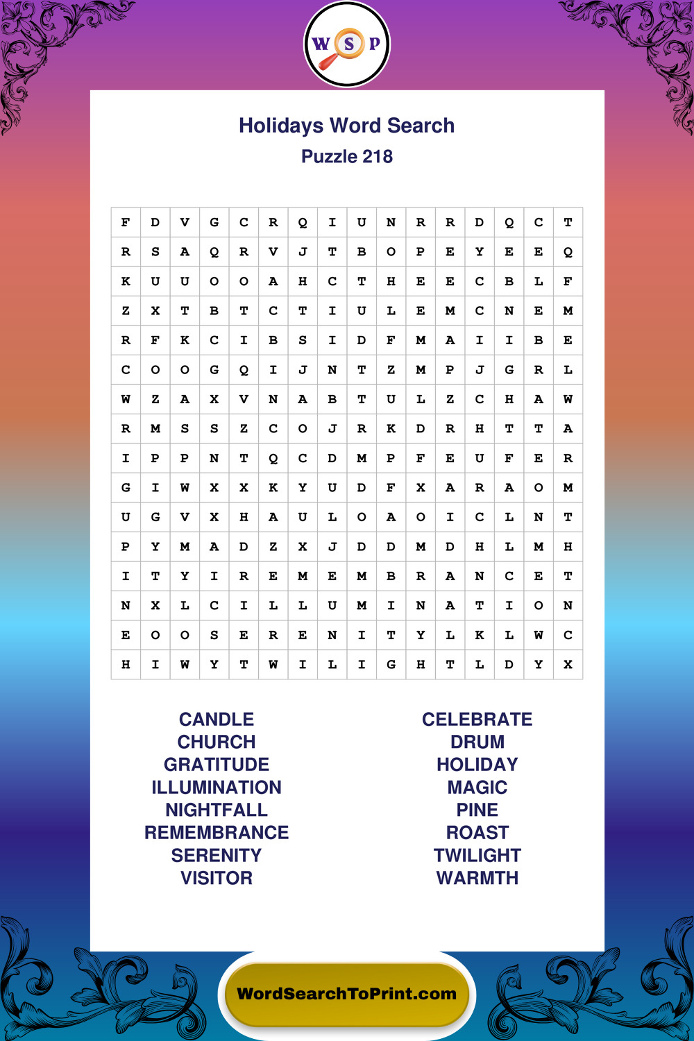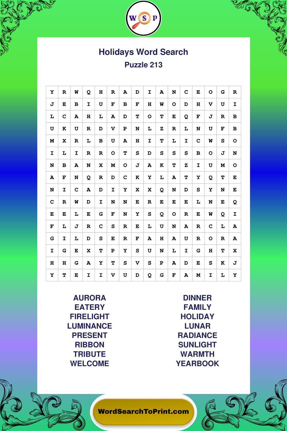 Find easy-to-read large print Holidays wordsearches designed for peaceful focus and simple, enjoyable solving.