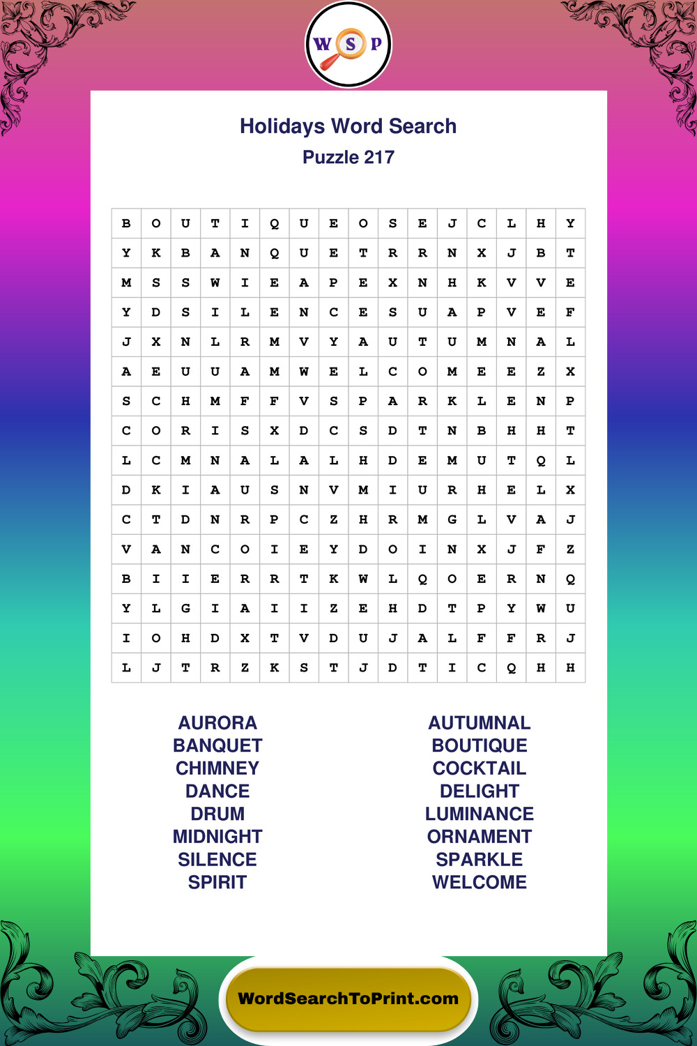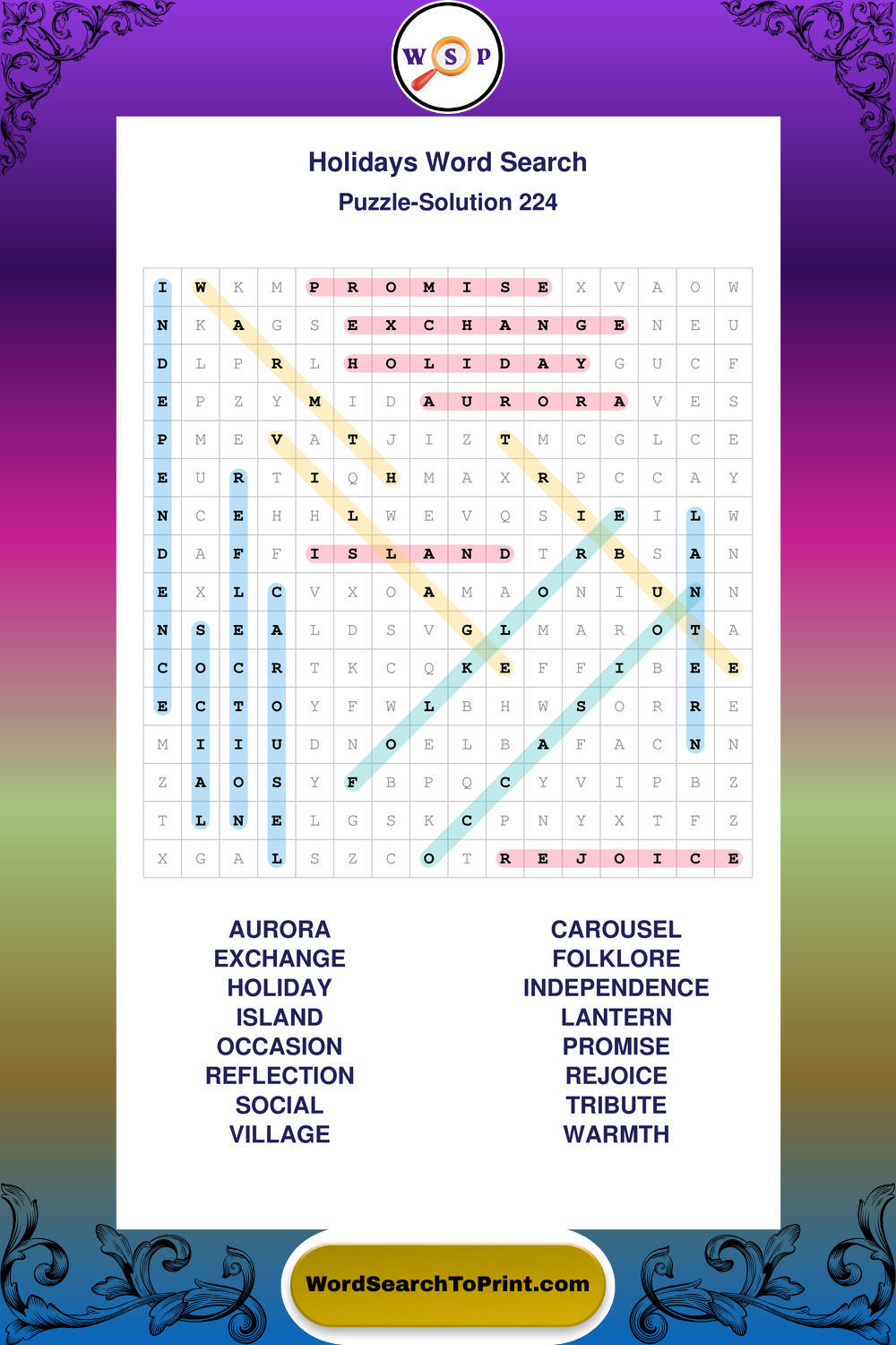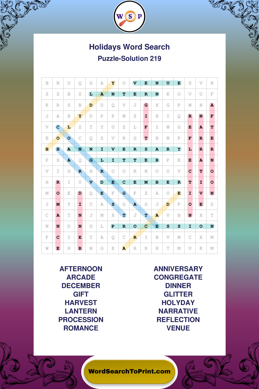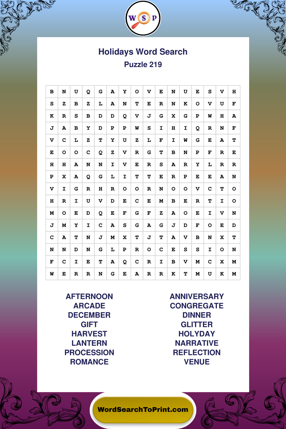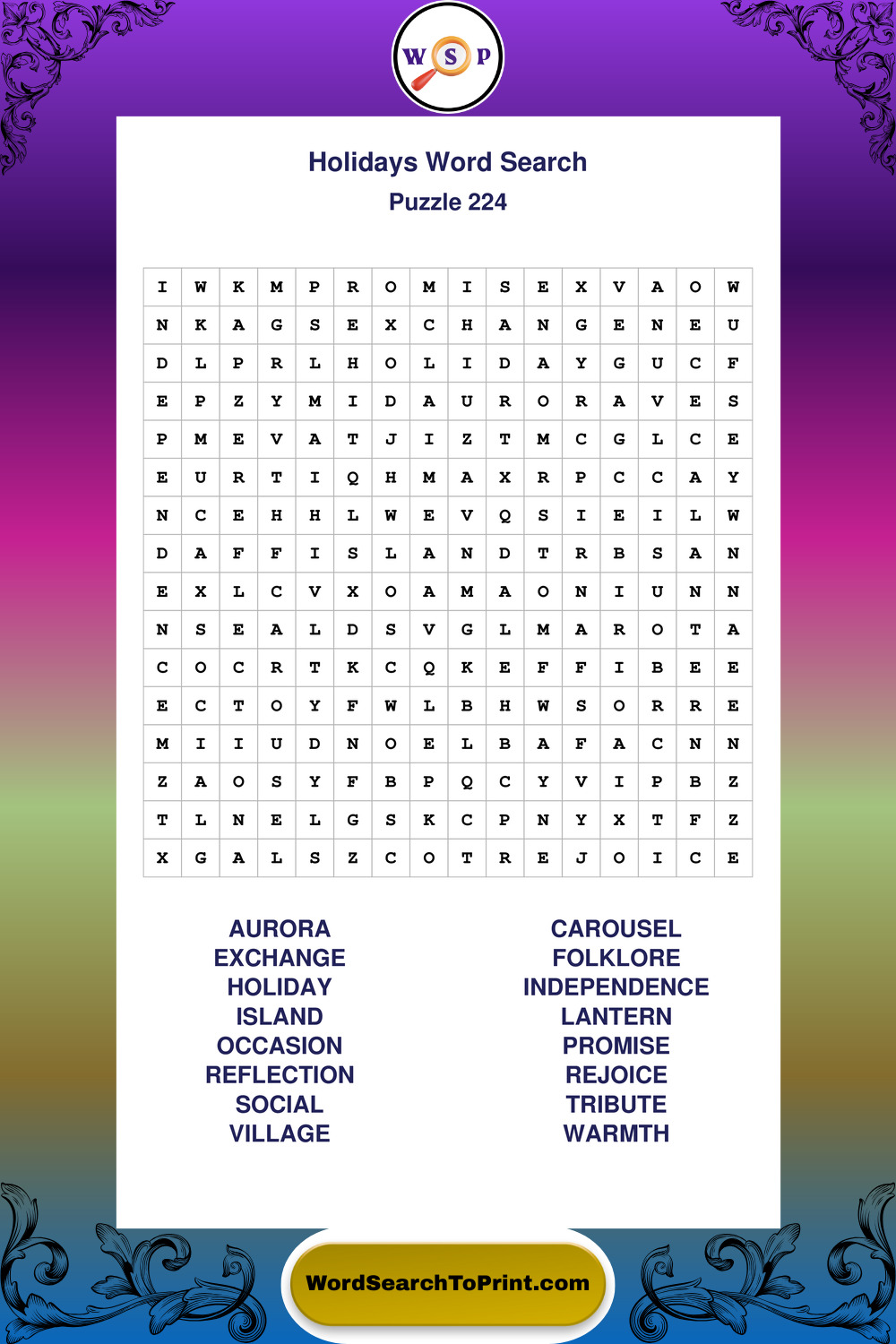 Printable Holidays Wordsearch Puzzles
