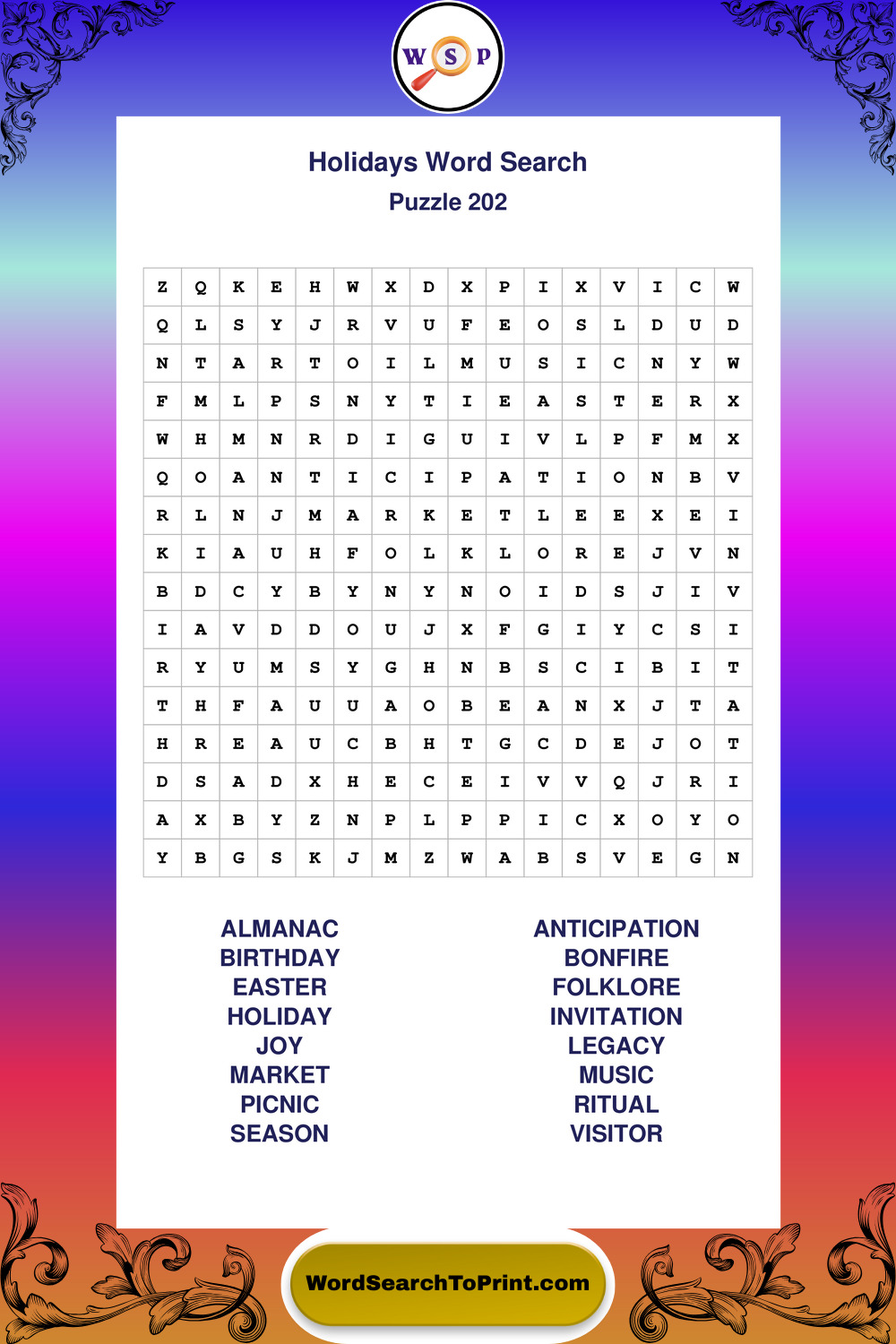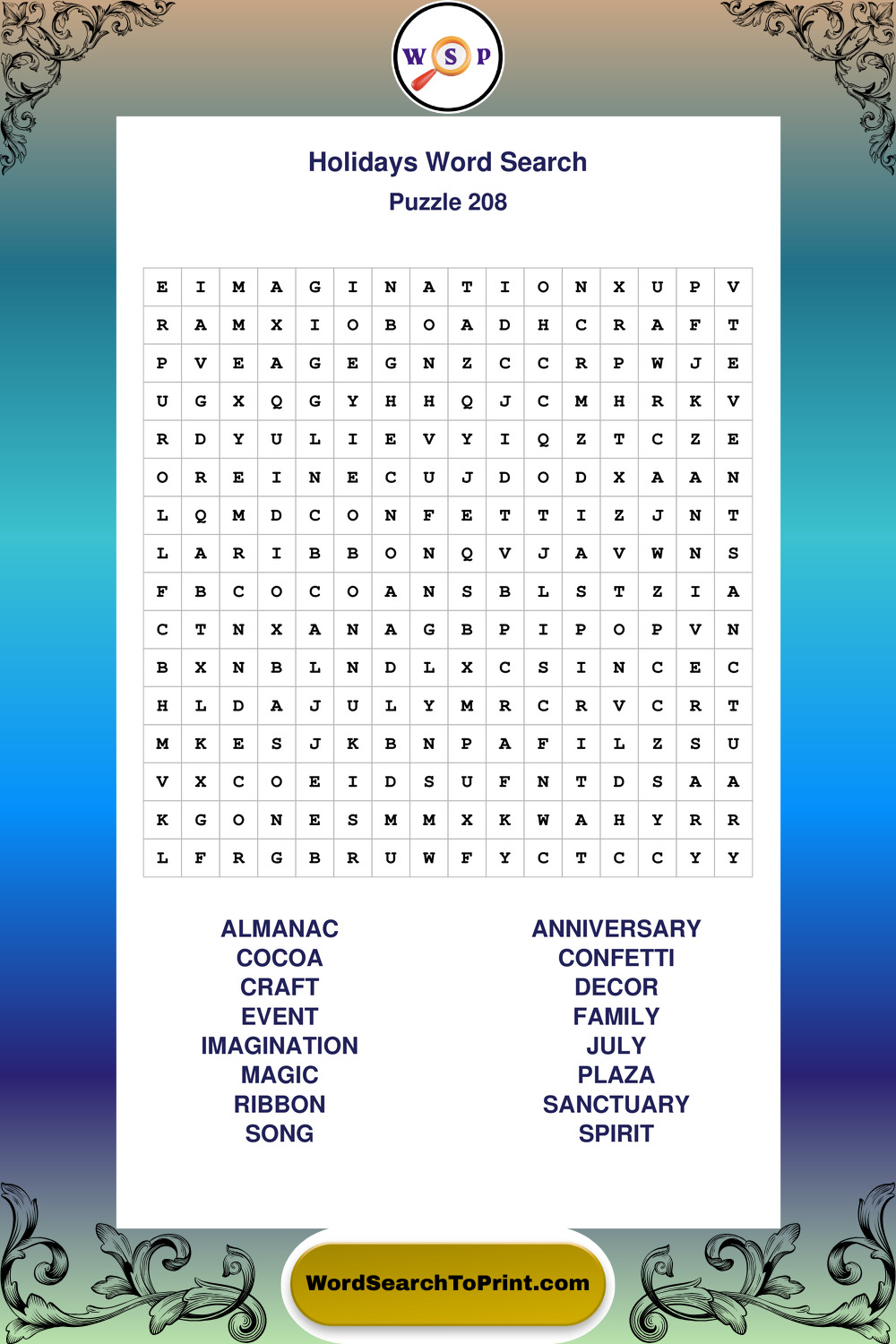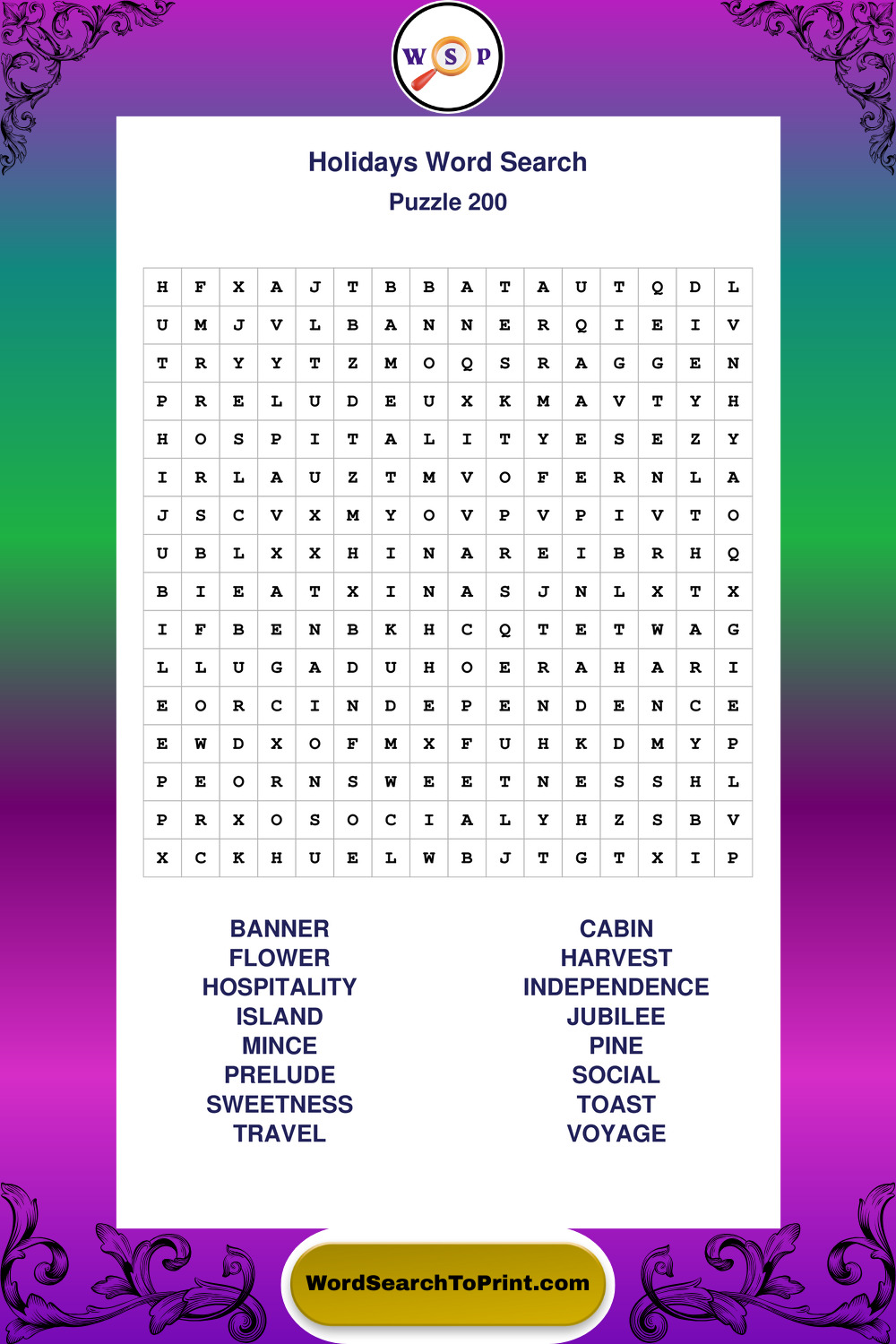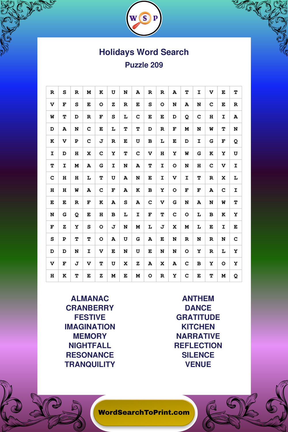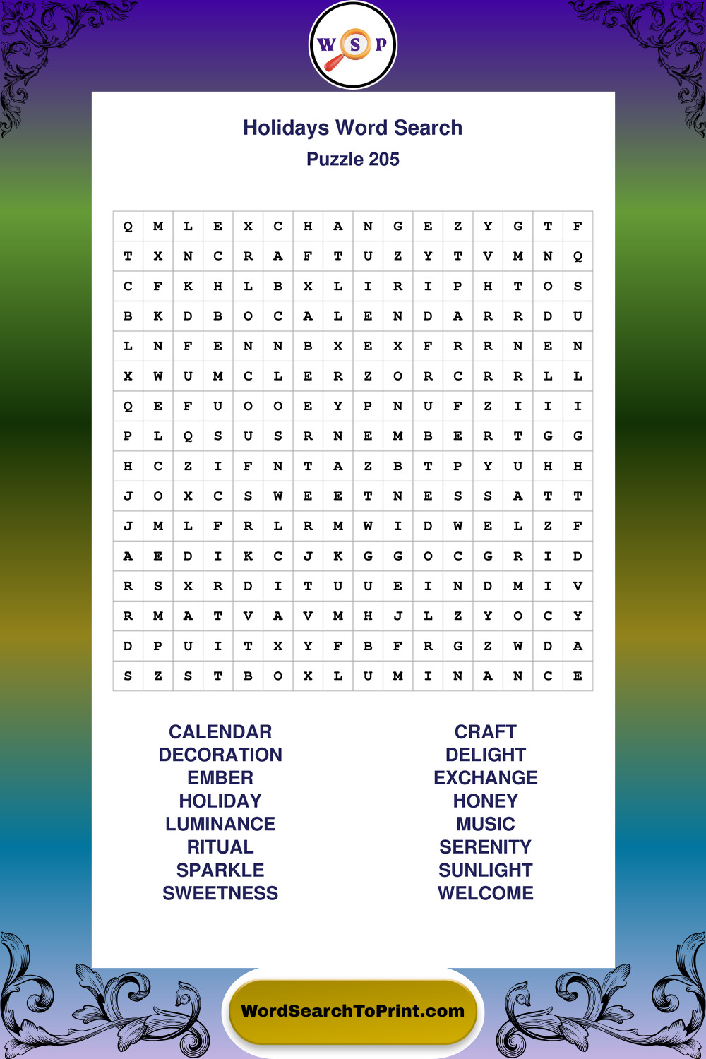 Find easy-to-read large print Holidays wordsearches designed for peaceful focus and simple, enjoyable solving.