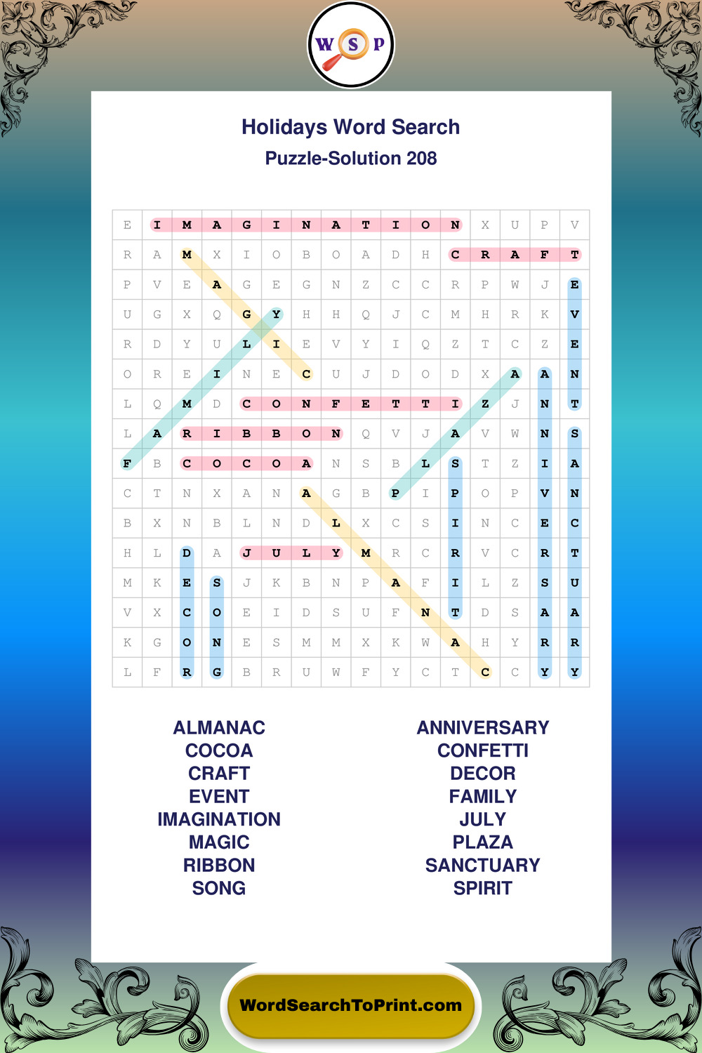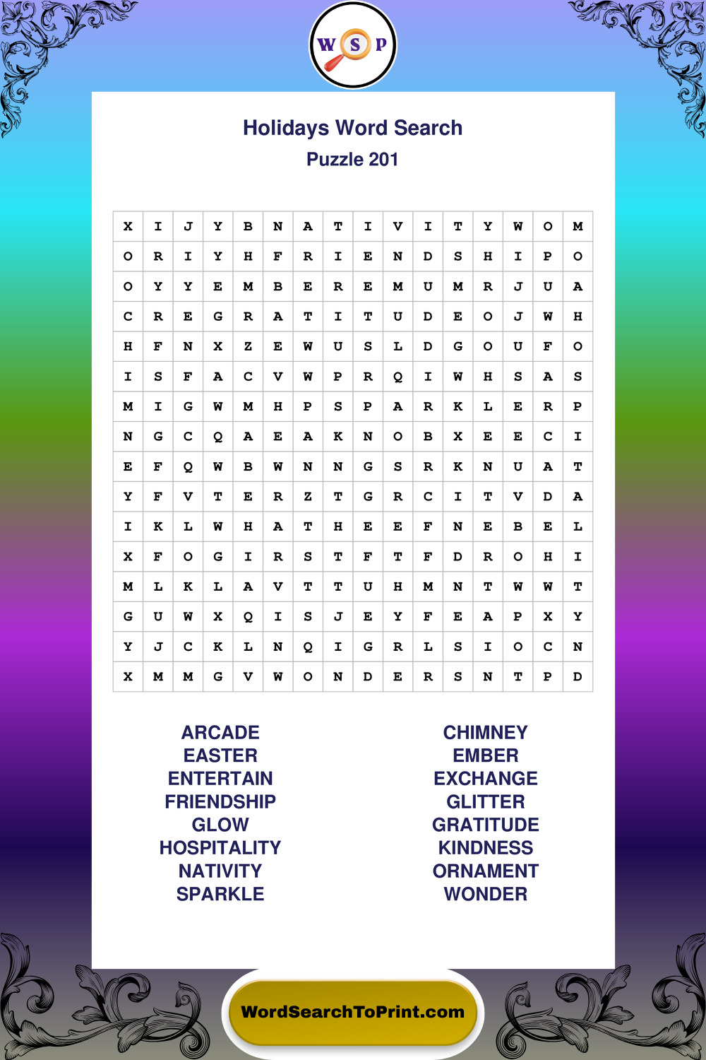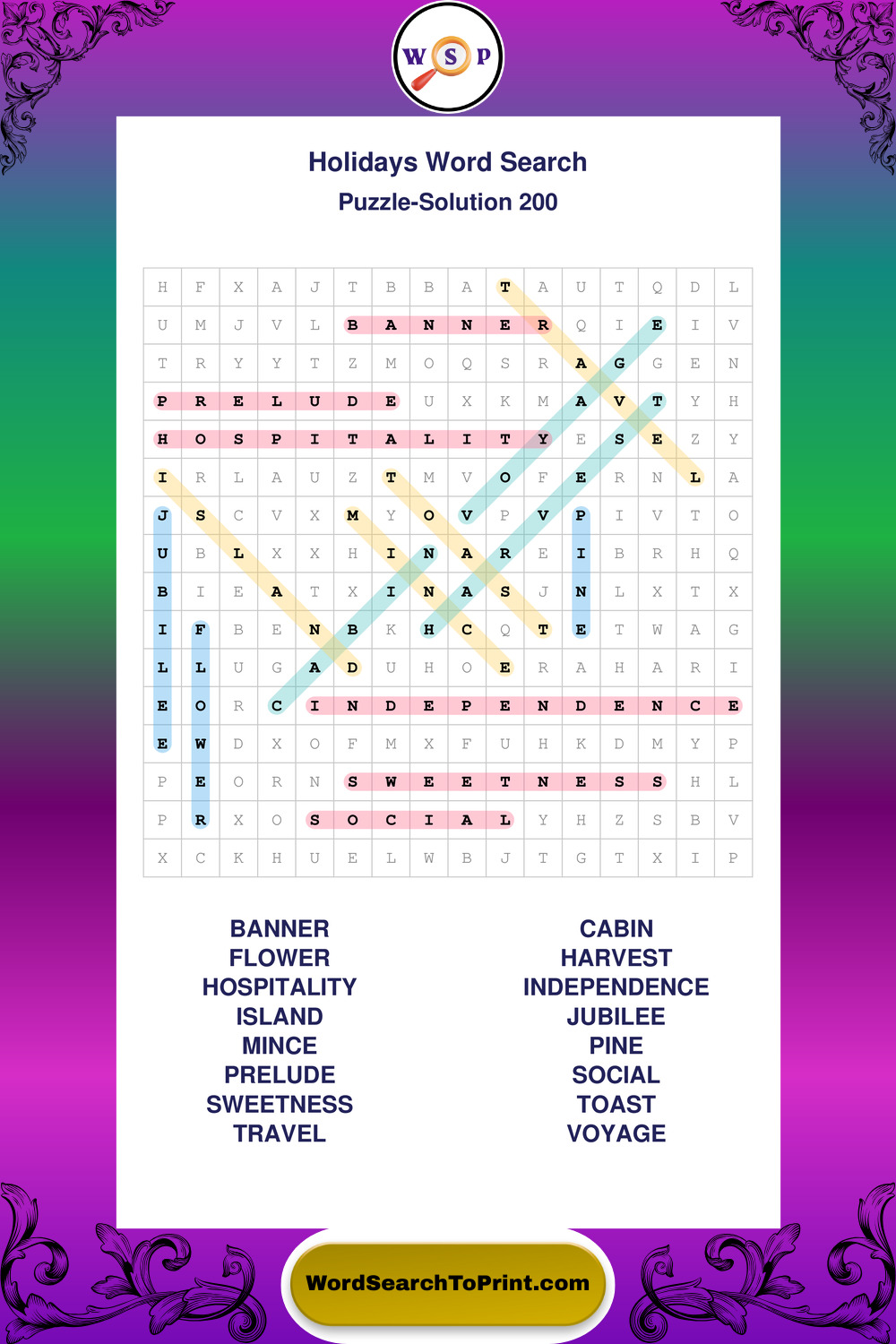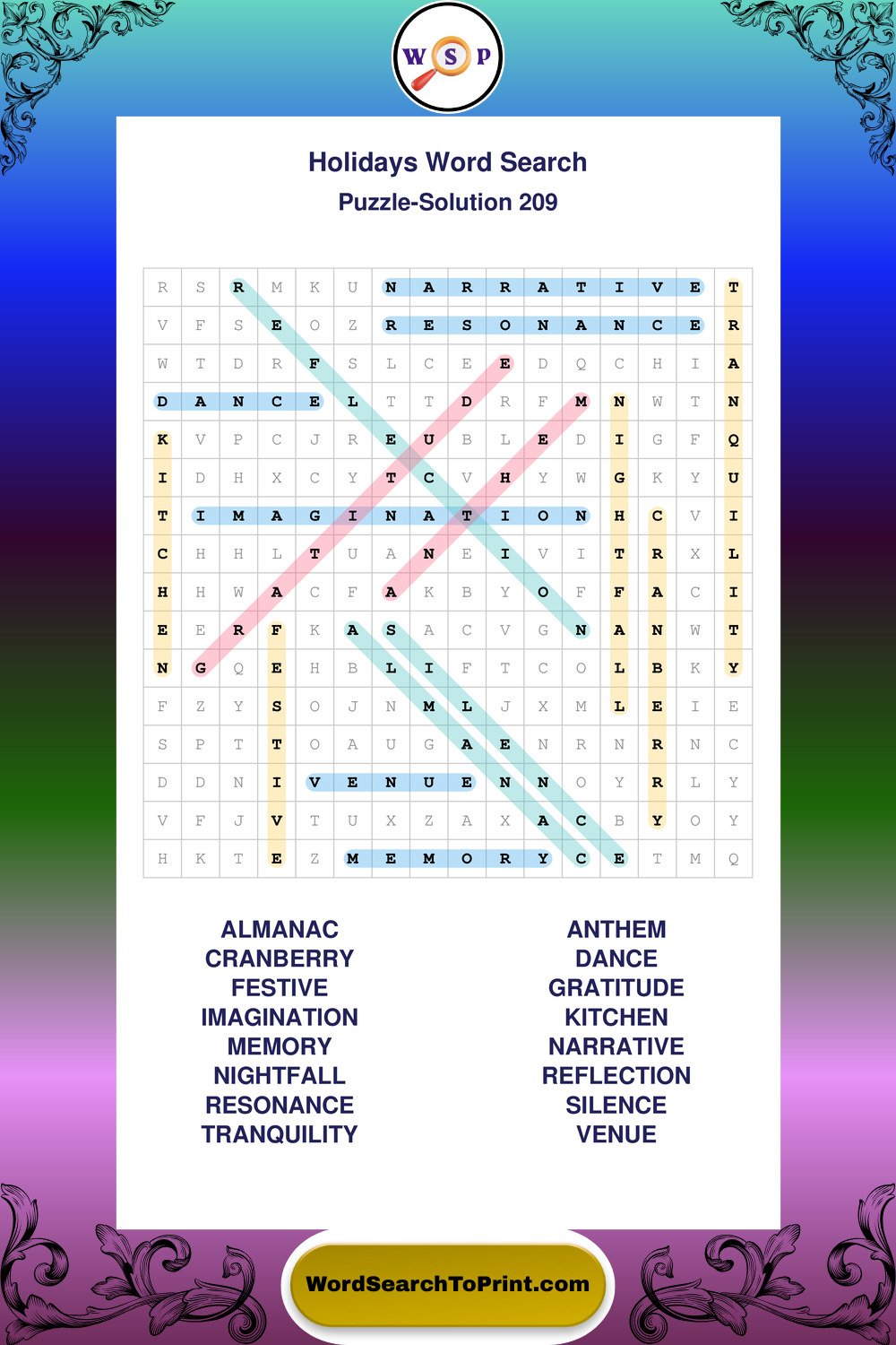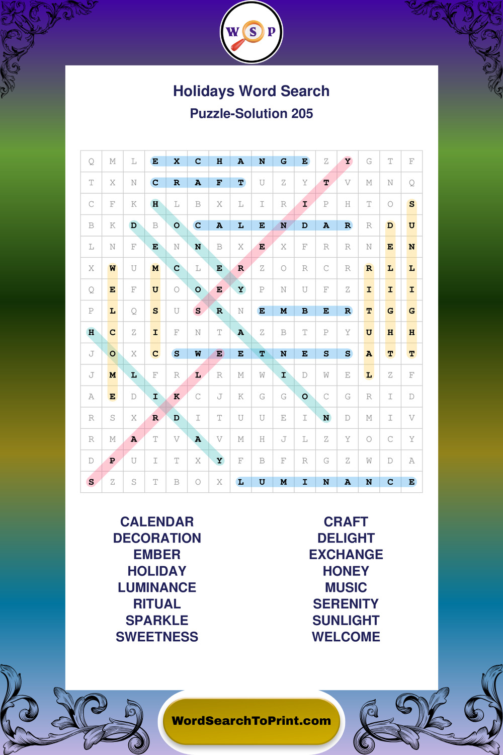 Find easy-to-read large print Holidays wordsearches designed for peaceful focus and simple, enjoyable solving.